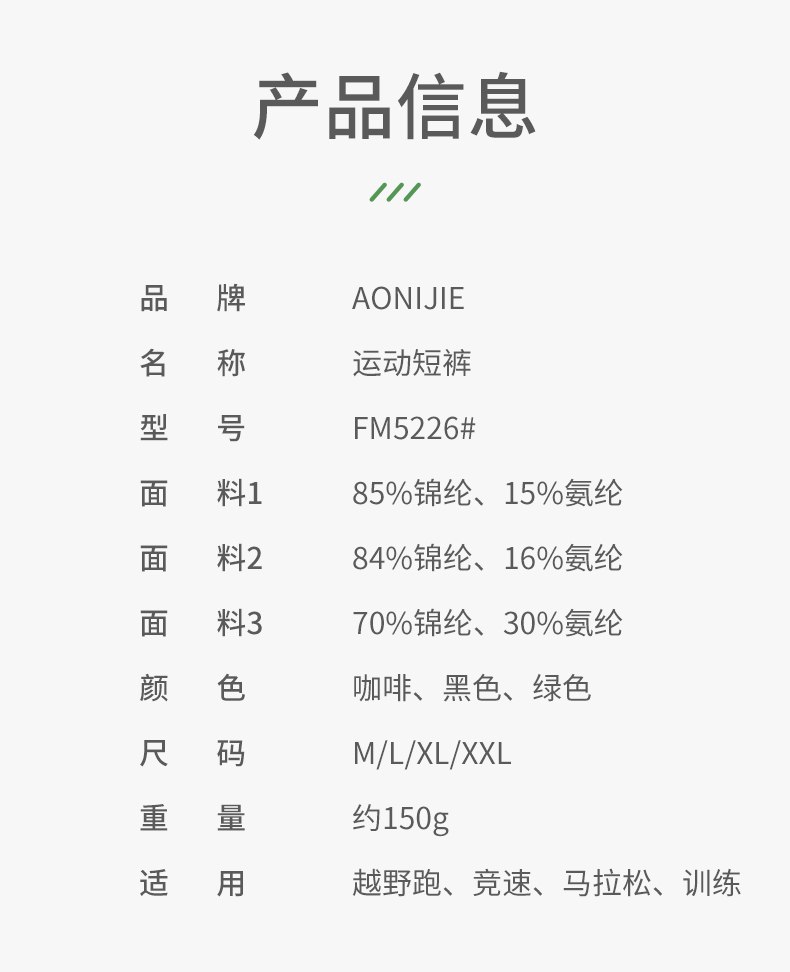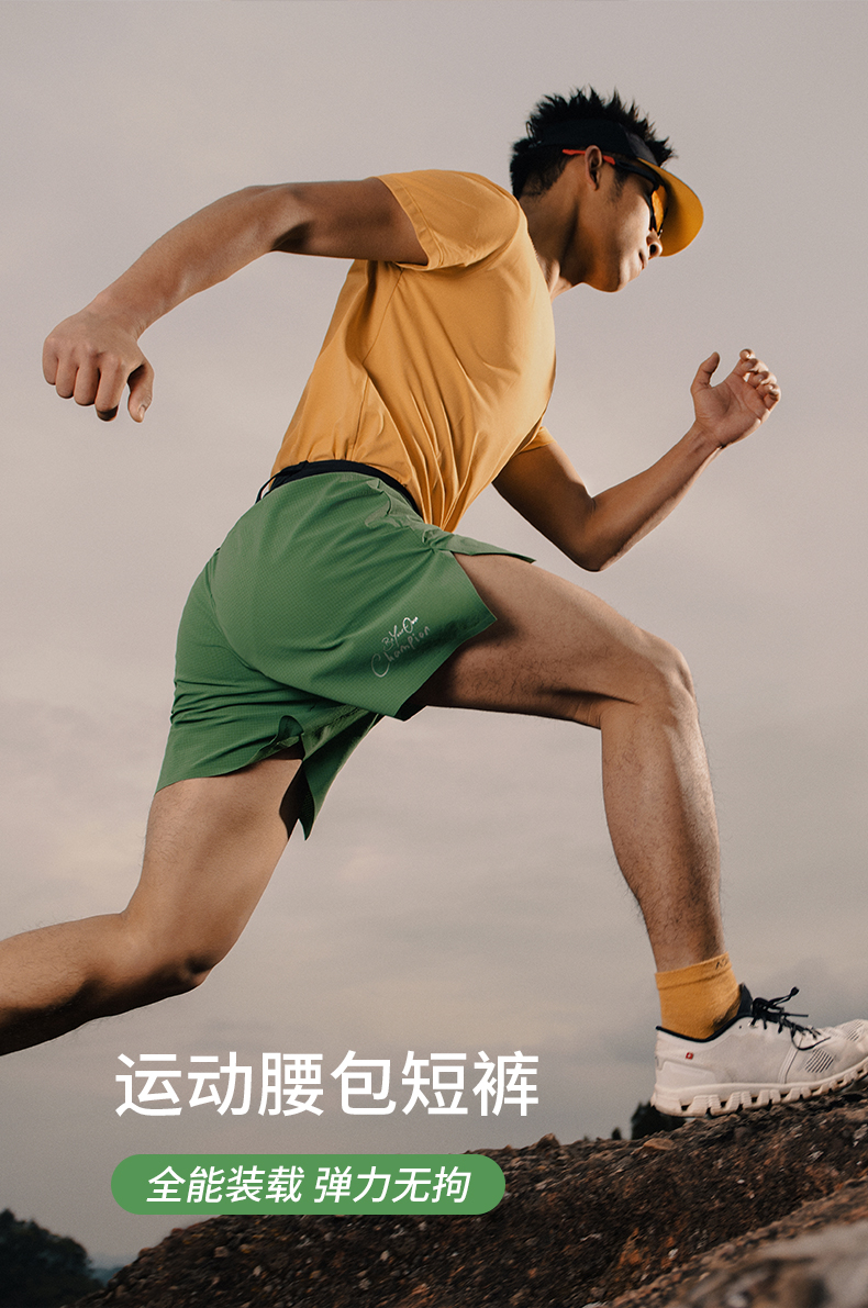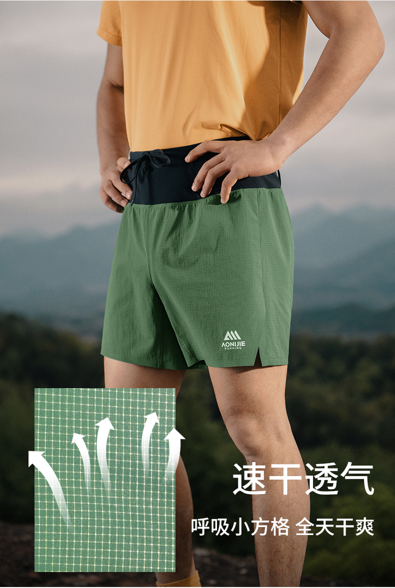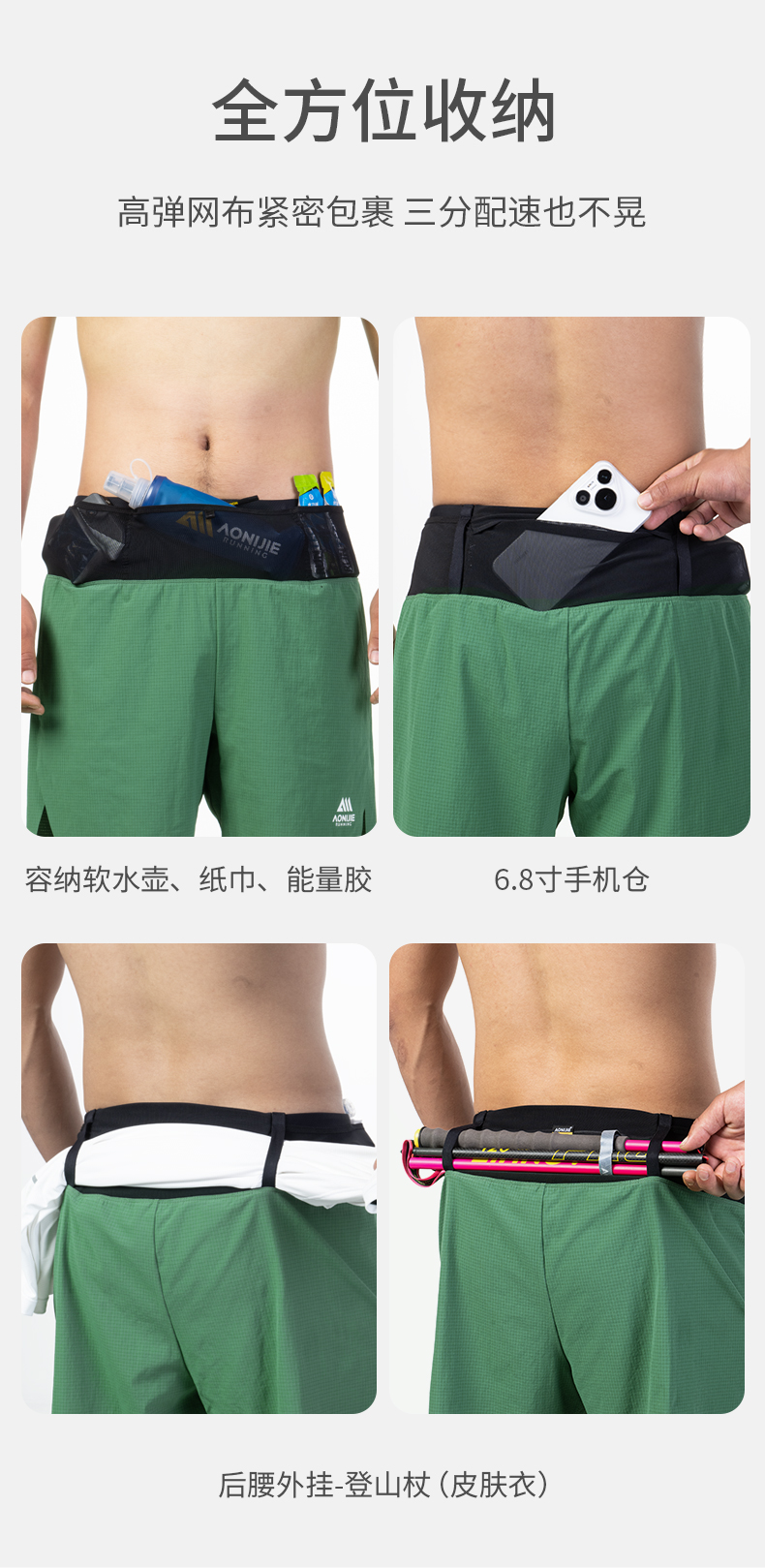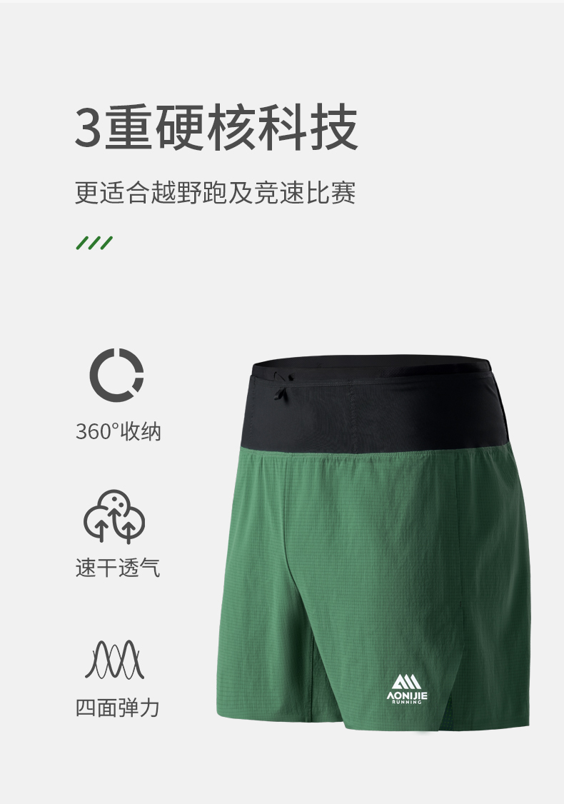 奥尼捷男士腰包式运动短裤平角内衬速干透气超舒适运动短裤跑步越野速干短裤FM5226