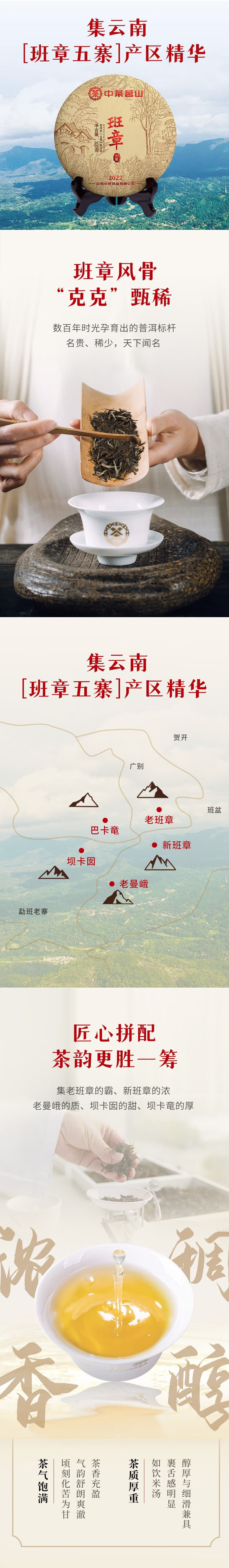 中粮-中茶2022年中茶班章五寨普洱茶生茶300克/饼 /云南干仓直发