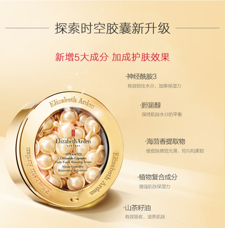 【国庆秒杀】伊丽莎白雅顿金胶黄金导航面部胶囊精华约60粒