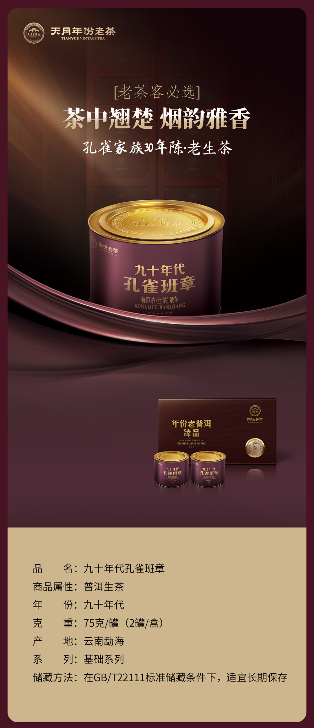 九十年代孔雀班章普洱散茶75g(生茶)