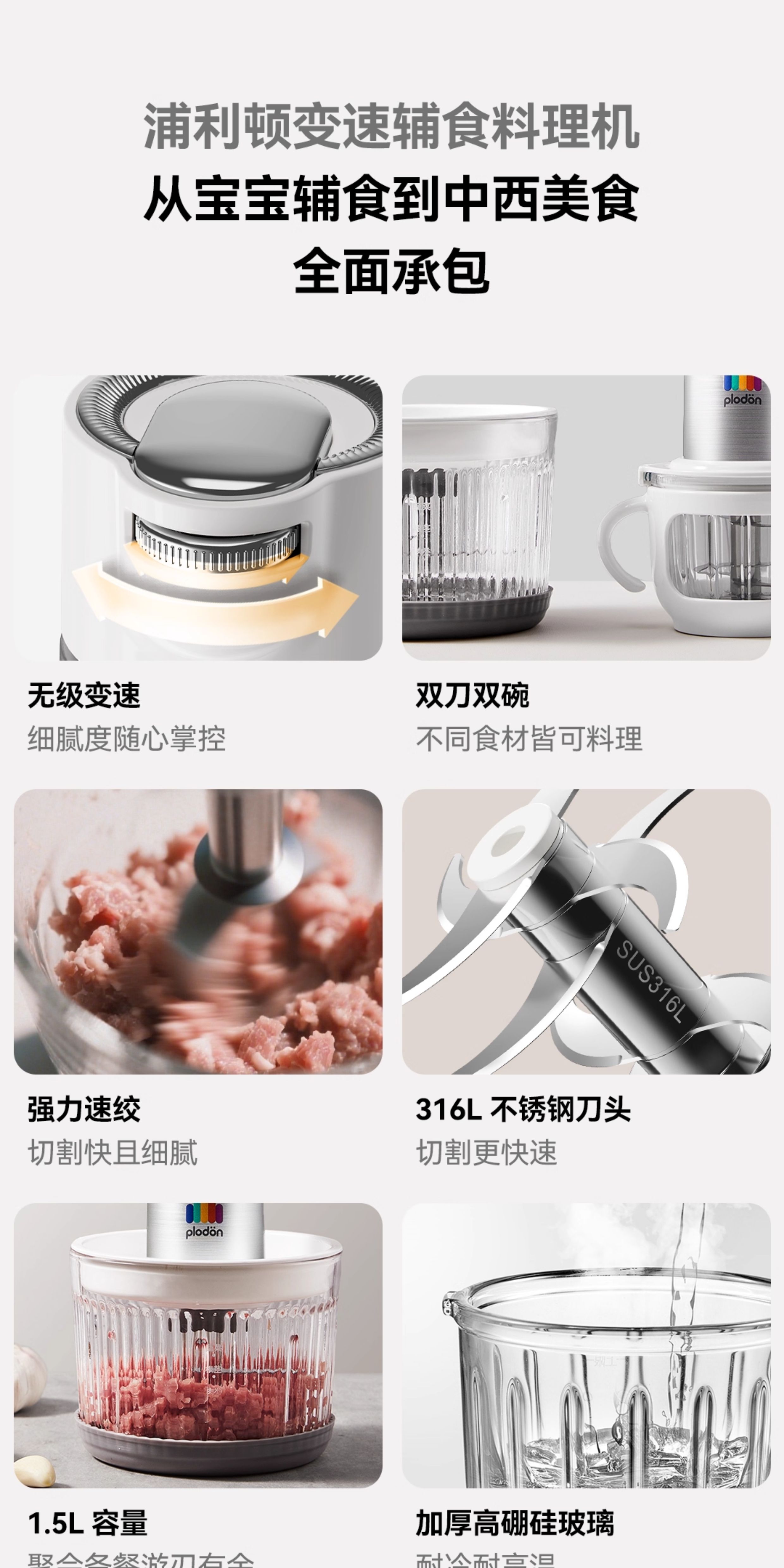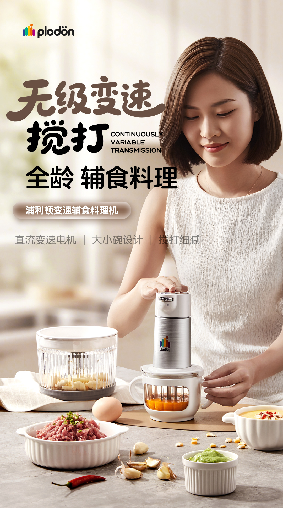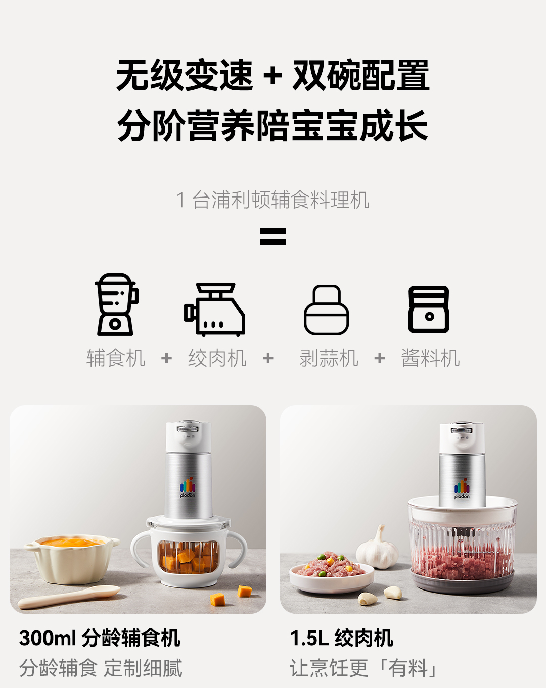 浦利顿宝宝料理机多功能绞肉研磨婴儿辅食机PLD-PR9001