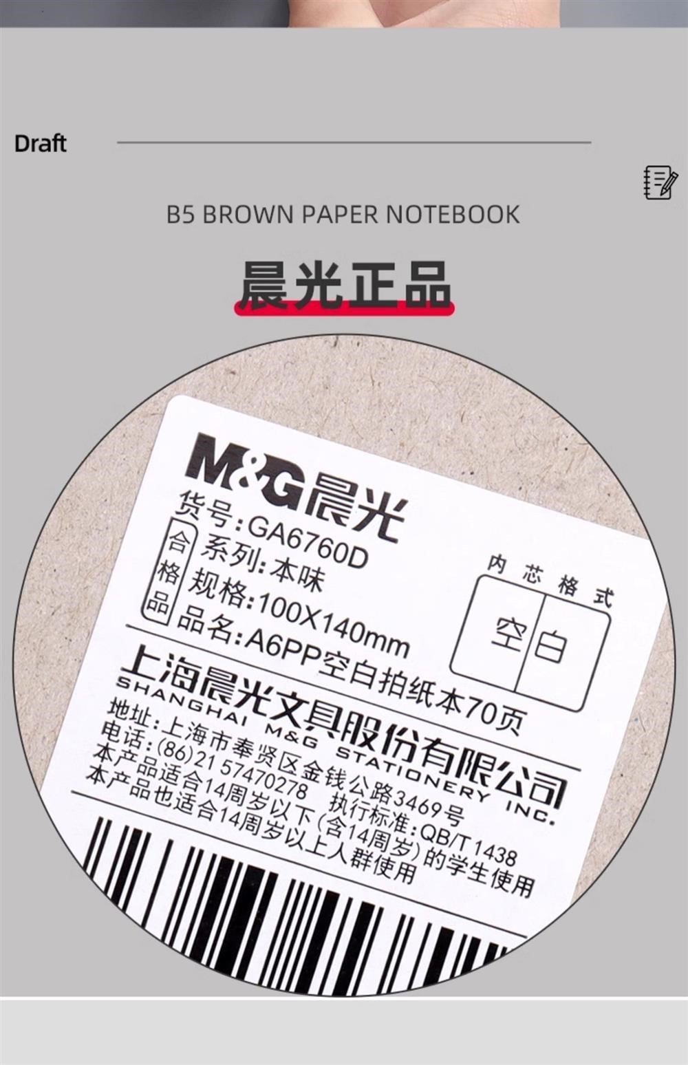 晨光本味系列空白拍纸本A6A5笔记本无格无线内页可撕草稿白纸本防水70页(规格自选)