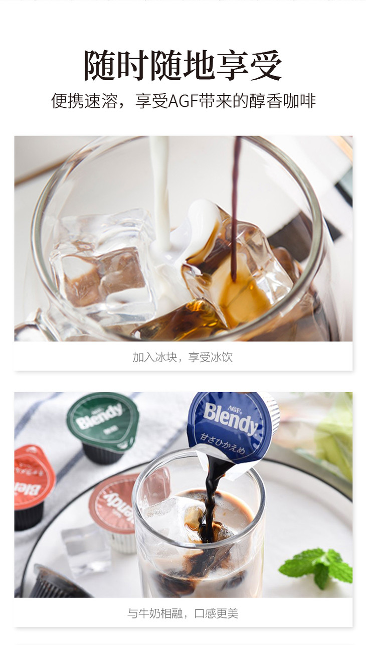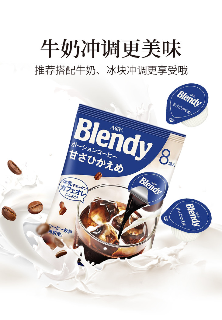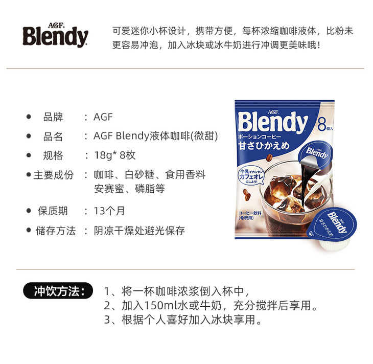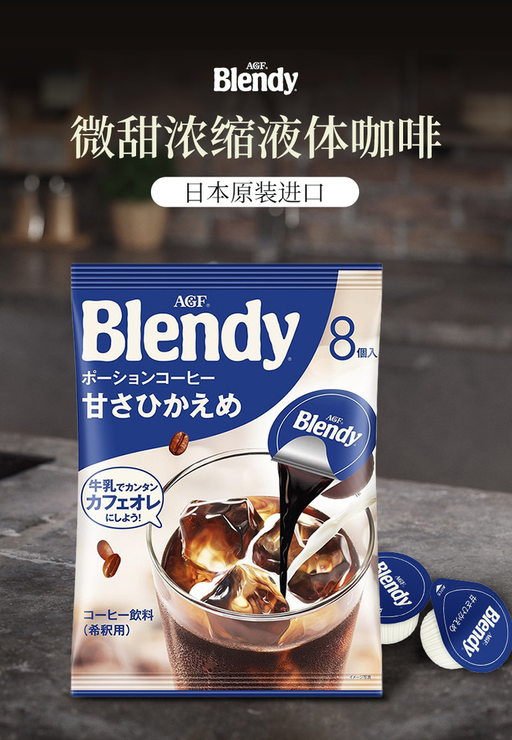 日本进口AGF blendy胶囊微糖速溶咖啡 (浓浆) 144g(18g×8个)(476530)
