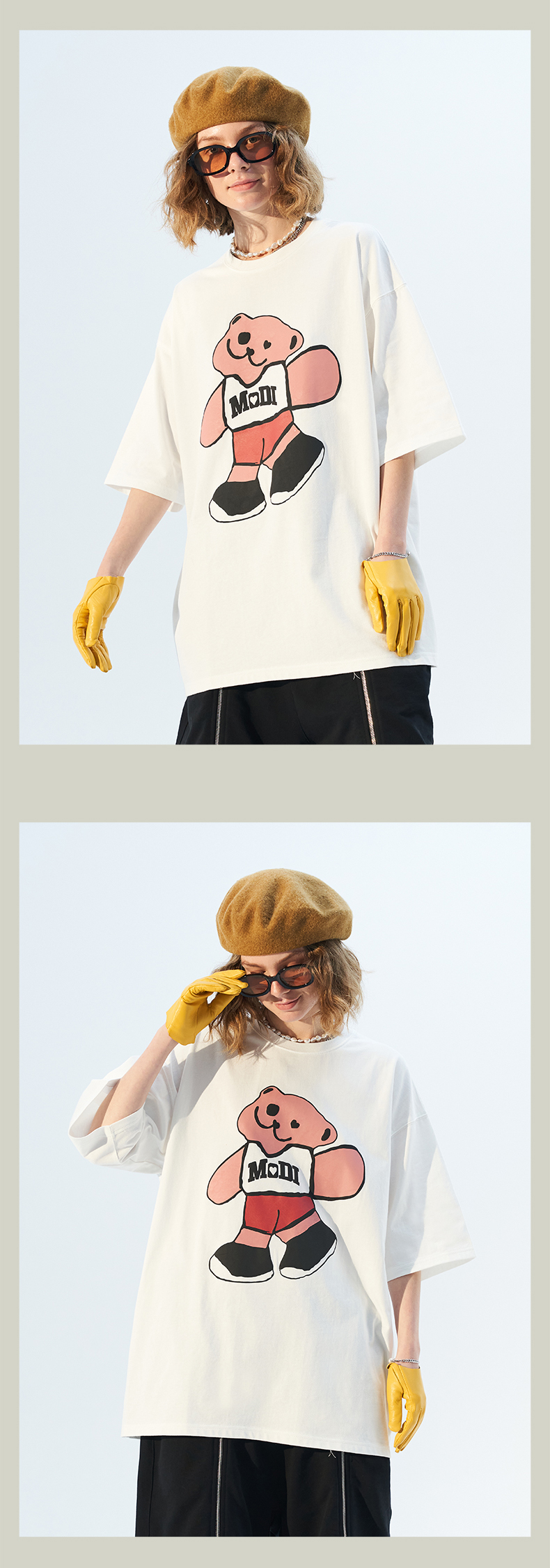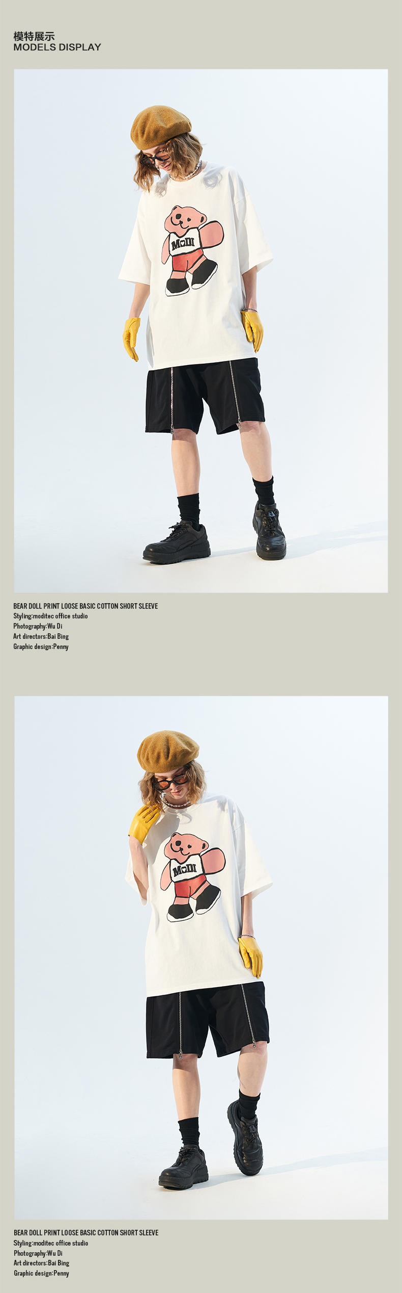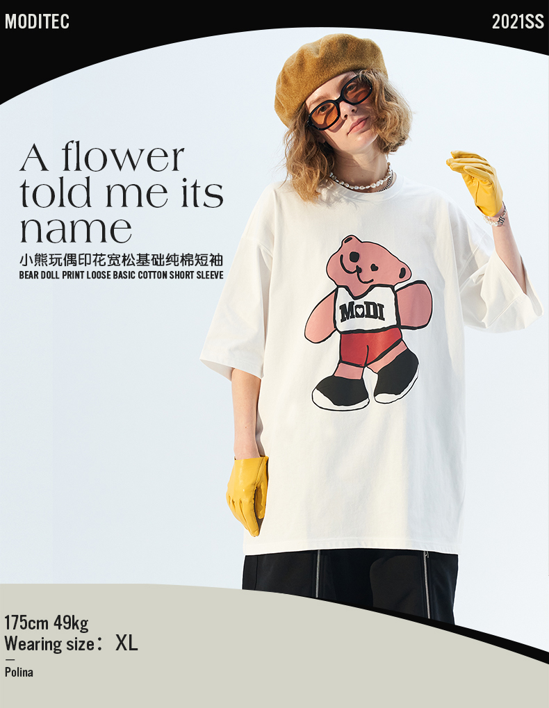 MODITEC 21春夏 彩色抽象小熊宽松短袖 国潮小熊印花情侣短袖
