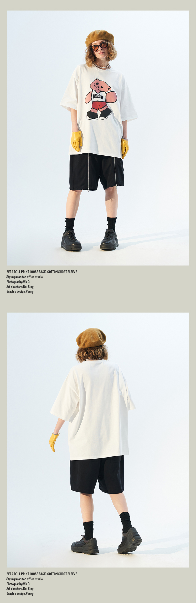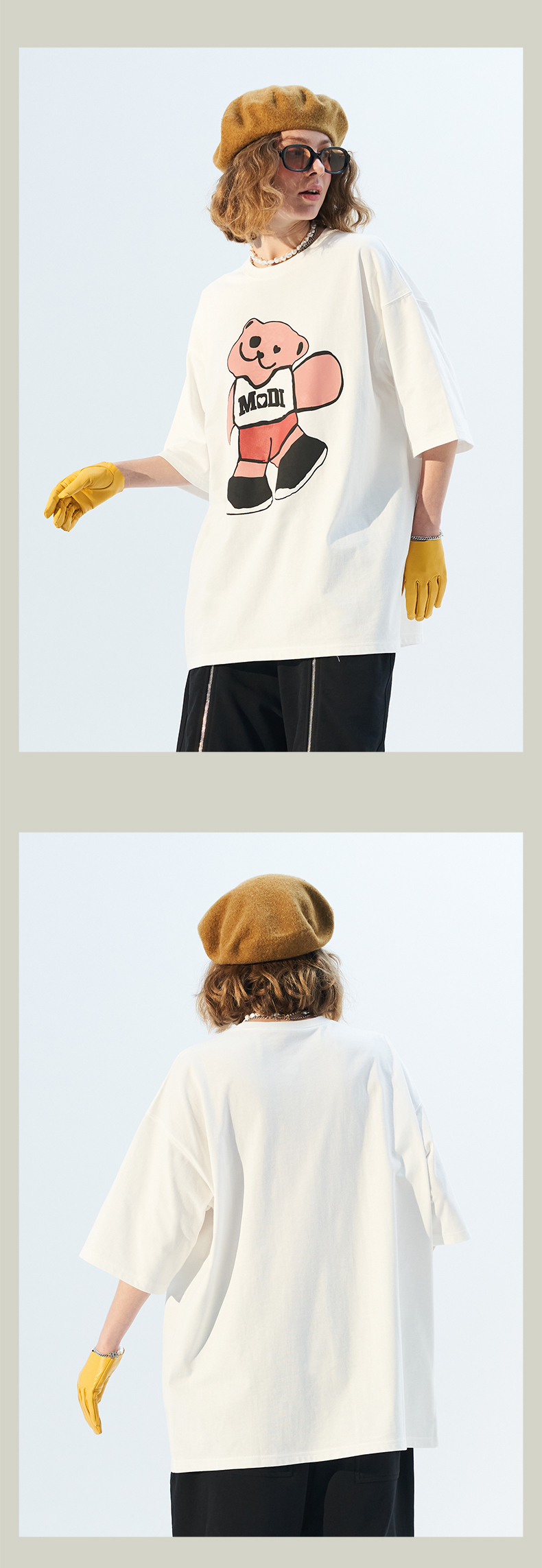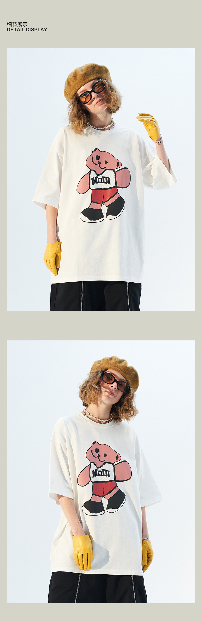 MODITEC 21春夏 彩色抽象小熊宽松短袖 国潮小熊印花情侣短袖