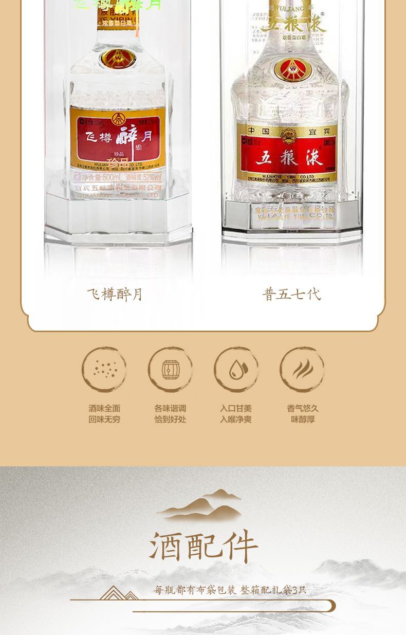 四川宜宾总厂8年老酒五粮液股份飞樽醉月珍品 52度浓香型白酒 整箱500ml*6瓶包邮