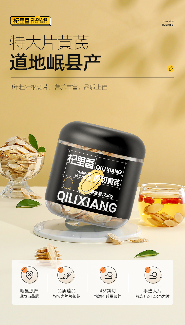 杞里香250g圆罐黄芪(1.2-1.5)3年足龄,1.2-1.5大片道地岷县,足年原切搭配枸杞当归党参