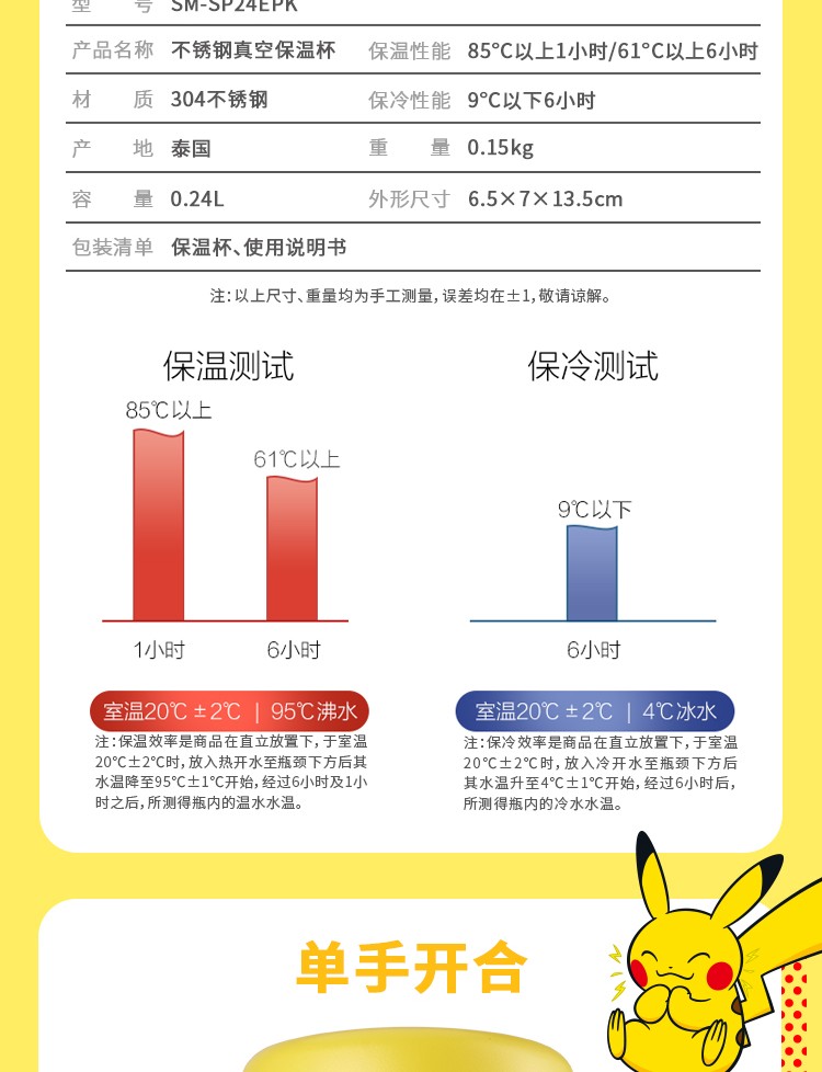 象印保温杯女304不锈钢真空保温保冷进口杯弹盖小清新可爱水杯子儿童保温杯SP24EPK宝可梦 ED伊布