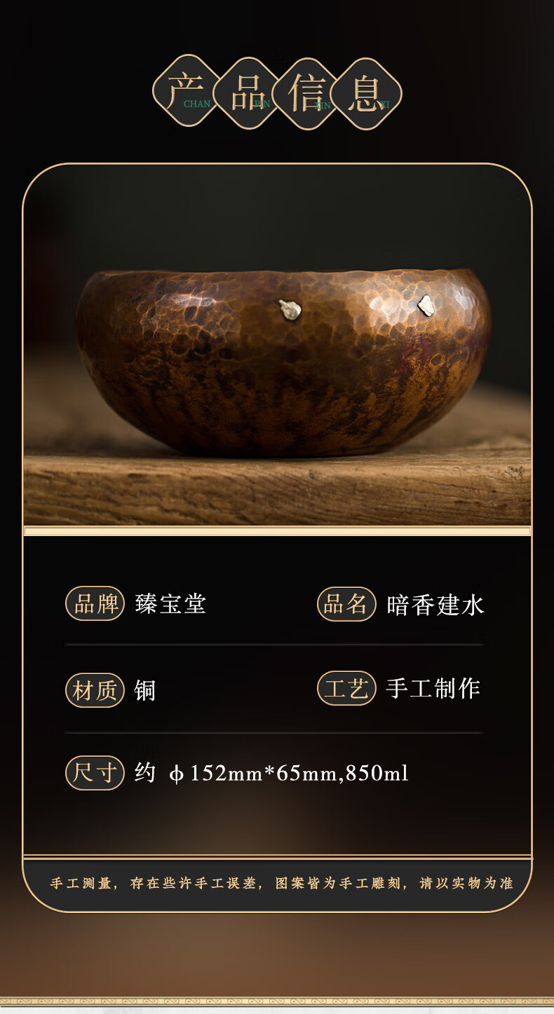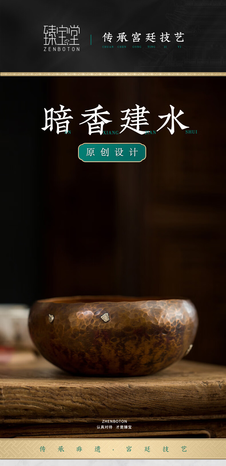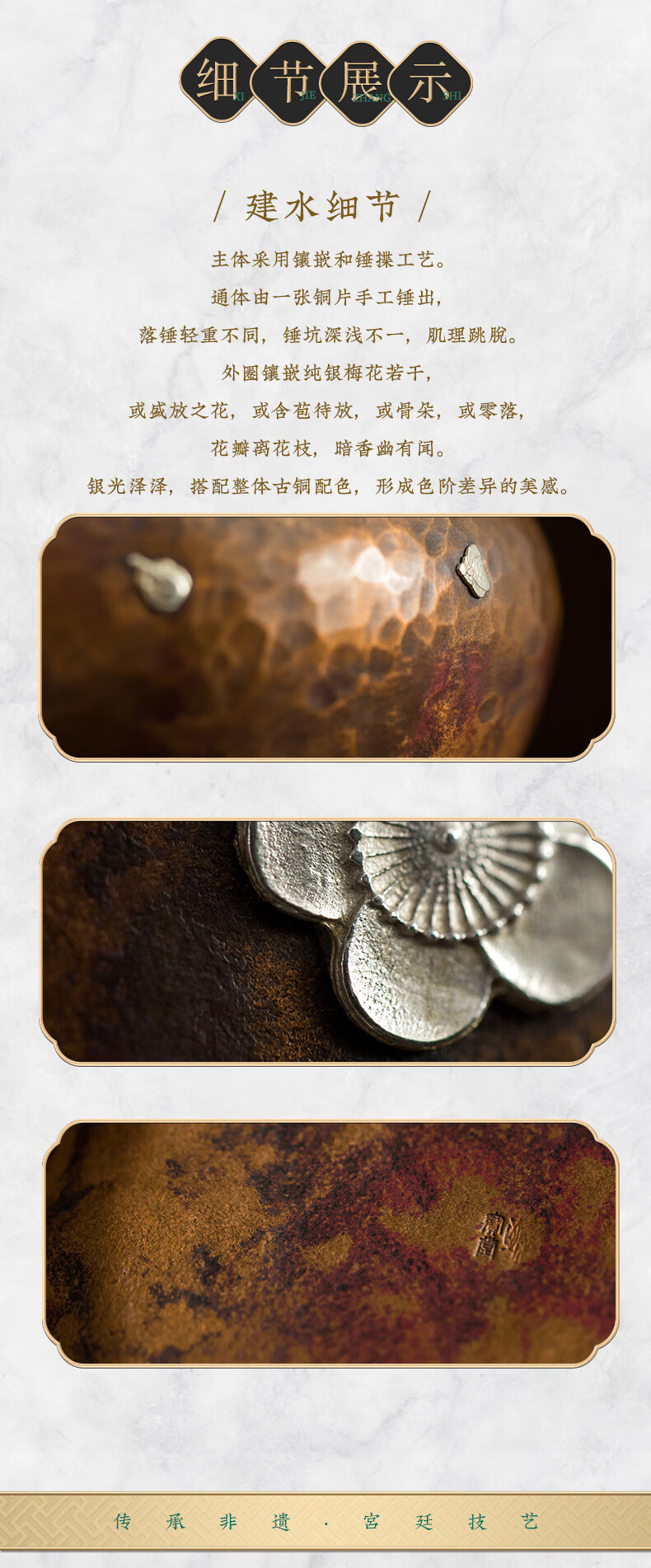【样品清仓6折,仅1件,无货退款】臻宝堂(ZENBOTON)纯铜镶银梅花茶洗水洗纯手工茶渣桶茶具家用紫铜建水功夫茶道配件 暗香建水.器形更新 请联系客服 容量约850ml