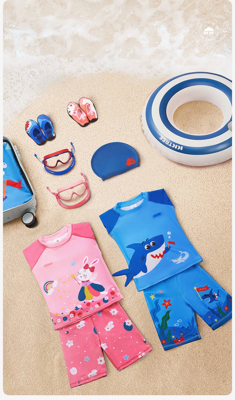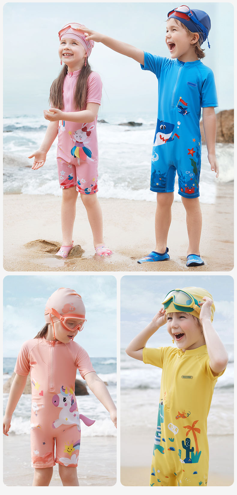 KK树儿童泳衣夏季连体男童女童2022短袖游泳衣小童中大童宝宝泳装