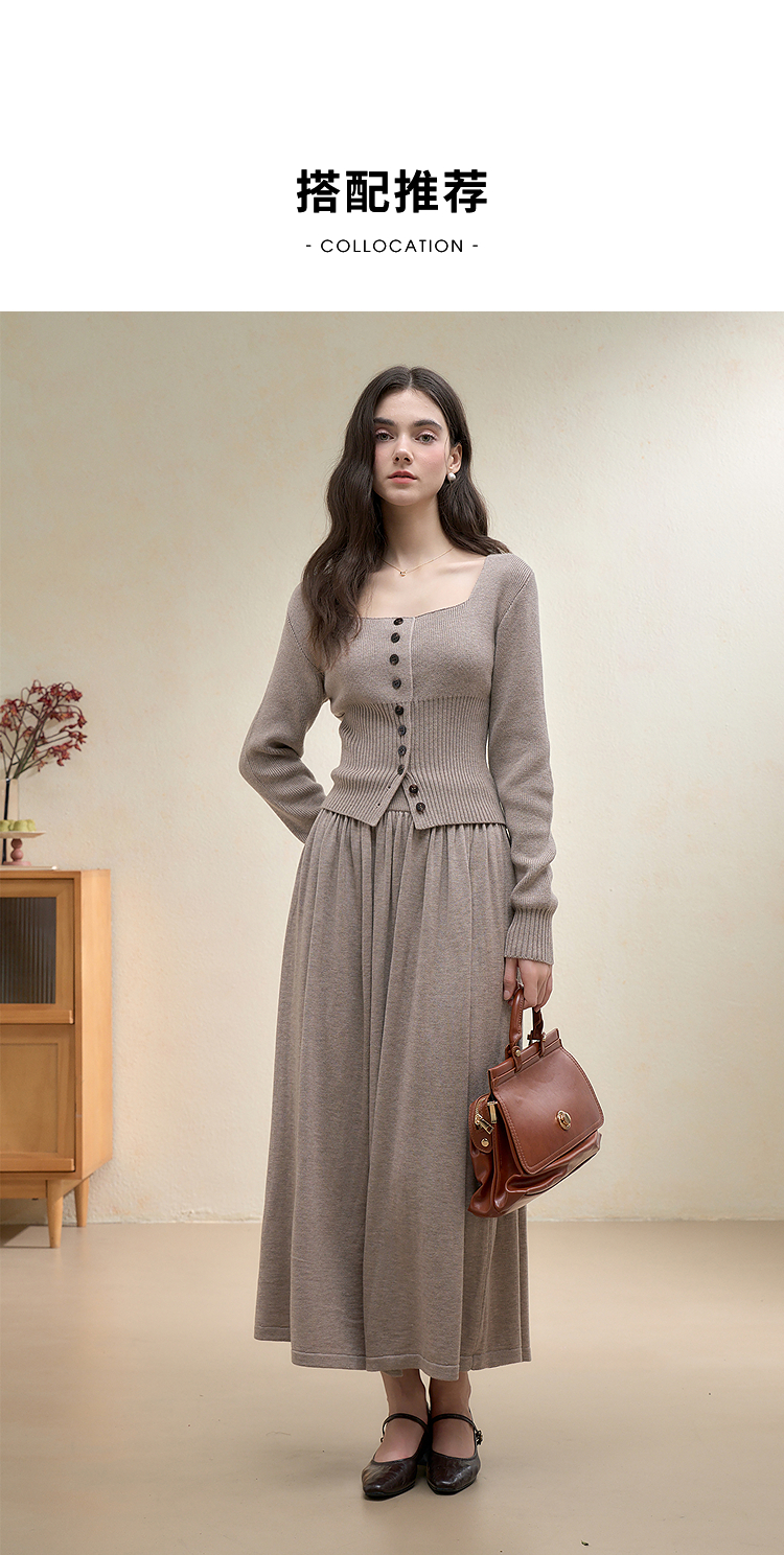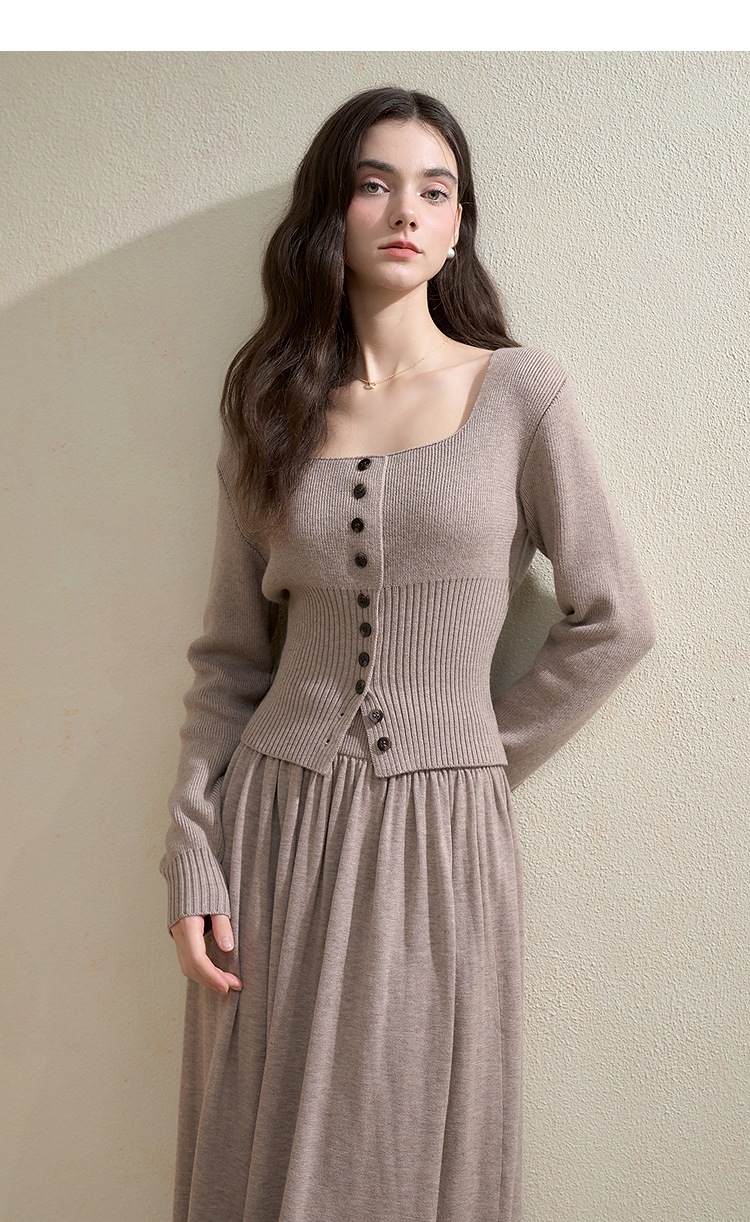 西遇法式气质方领单排扣针织衫女秋季正肩收腰显瘦长袖上衣V3251230