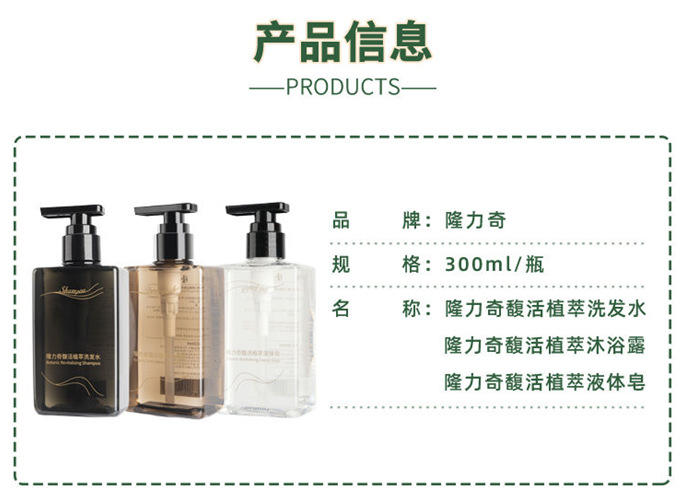 隆力奇馥活植萃洗发水沐浴露高端酒店宾馆民宿300ml瓶装体皂套装