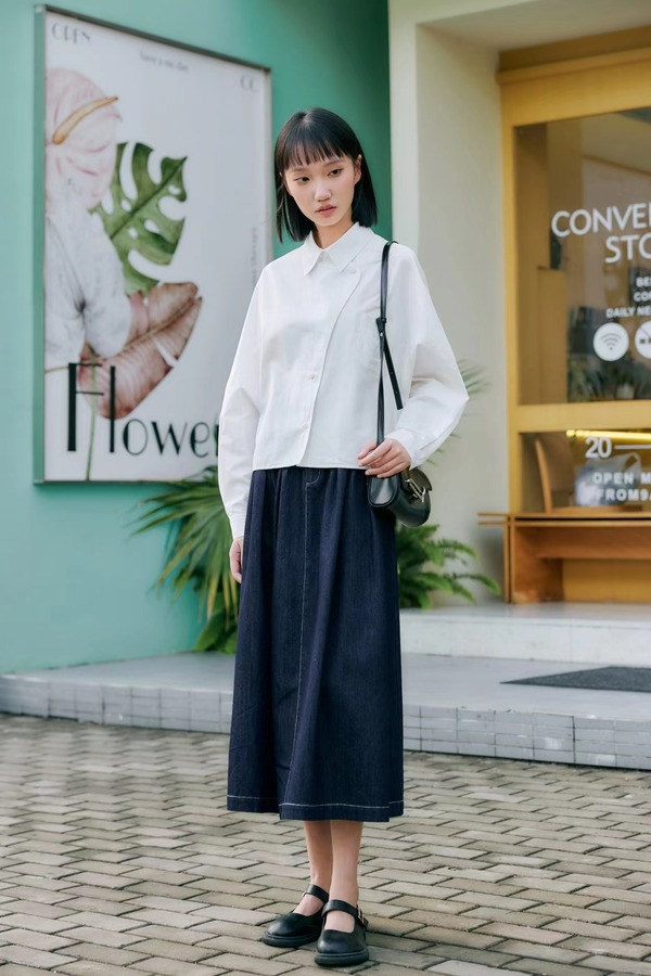 LNNNS 梵文艺风长袖纯色俏皮衬衫 20946