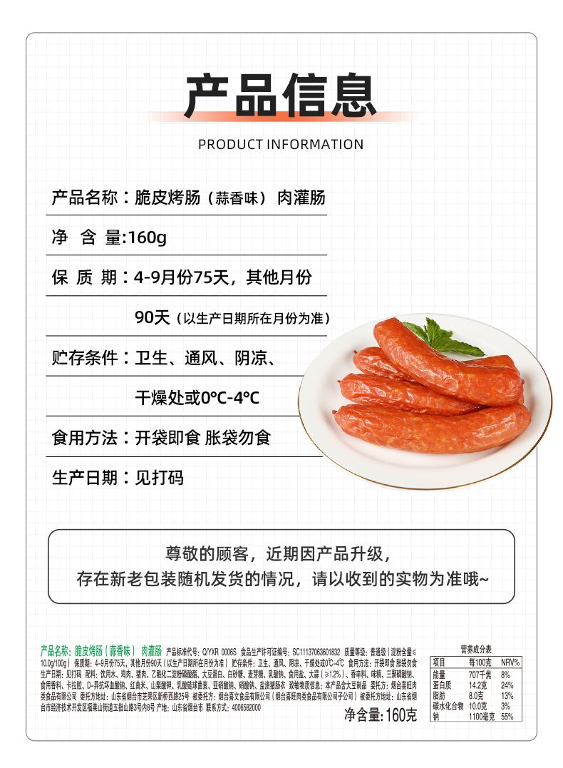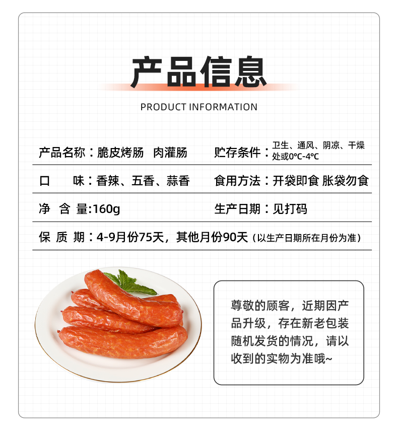 【多口味】喜旺脆皮烤肠 160g*5袋