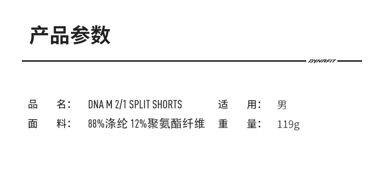 DYNAFIT男式跑步短裤 08-0000071438 DNA M 2/1 SPLIT SHORTS