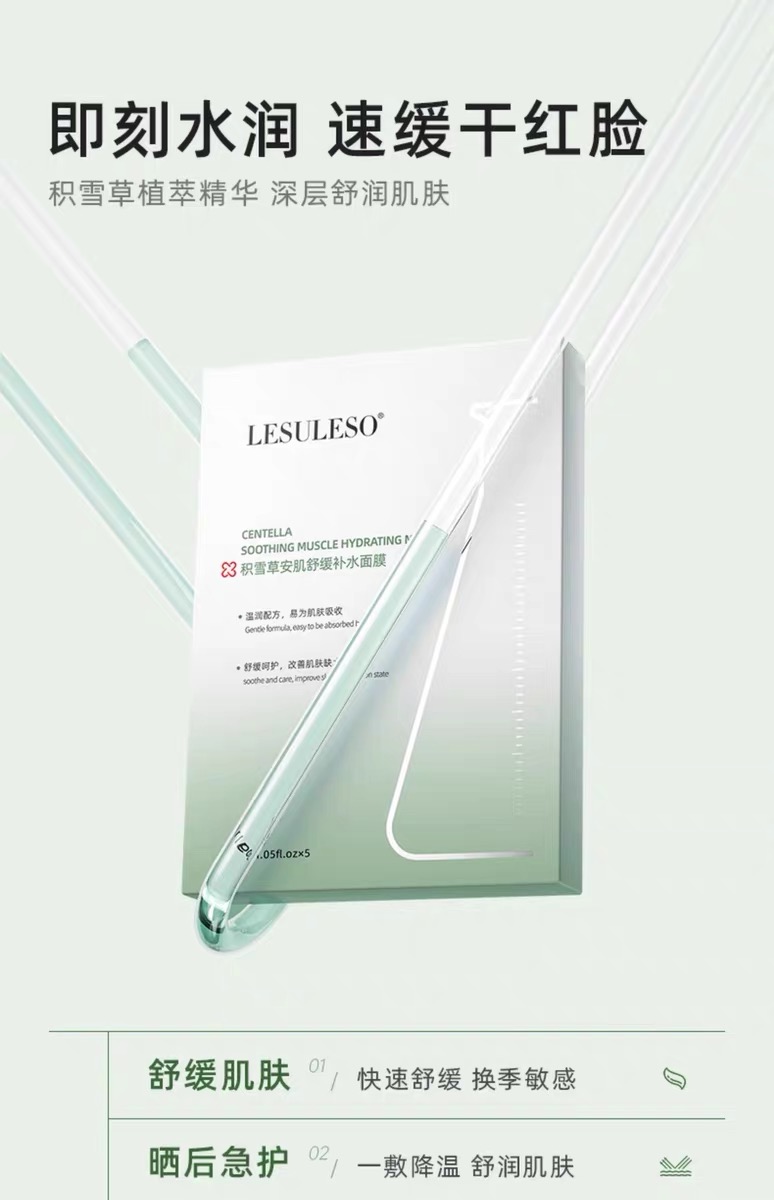 「团!」丽素丽速积雪草安肌舒缓补水面膜#虾青素焕亮面膜5片/盒 平价良心急救补水 敏肌可用