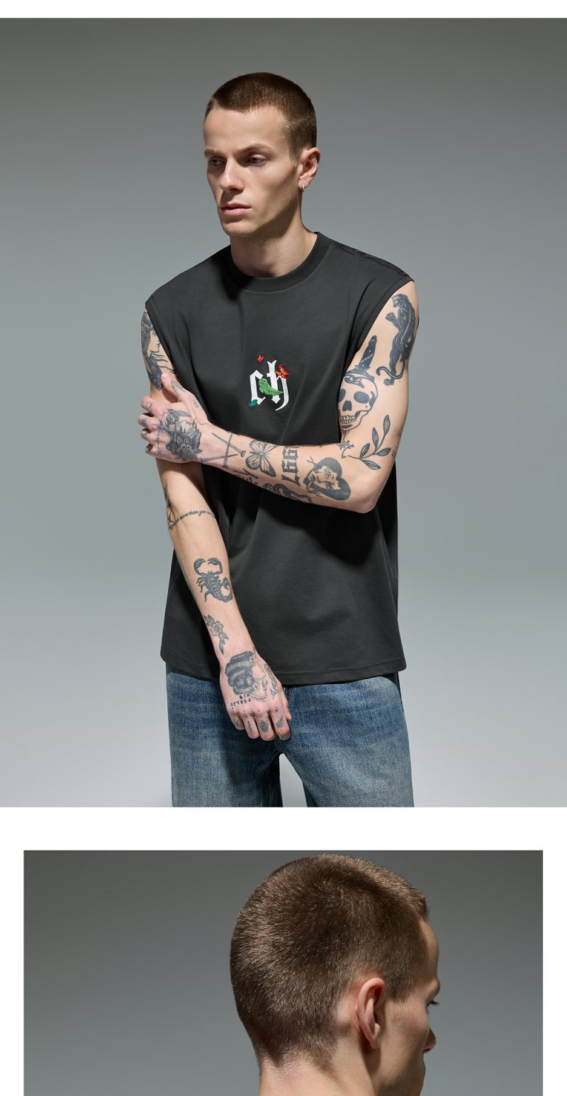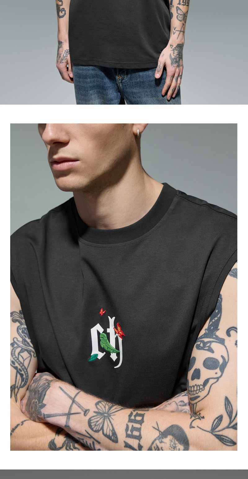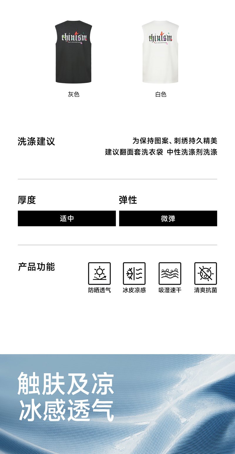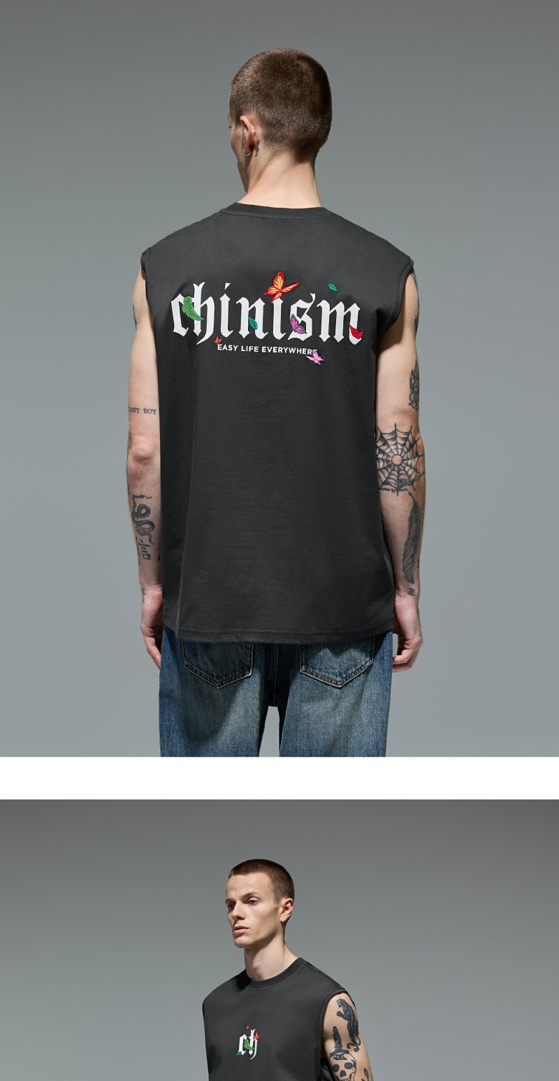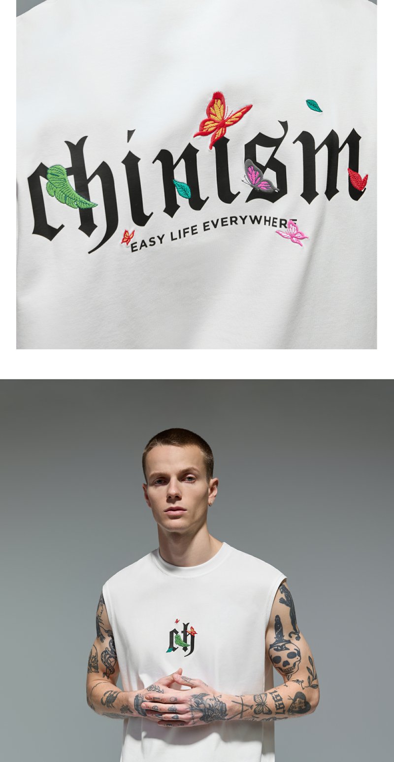 CHINISM赤尘 蝴蝶刺绣凉感背心男夏季美式新款防晒男士运动坎肩