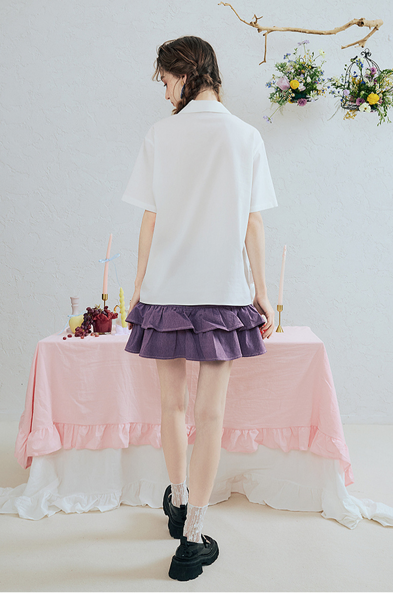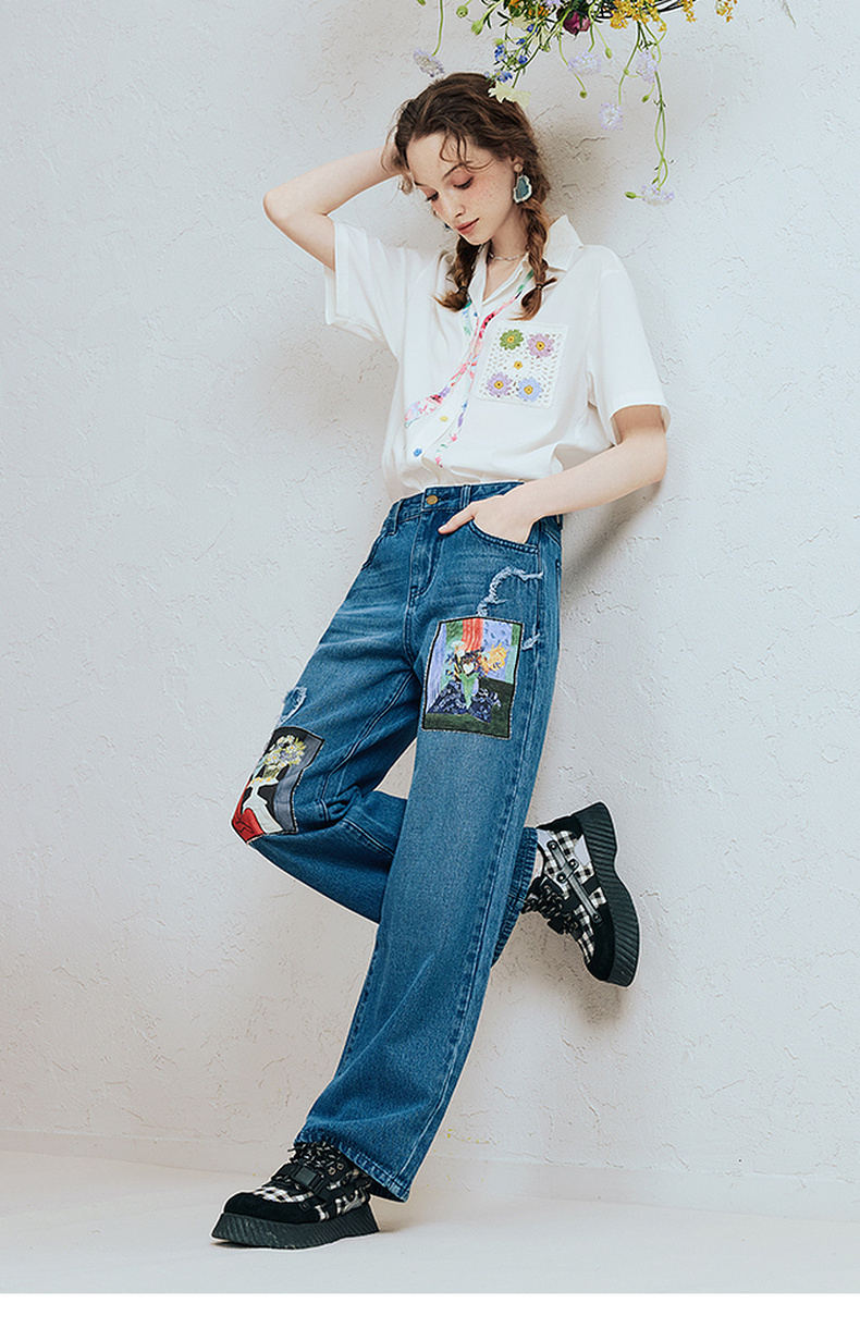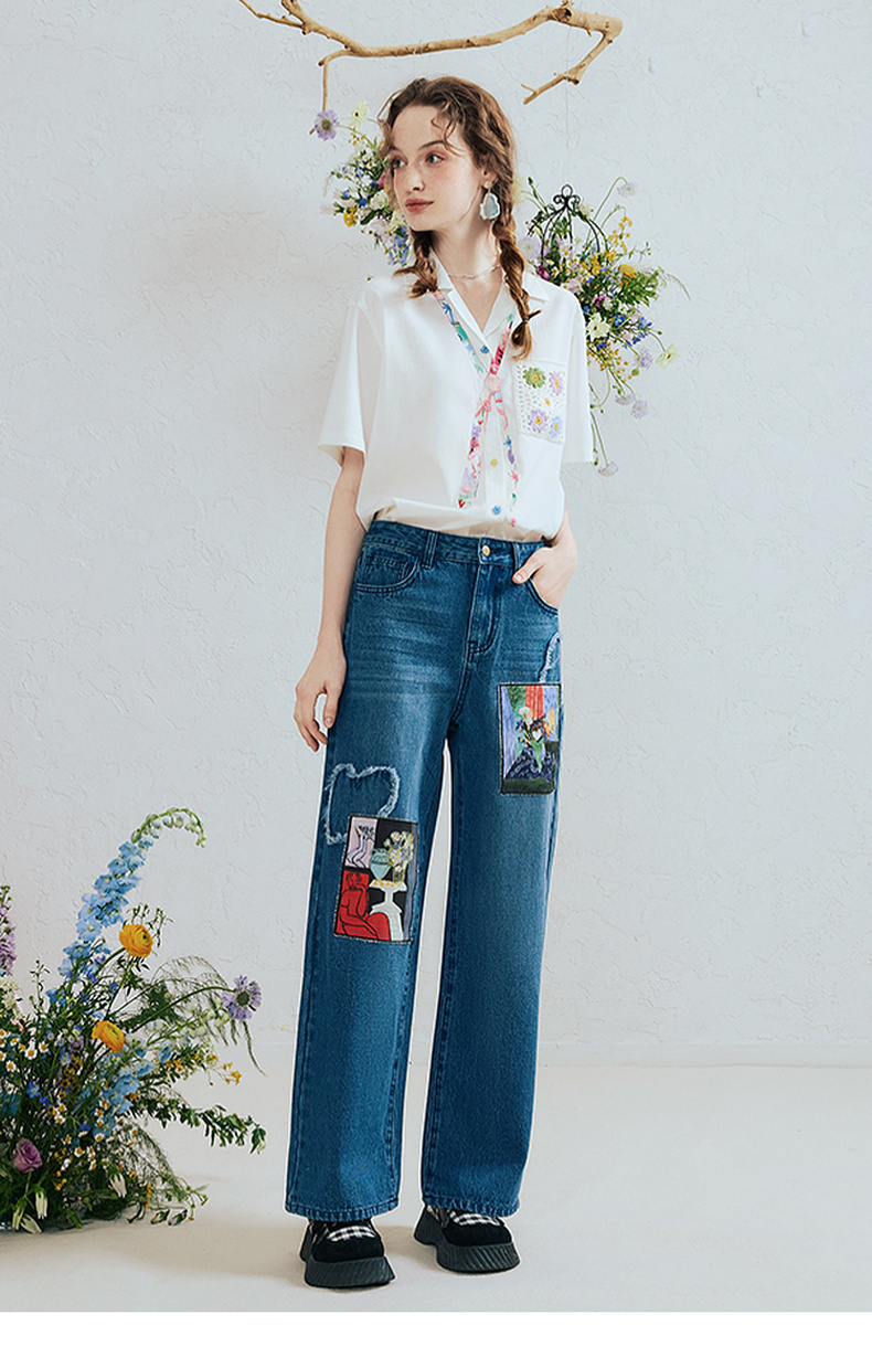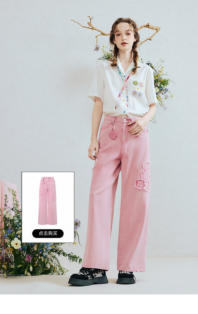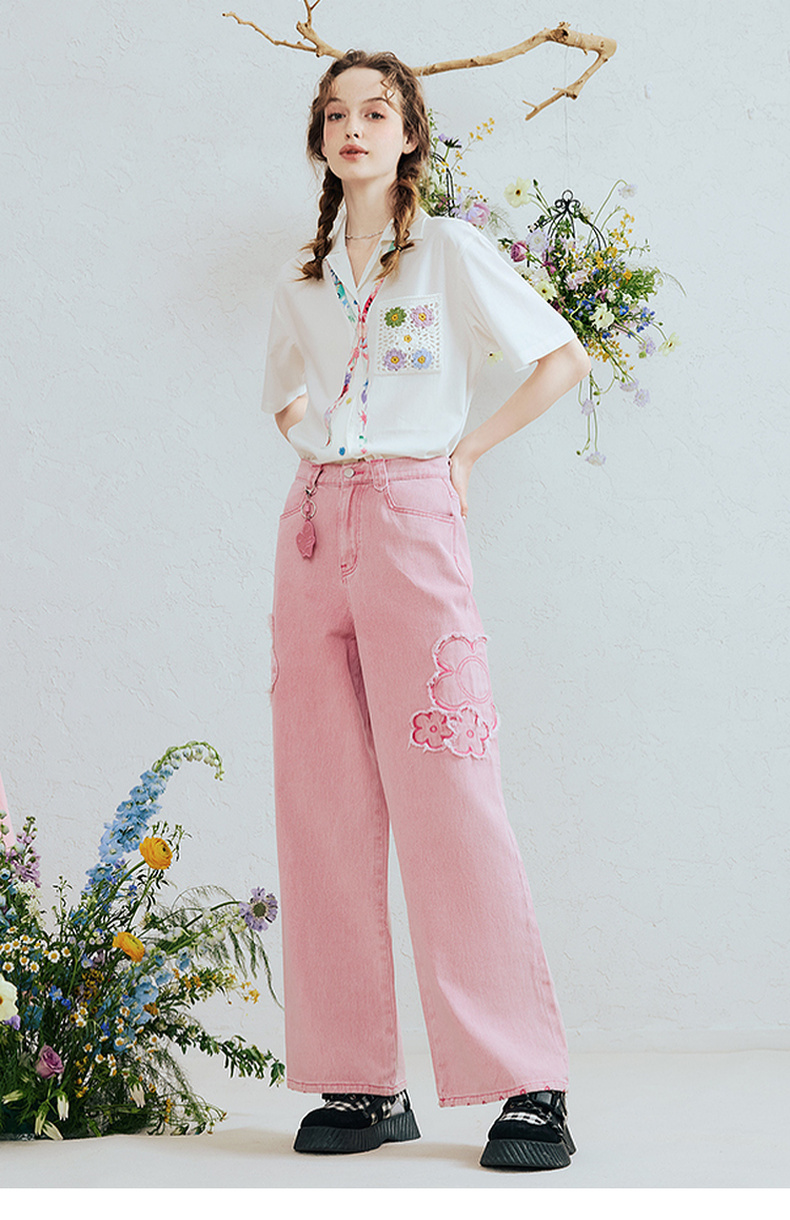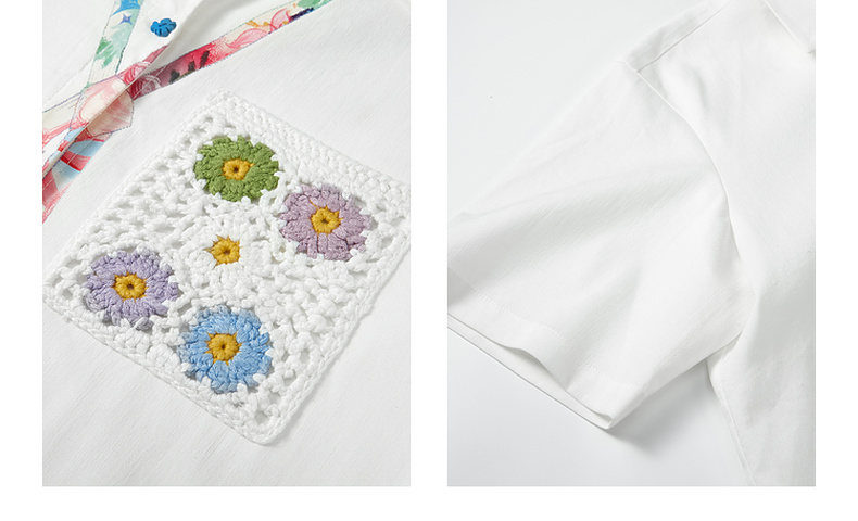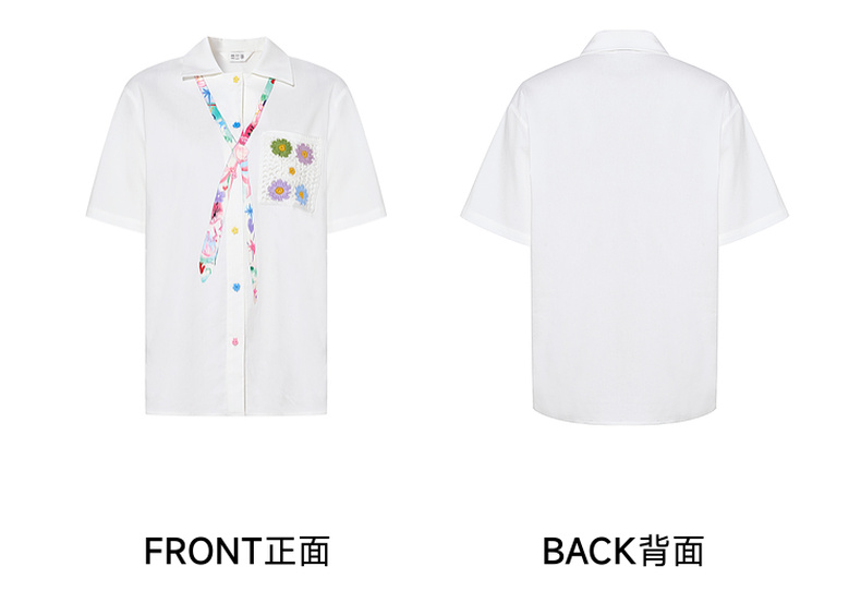 两三事 甜梦捕手 2025夏季新款森女风手钩花口袋印花假领带衬衫女