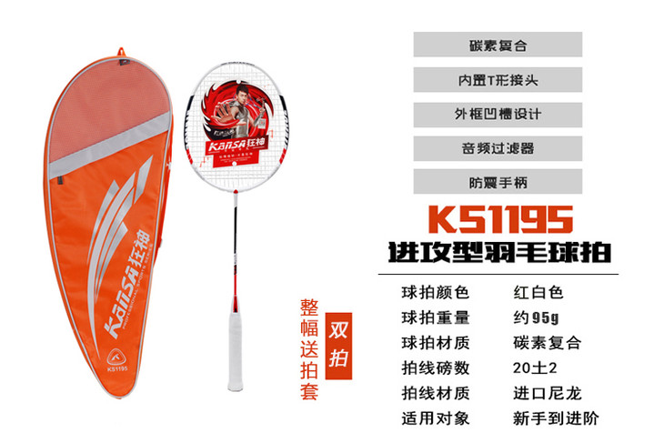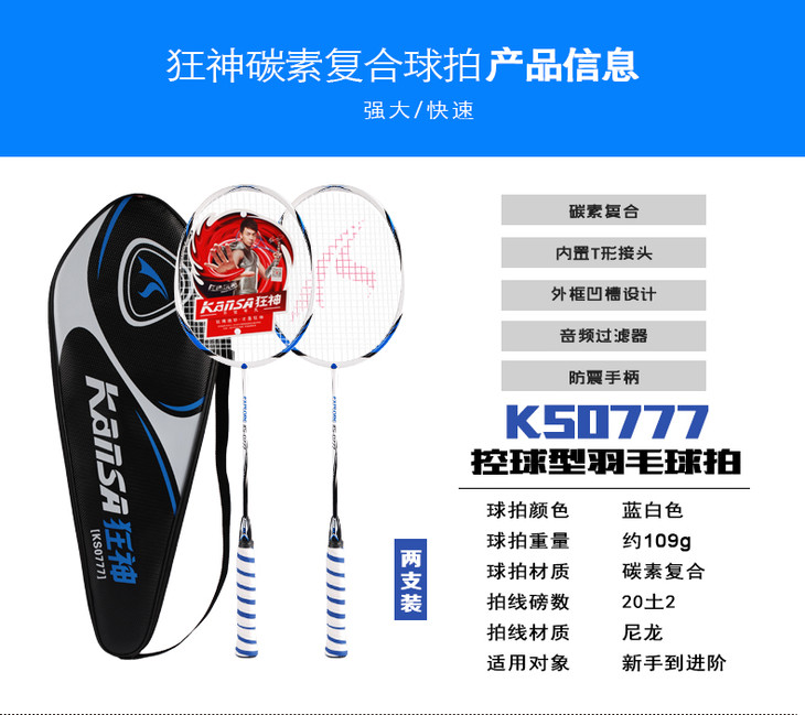 狂神羽毛球拍超轻碳素双拍碳纤维两支一对拍ks1195