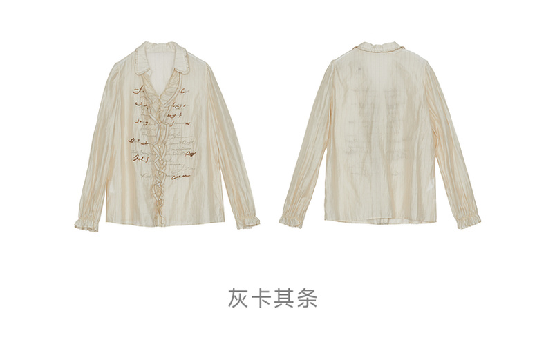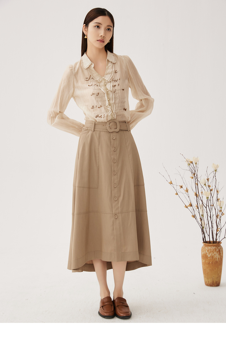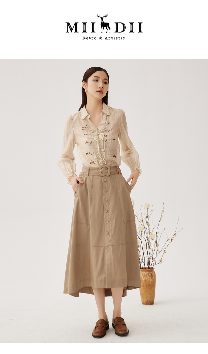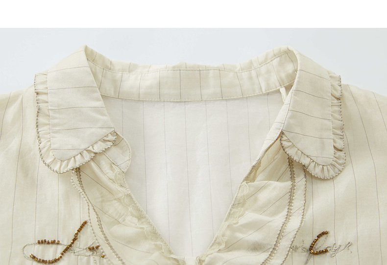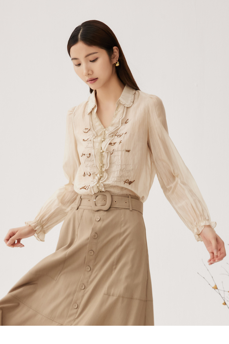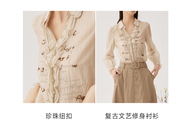 谜底衬衫长袖女2024秋季新品通勤风V领钉珠绣花H型衬衣243MC1098