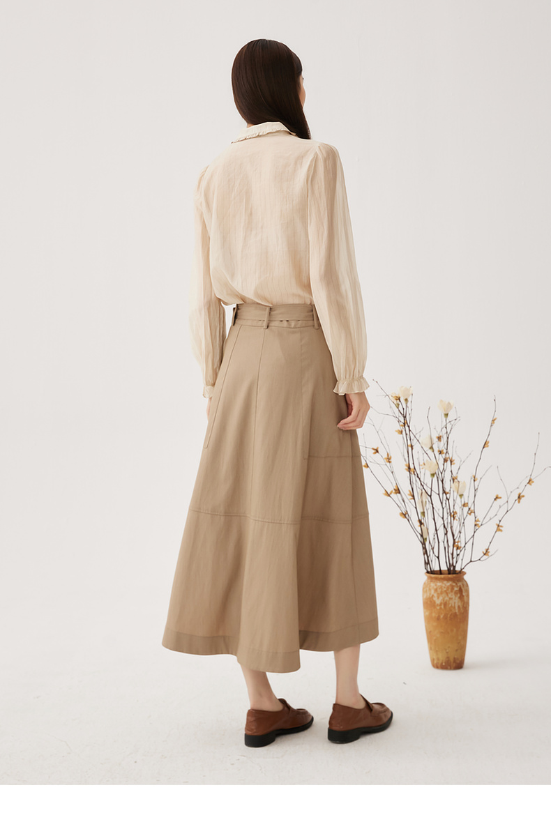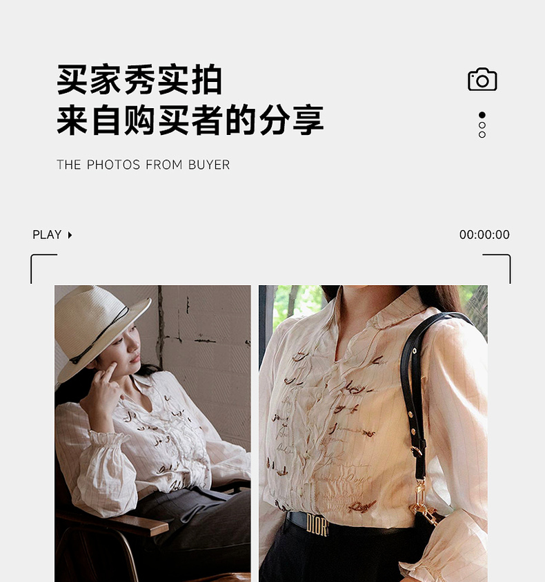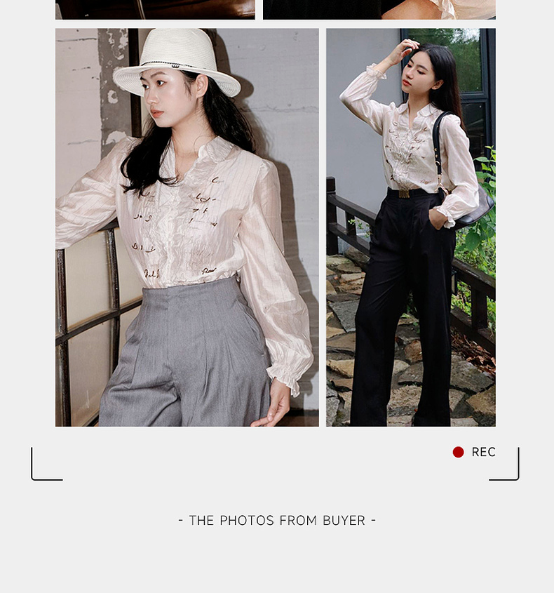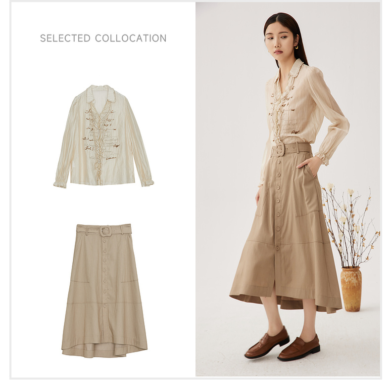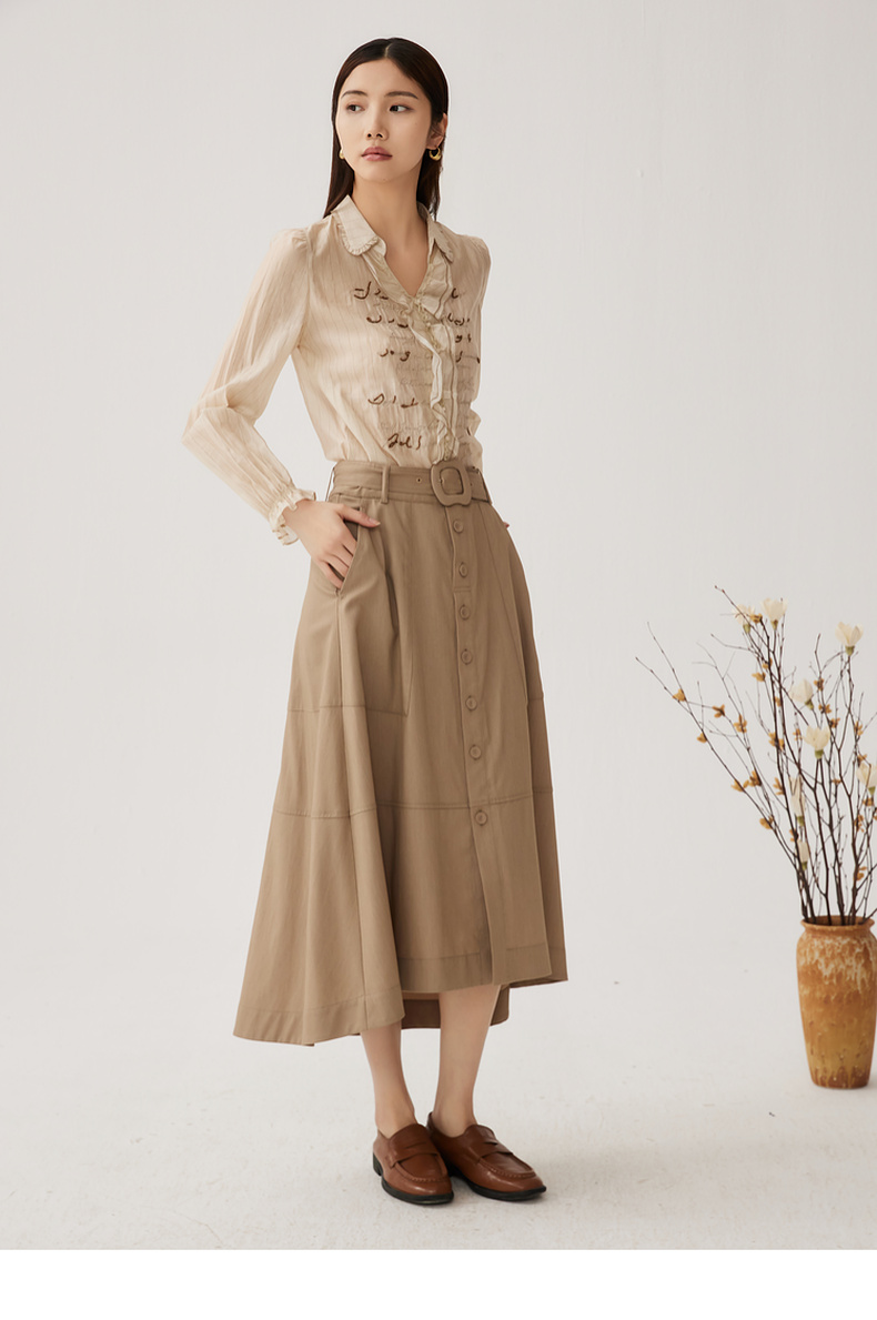谜底衬衫长袖女2024秋季新品通勤风V领钉珠绣花H型衬衣243MC1098