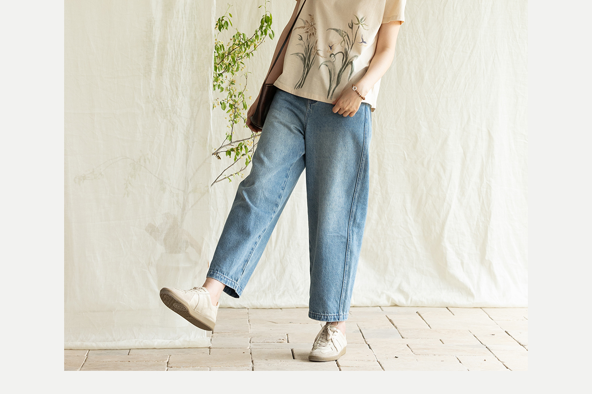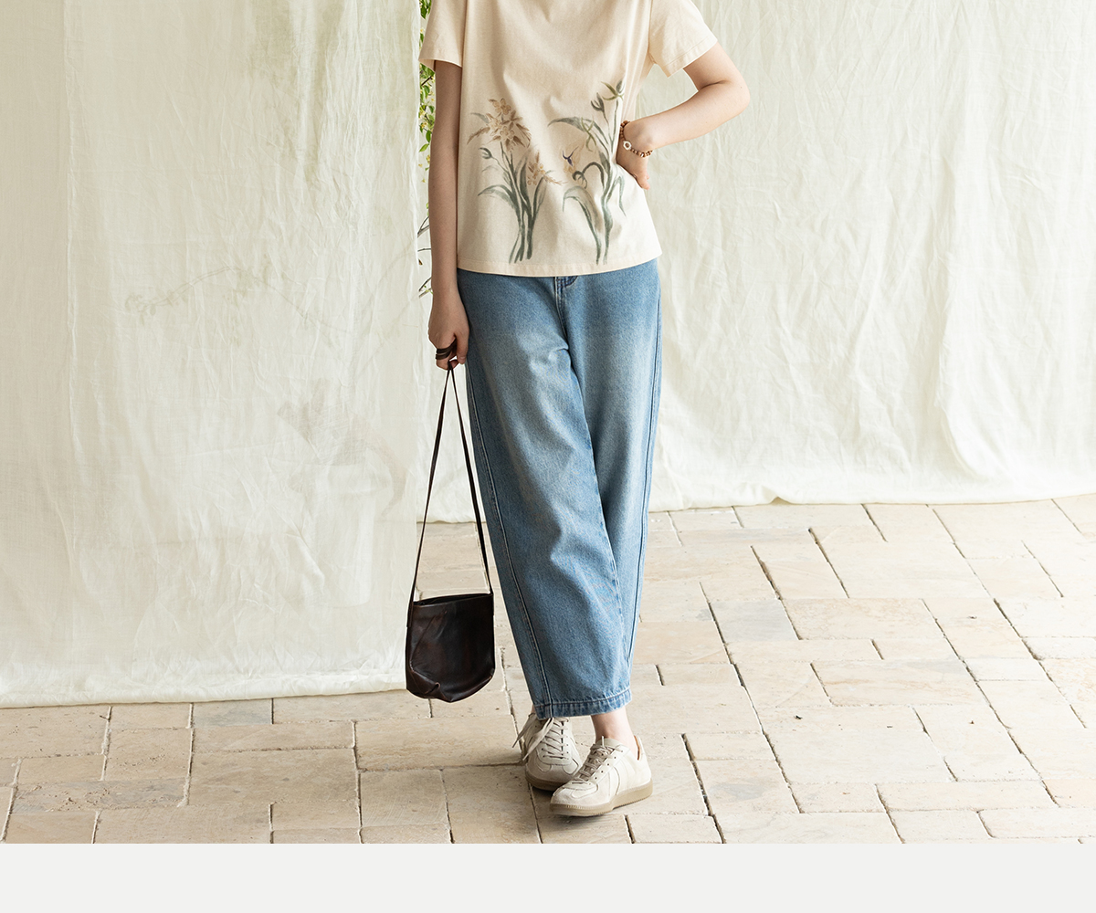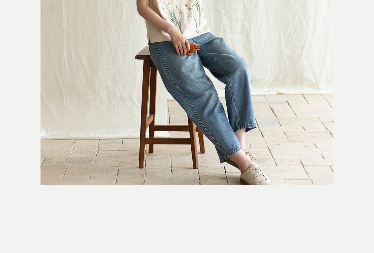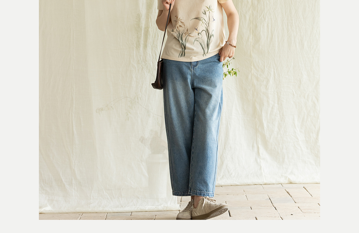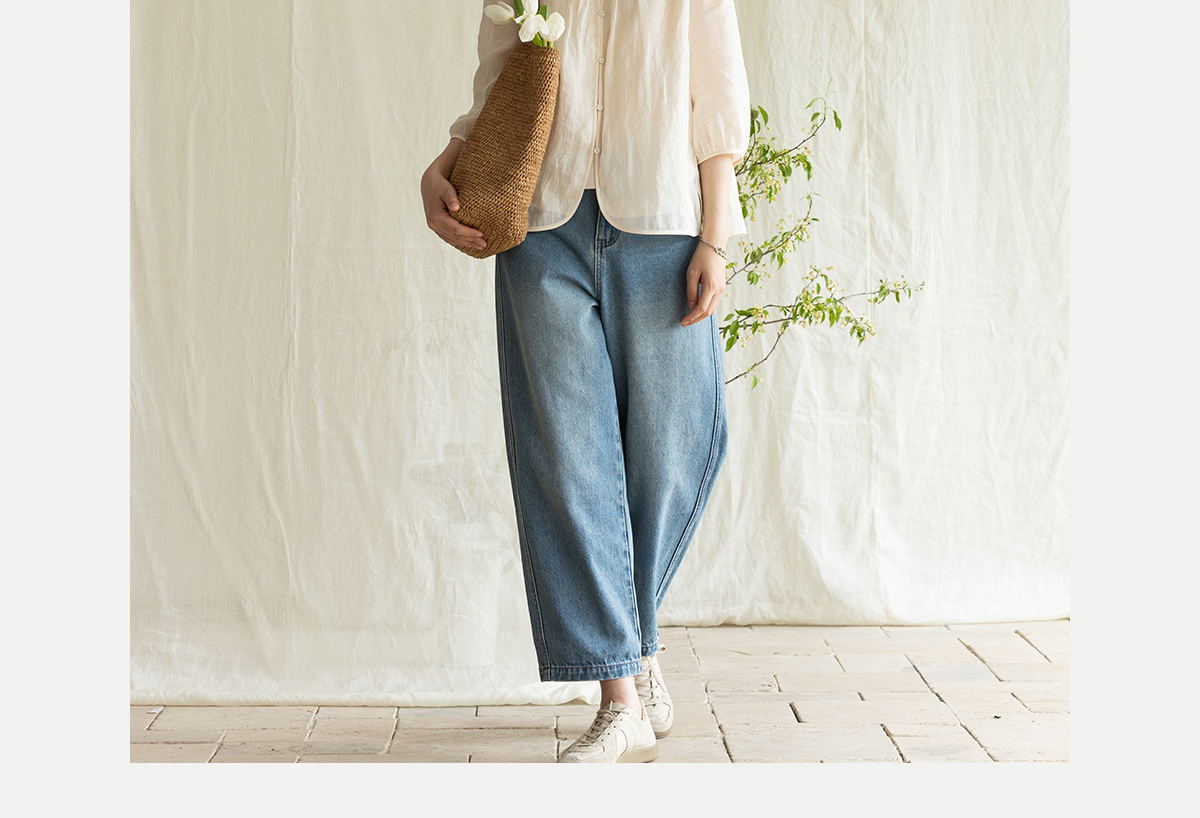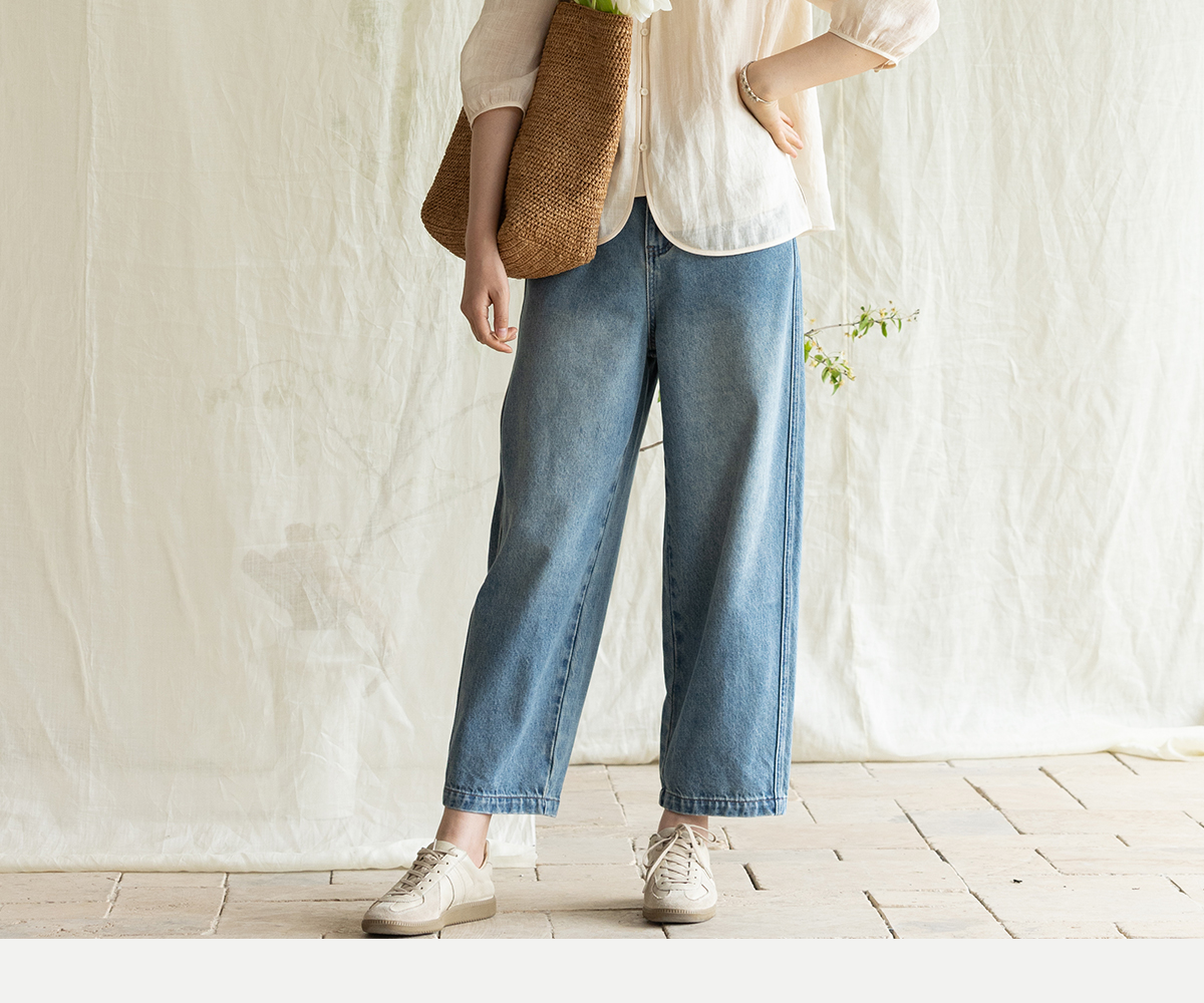 牧衣游原创 净色纯棉牛仔裤新款宽松文艺复古显瘦百搭休闲裤 朴甜