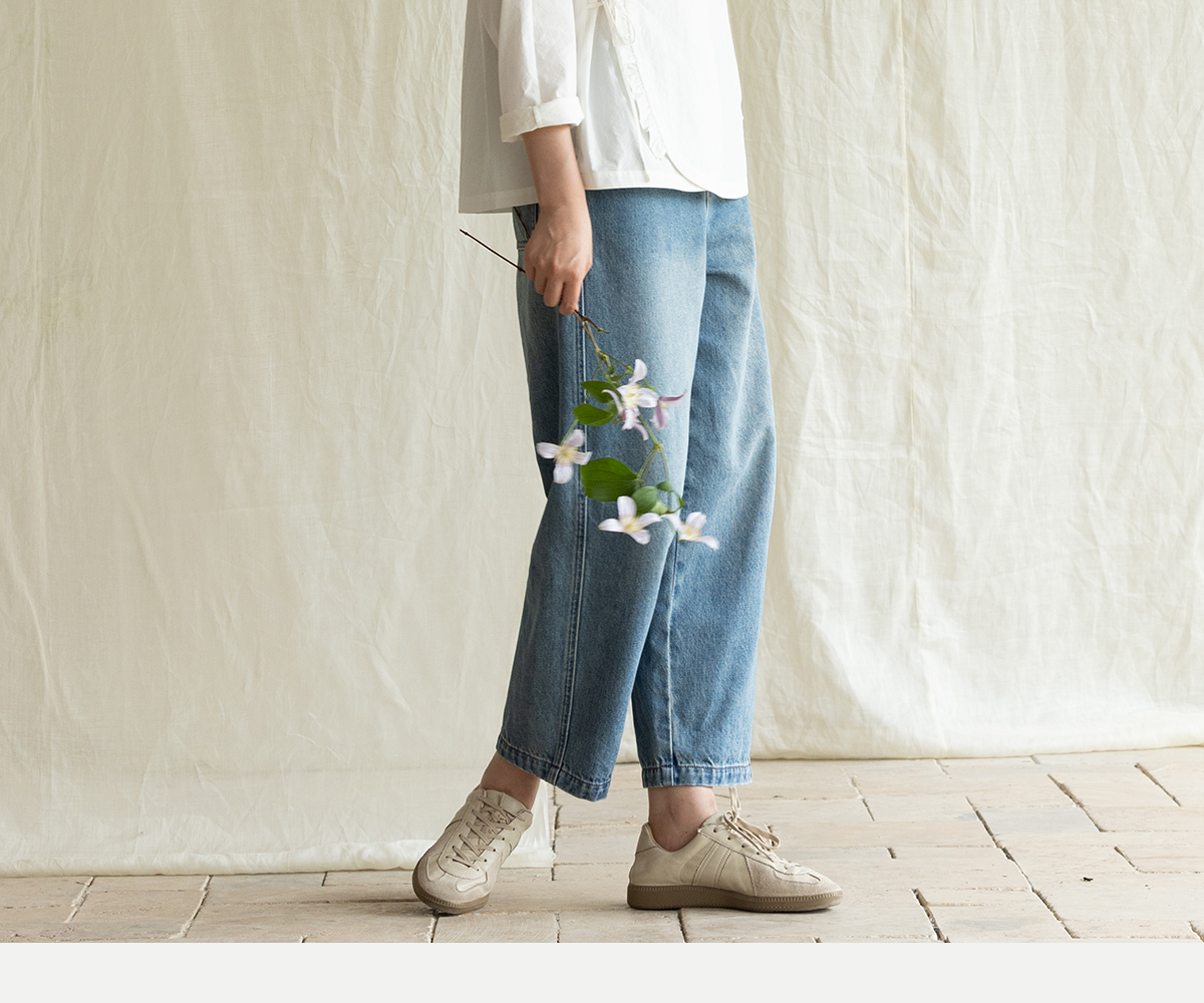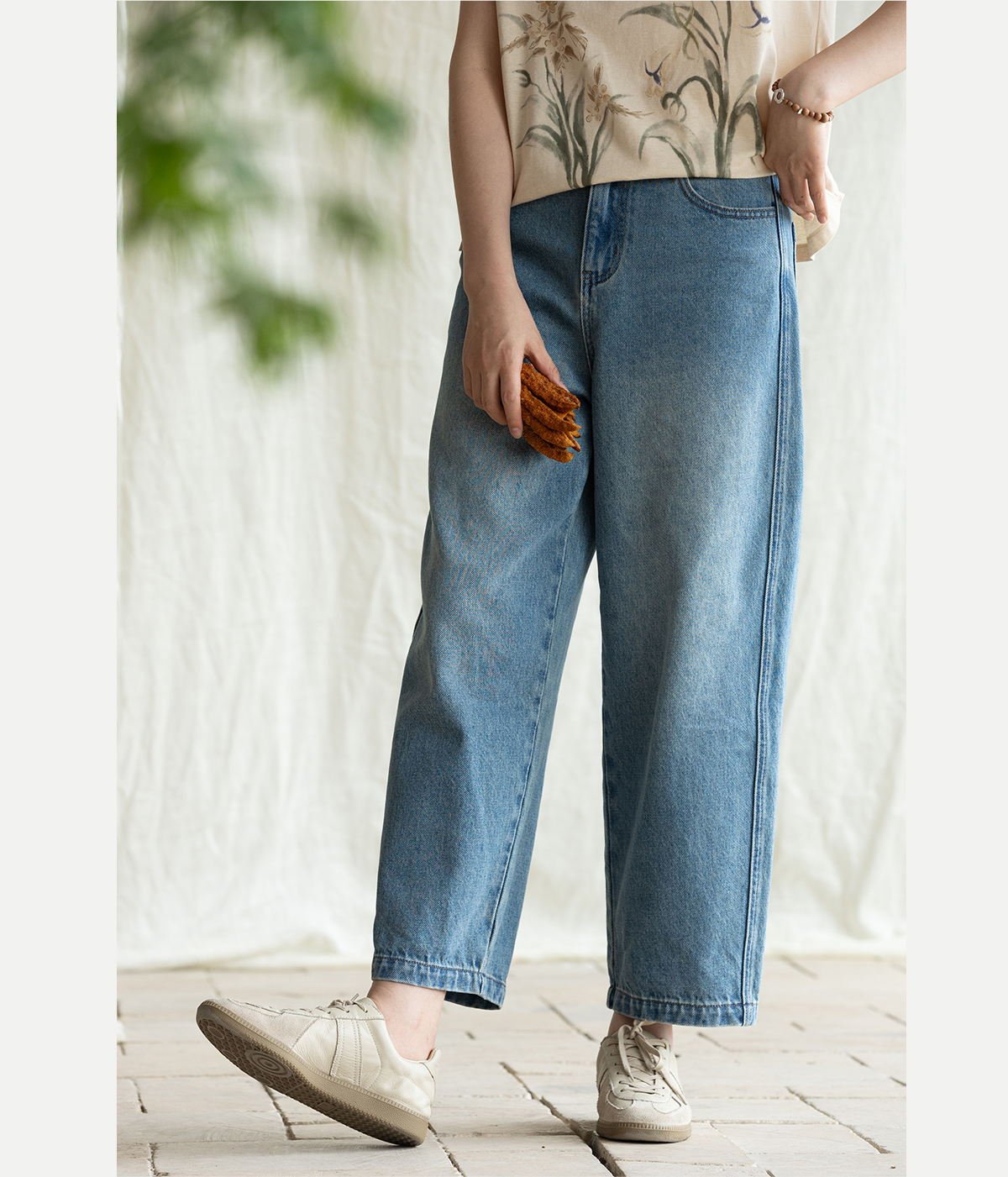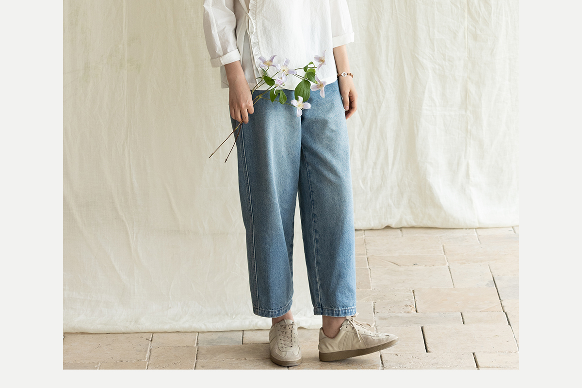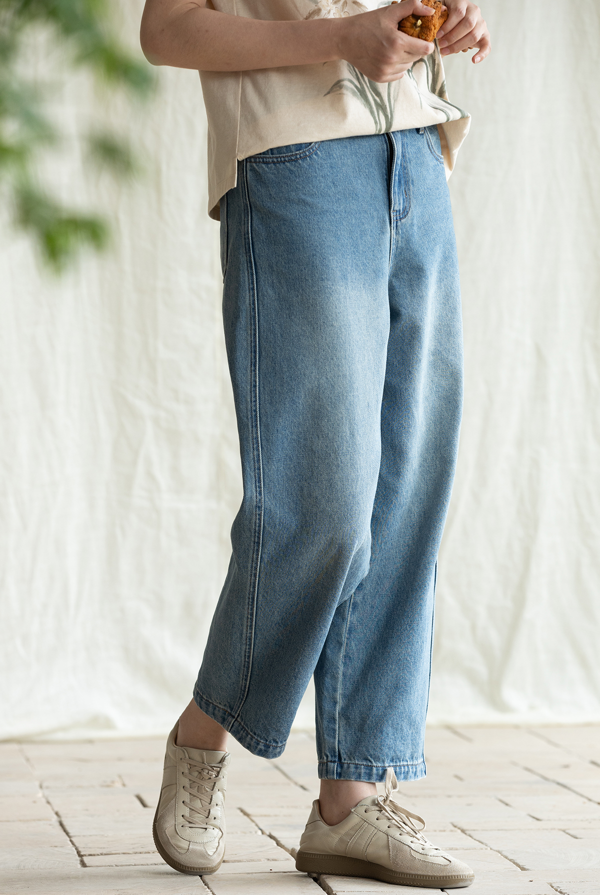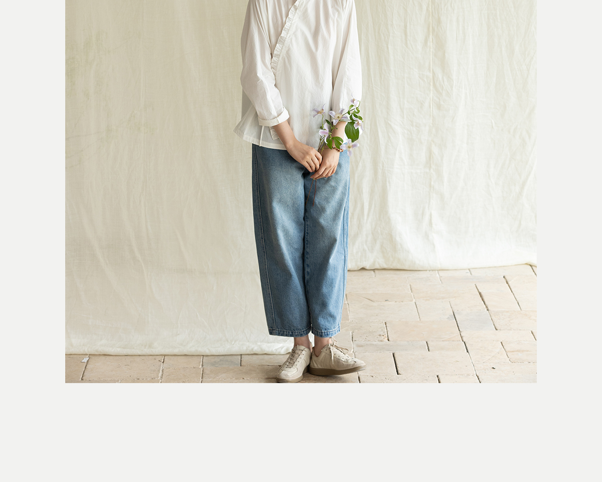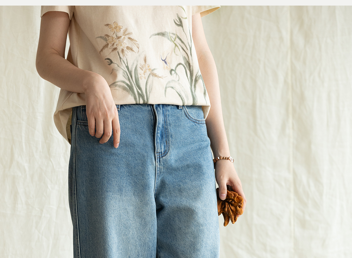 牧衣游原创 净色纯棉牛仔裤新款宽松文艺复古显瘦百搭休闲裤 朴甜