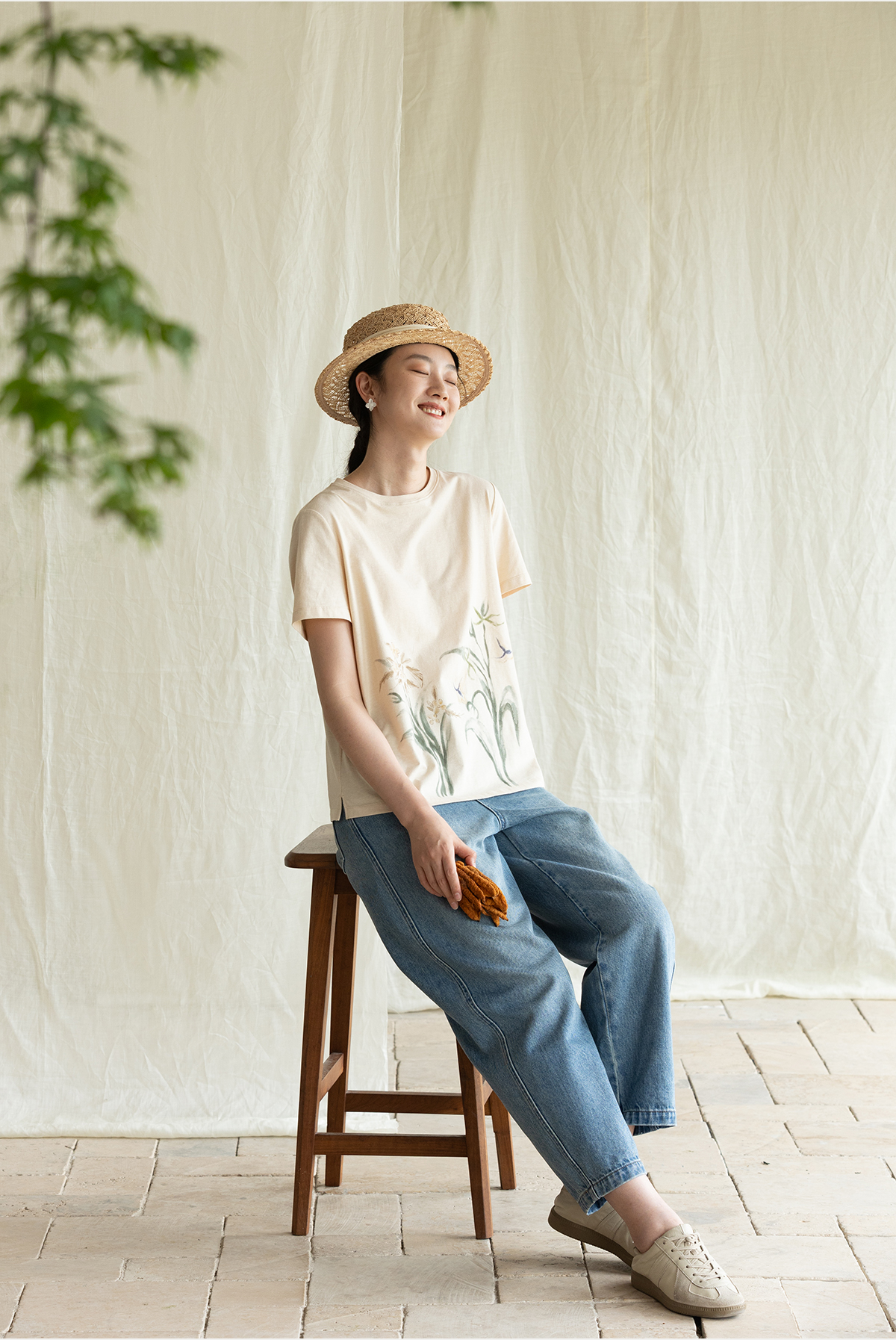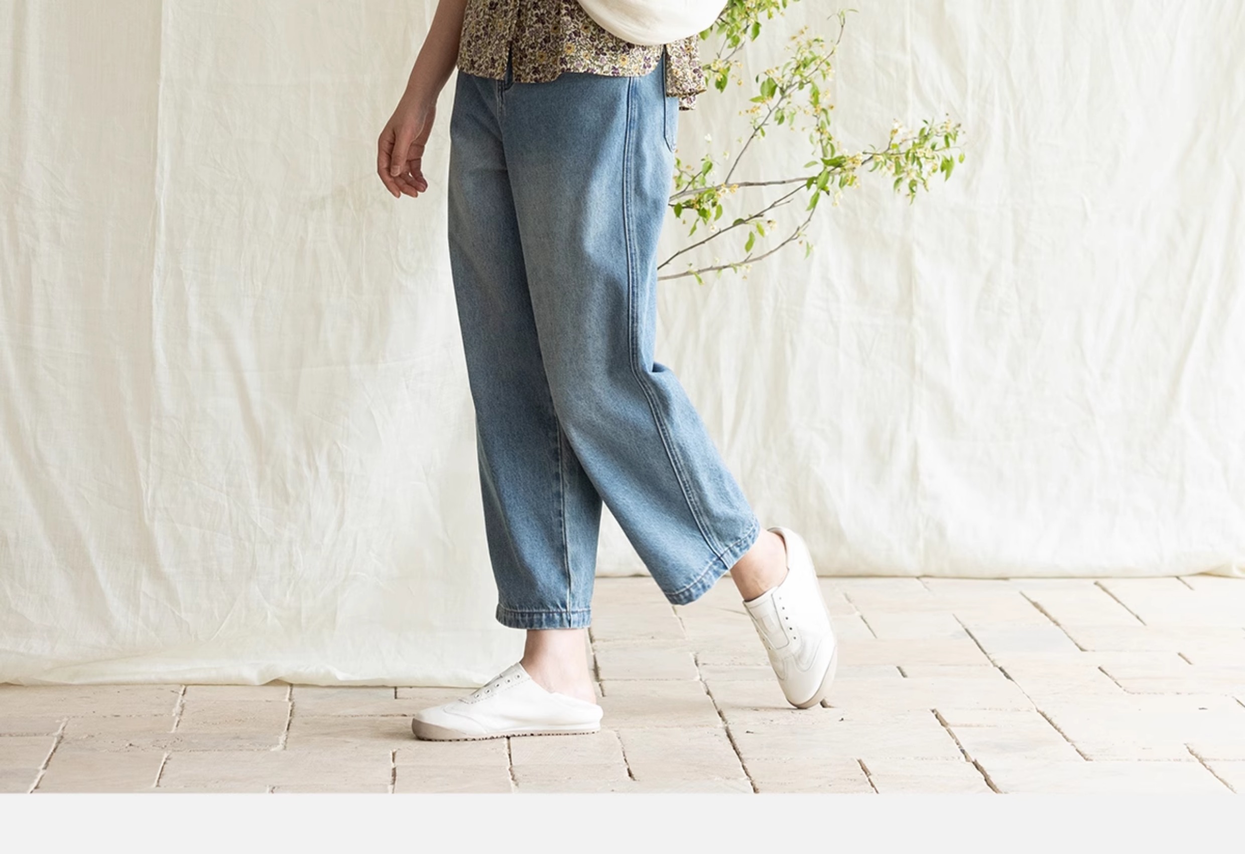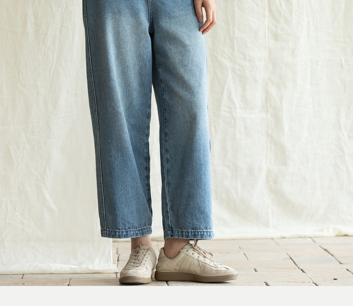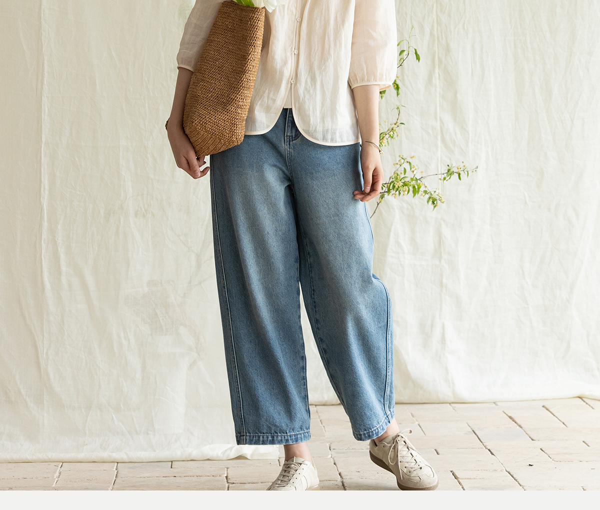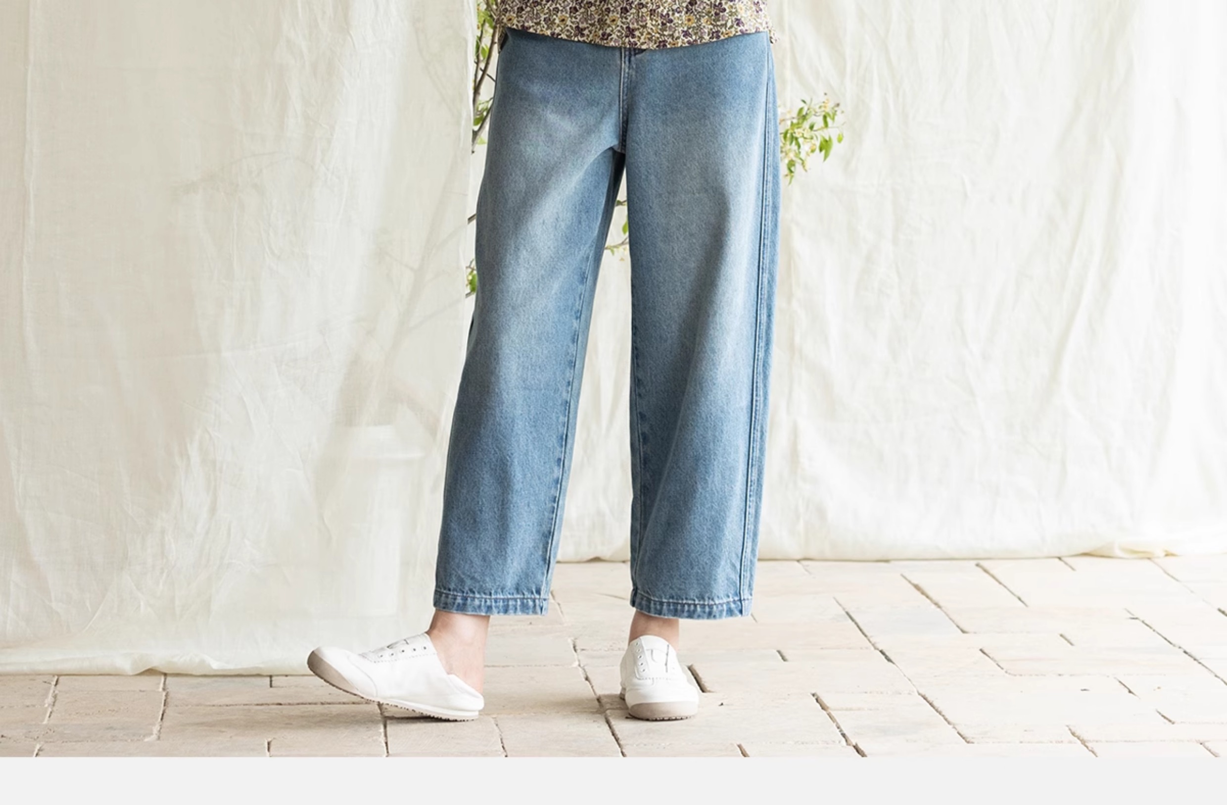 牧衣游原创 净色纯棉牛仔裤新款宽松文艺复古显瘦百搭休闲裤 朴甜