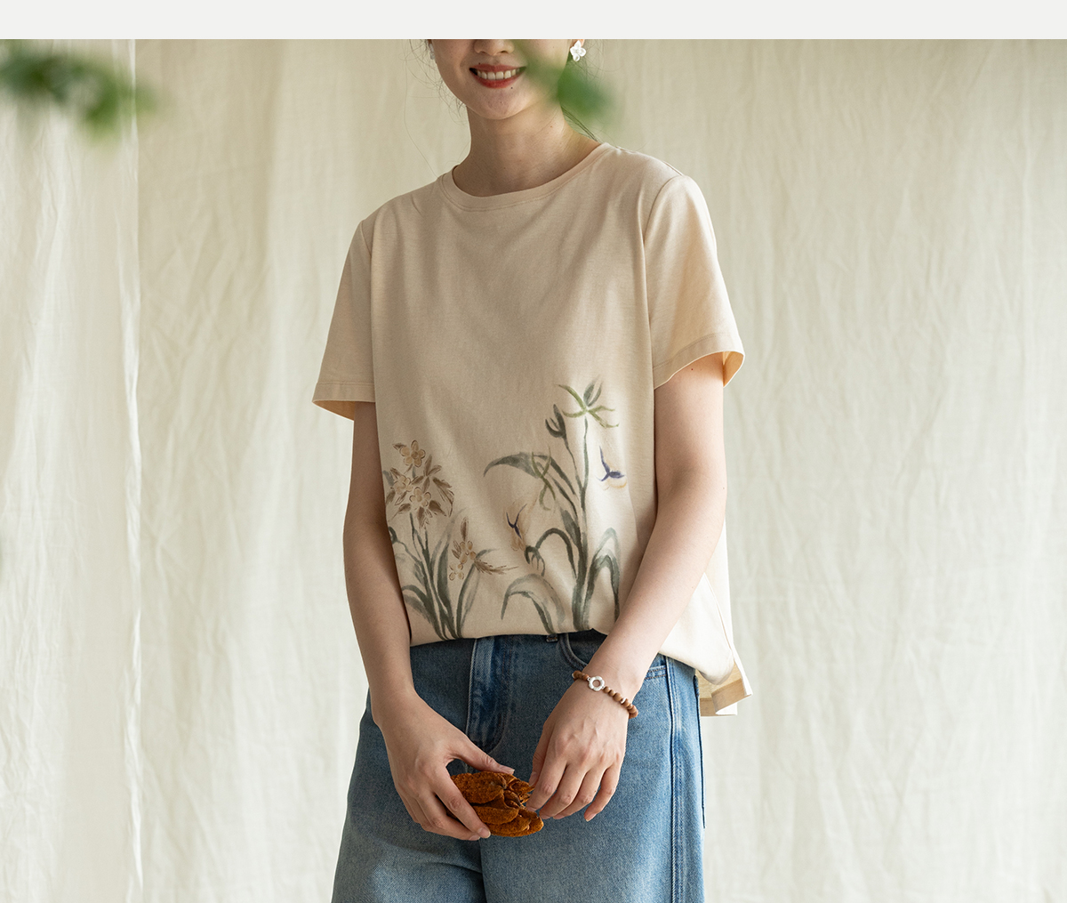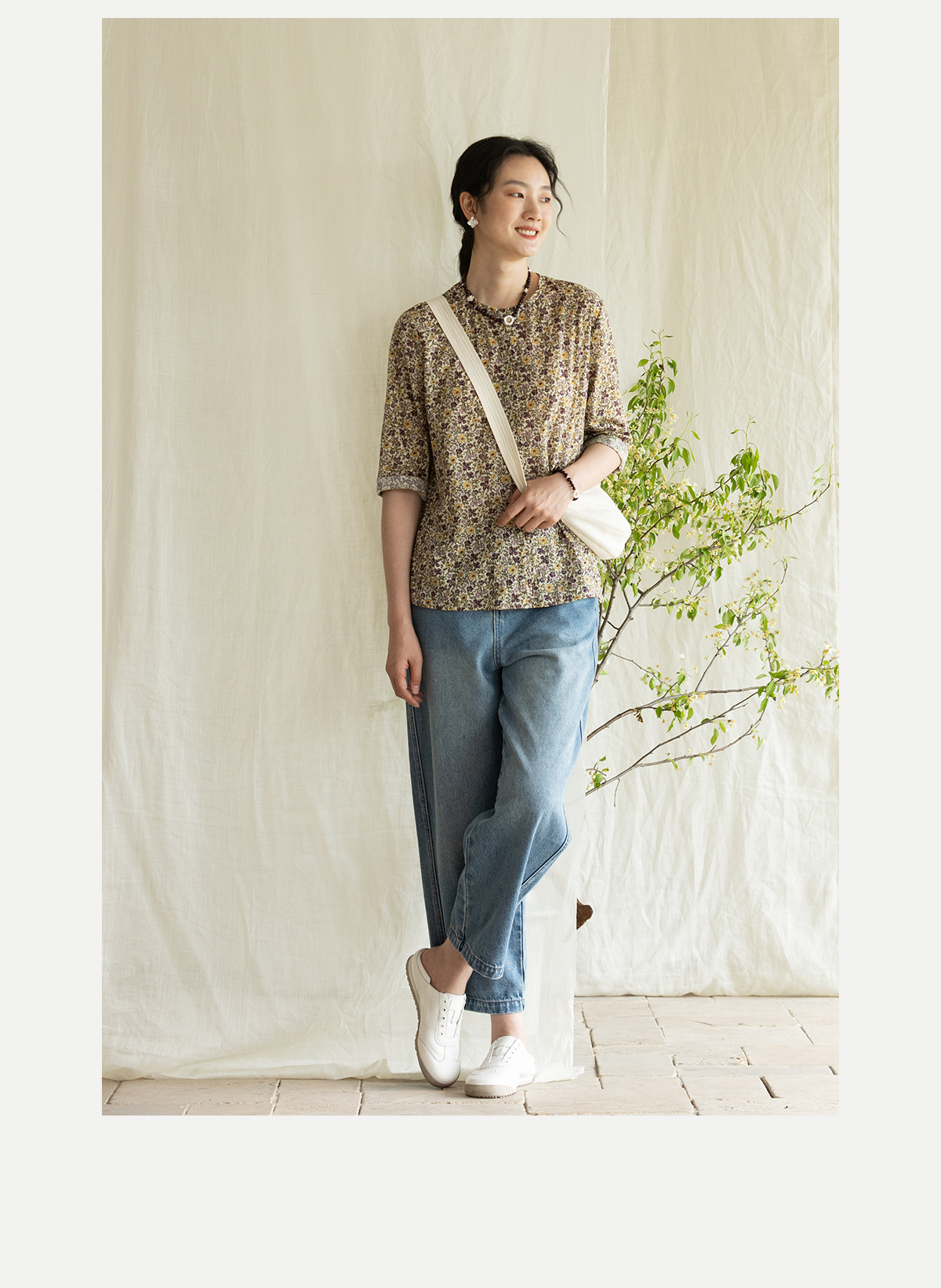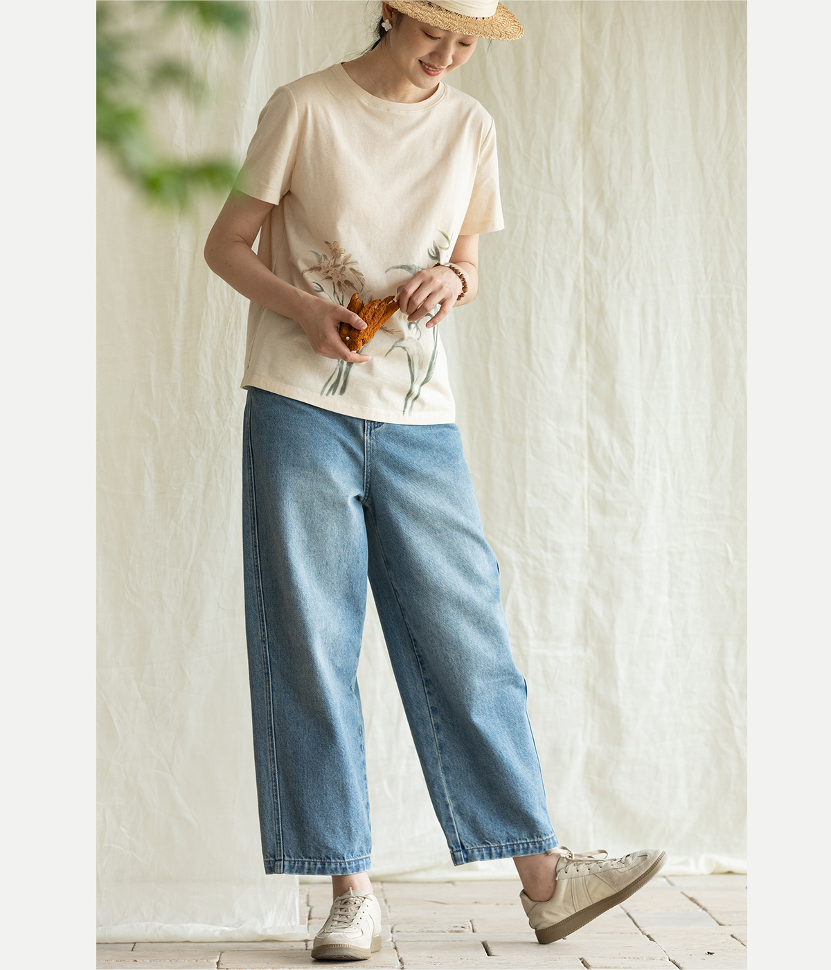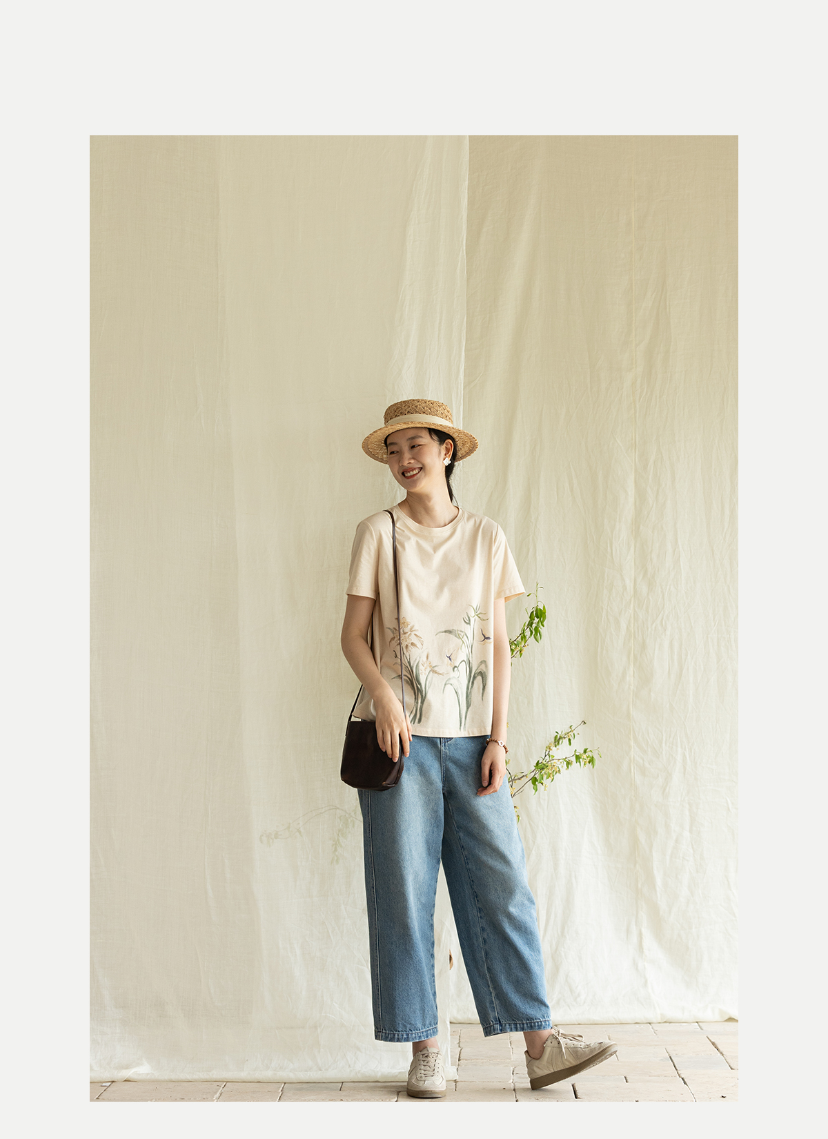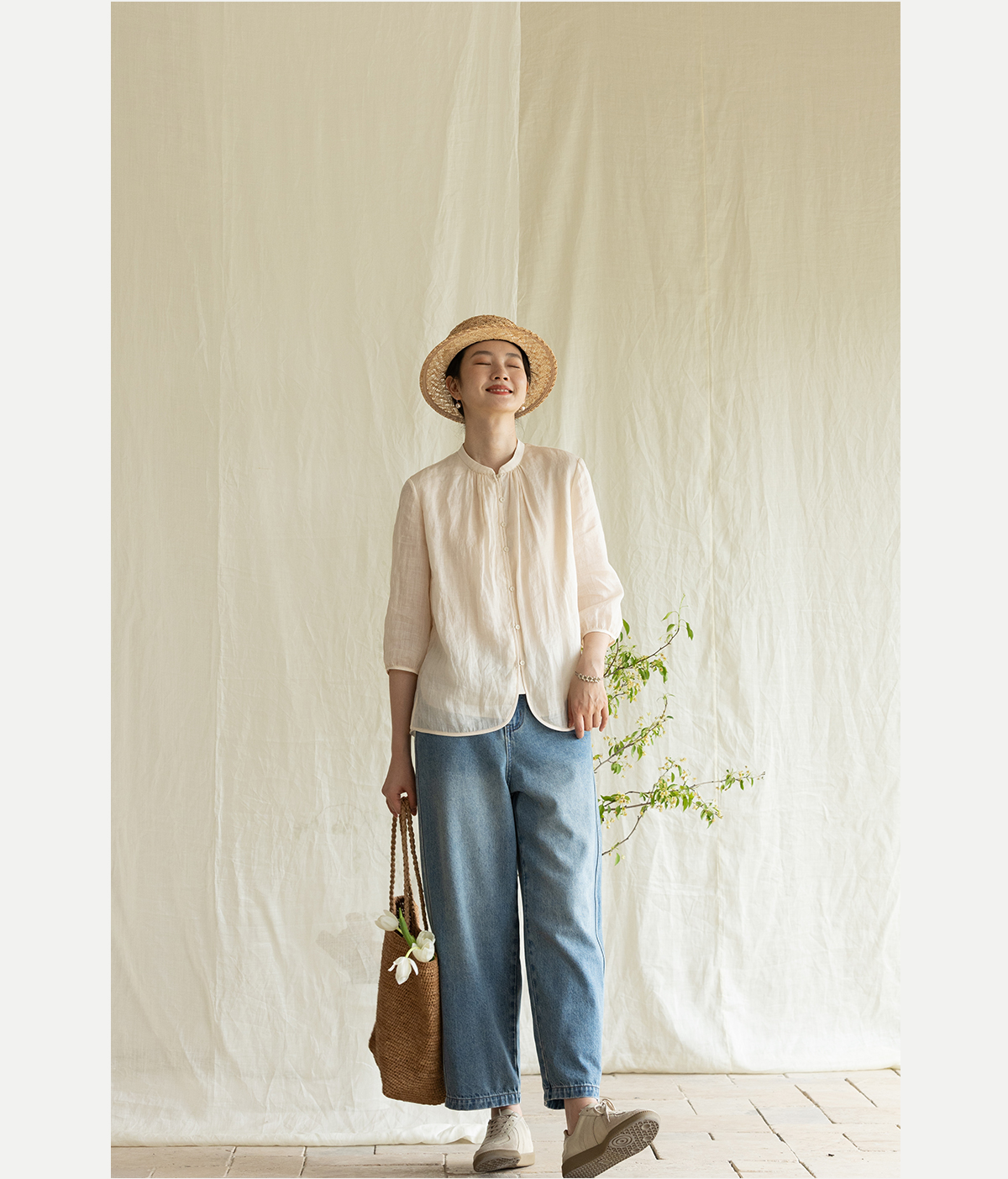 牧衣游原创 净色纯棉牛仔裤新款宽松文艺复古显瘦百搭休闲裤 朴甜