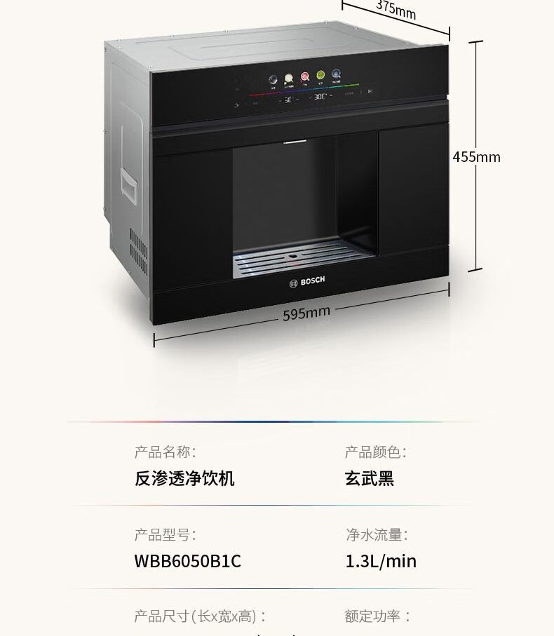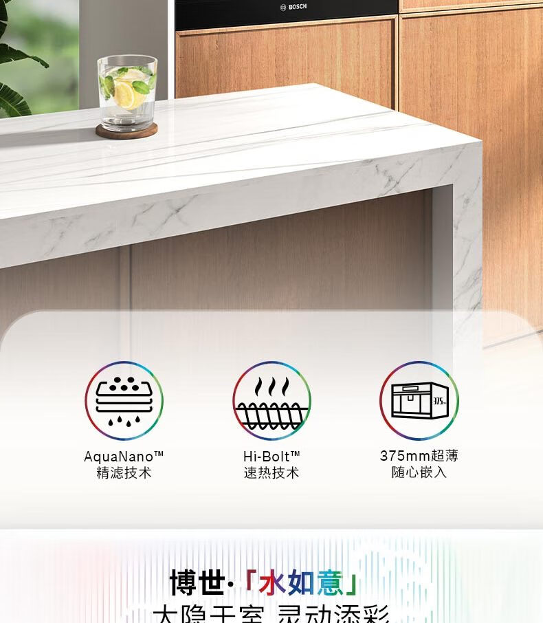 博世(BOSCH)嵌饮机嵌入式反渗透直饮机 水如意系列 晶御智能 净水器家用 精准控温 即滤即饮 温水款净水机 WBB6050B1C