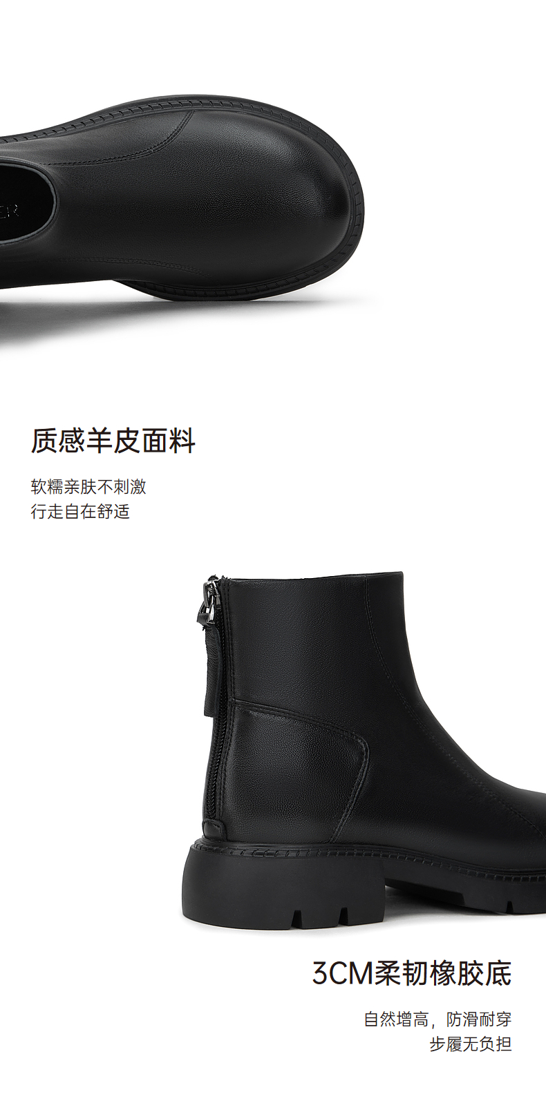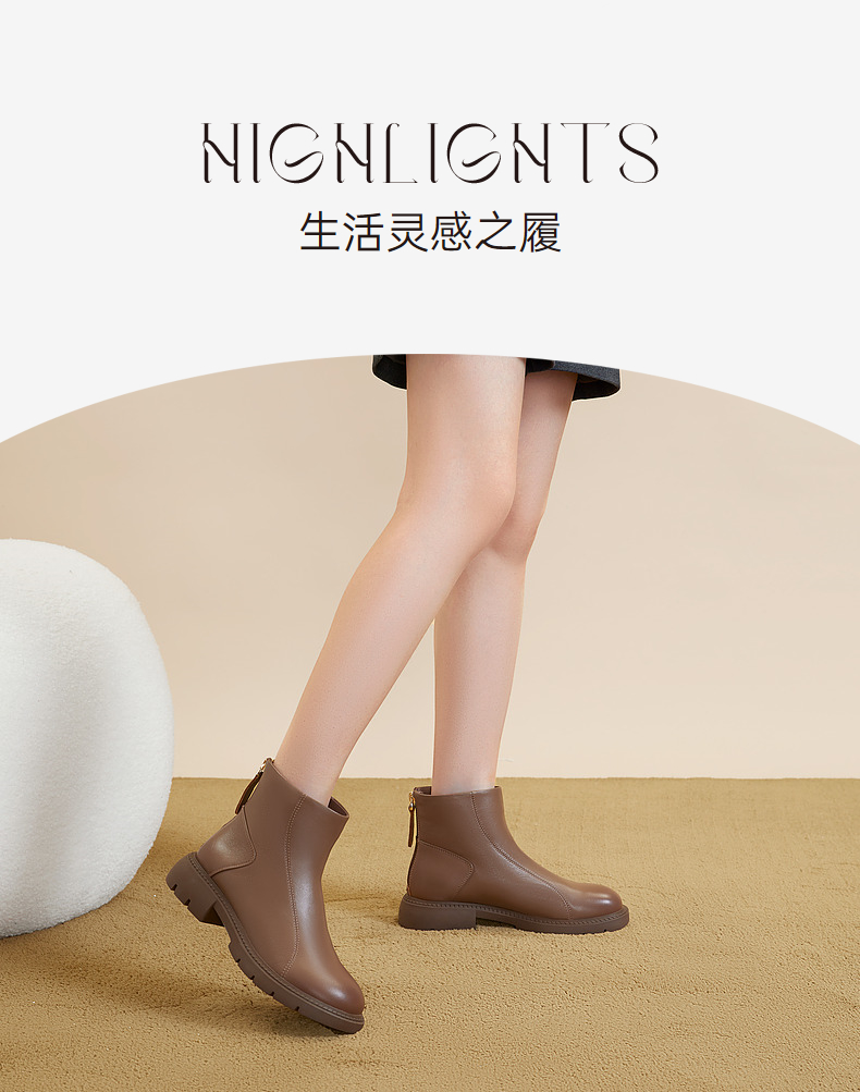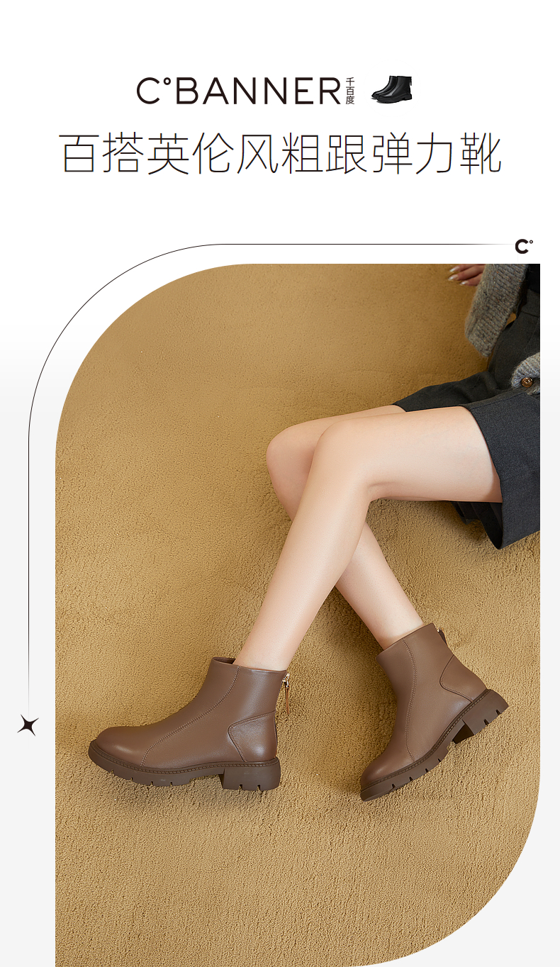 千百度厚底增高弹力靴秋冬时尚时装靴美拉德羊皮短靴女鞋A23587801