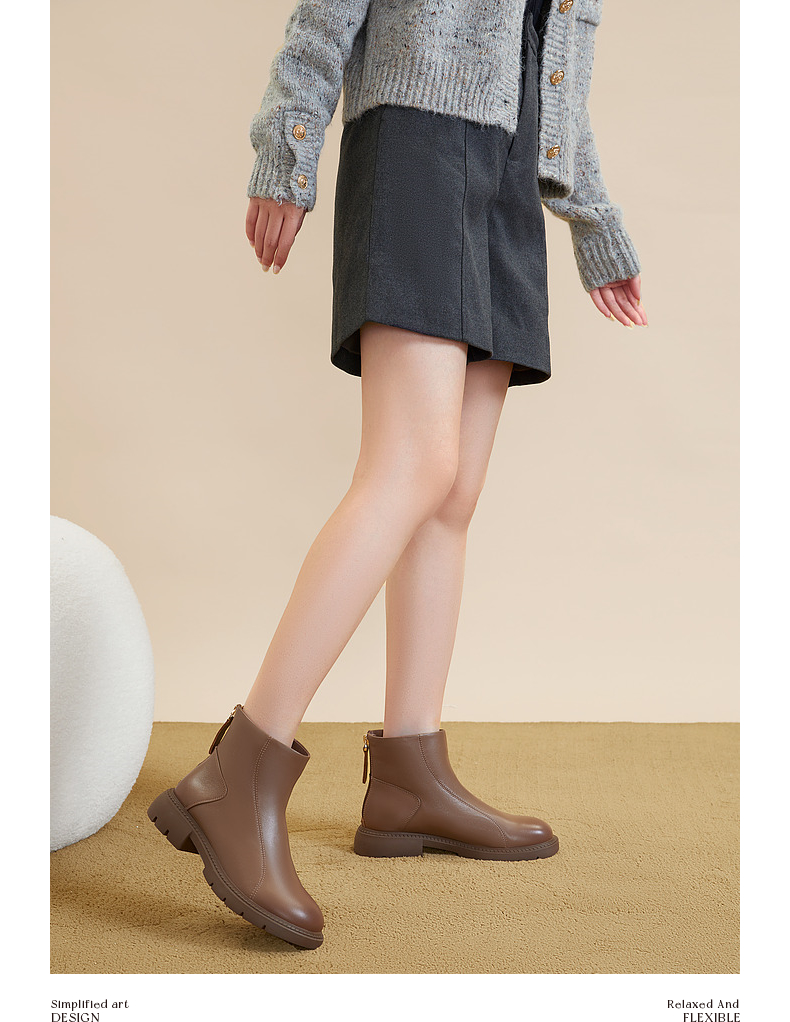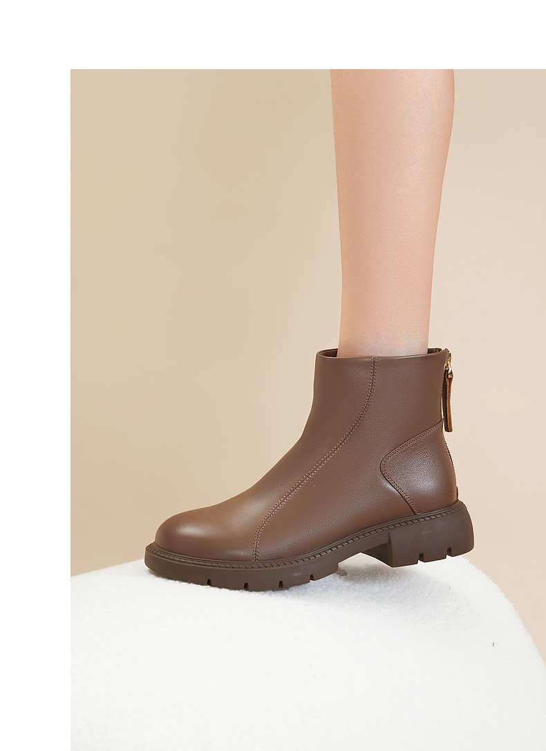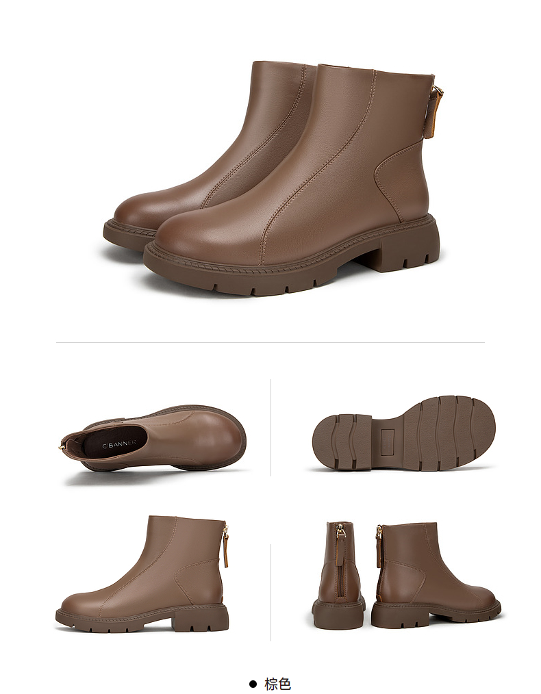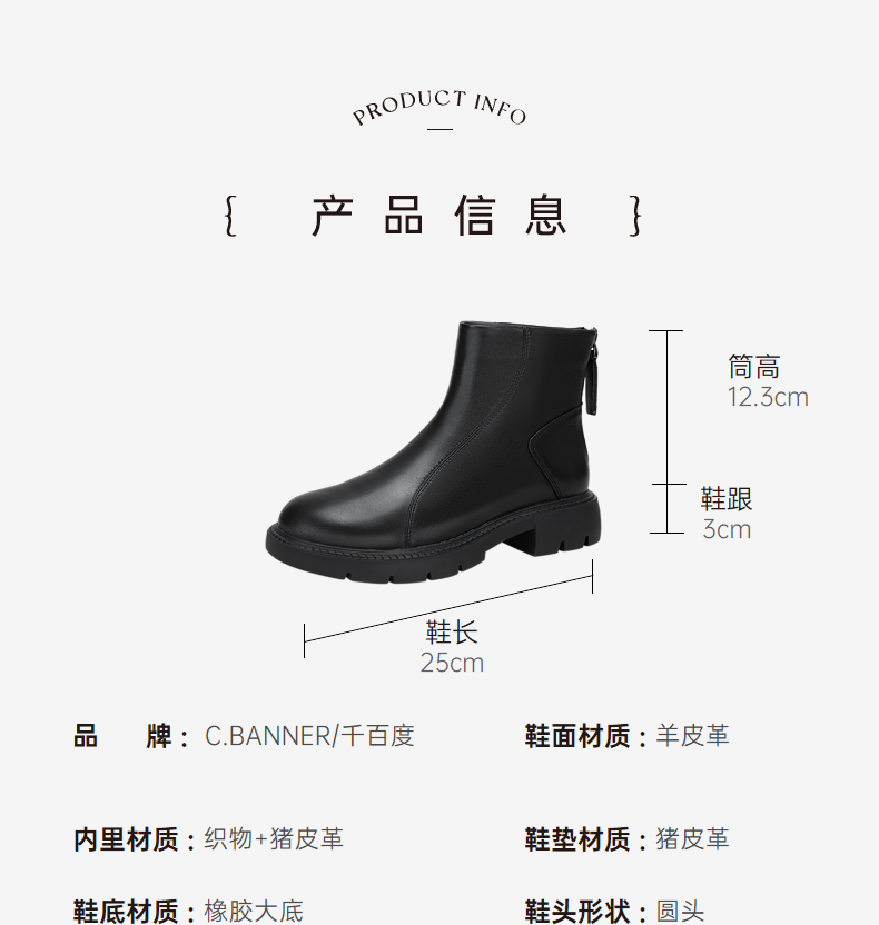 千百度厚底增高弹力靴秋冬时尚时装靴美拉德羊皮短靴女鞋A23587801