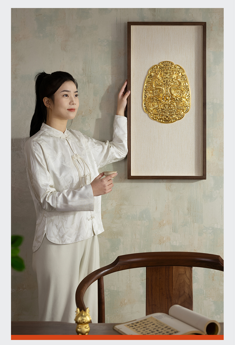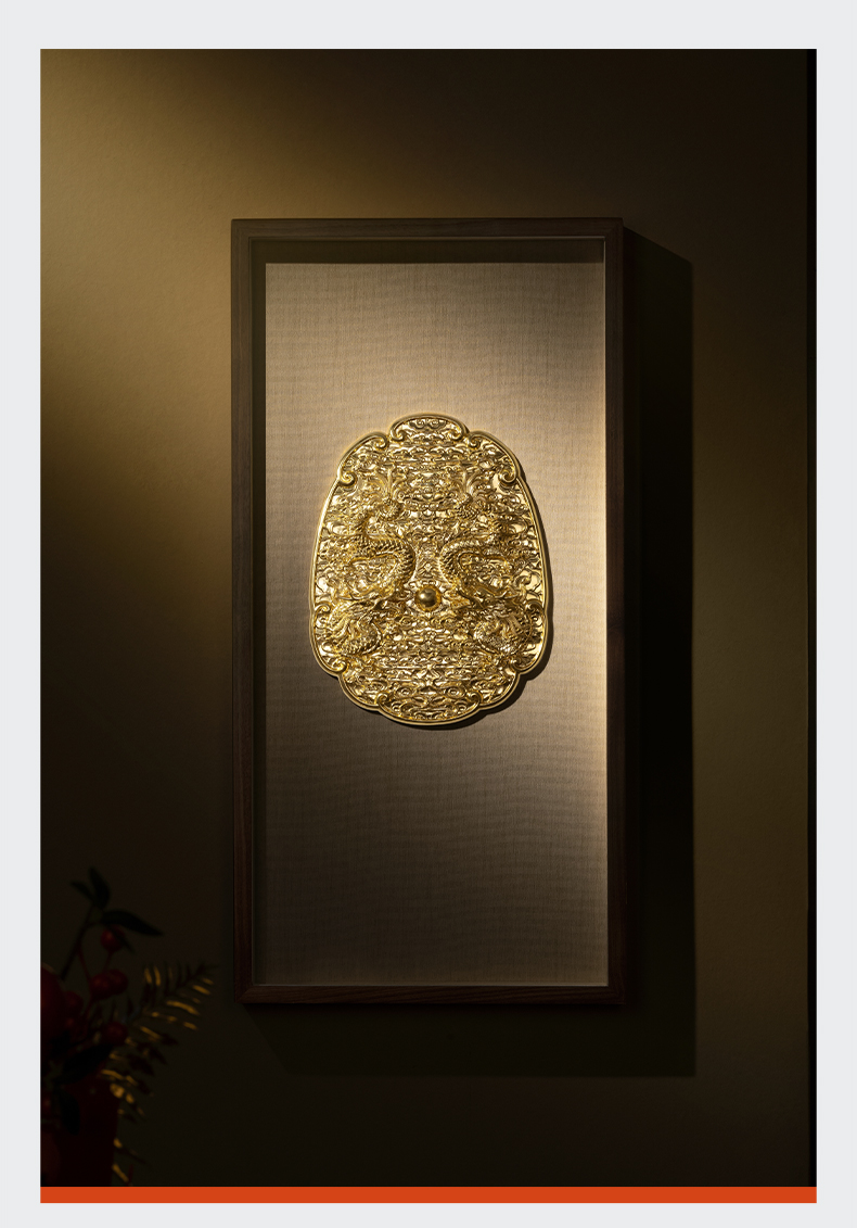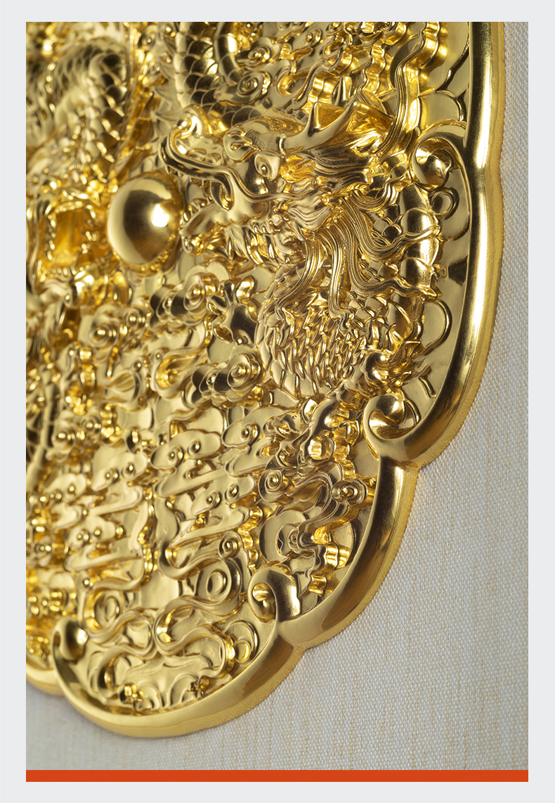 太铜 铜摆件《双龙戏珠》客厅玄关画沙发背景墙装饰画铜雕画