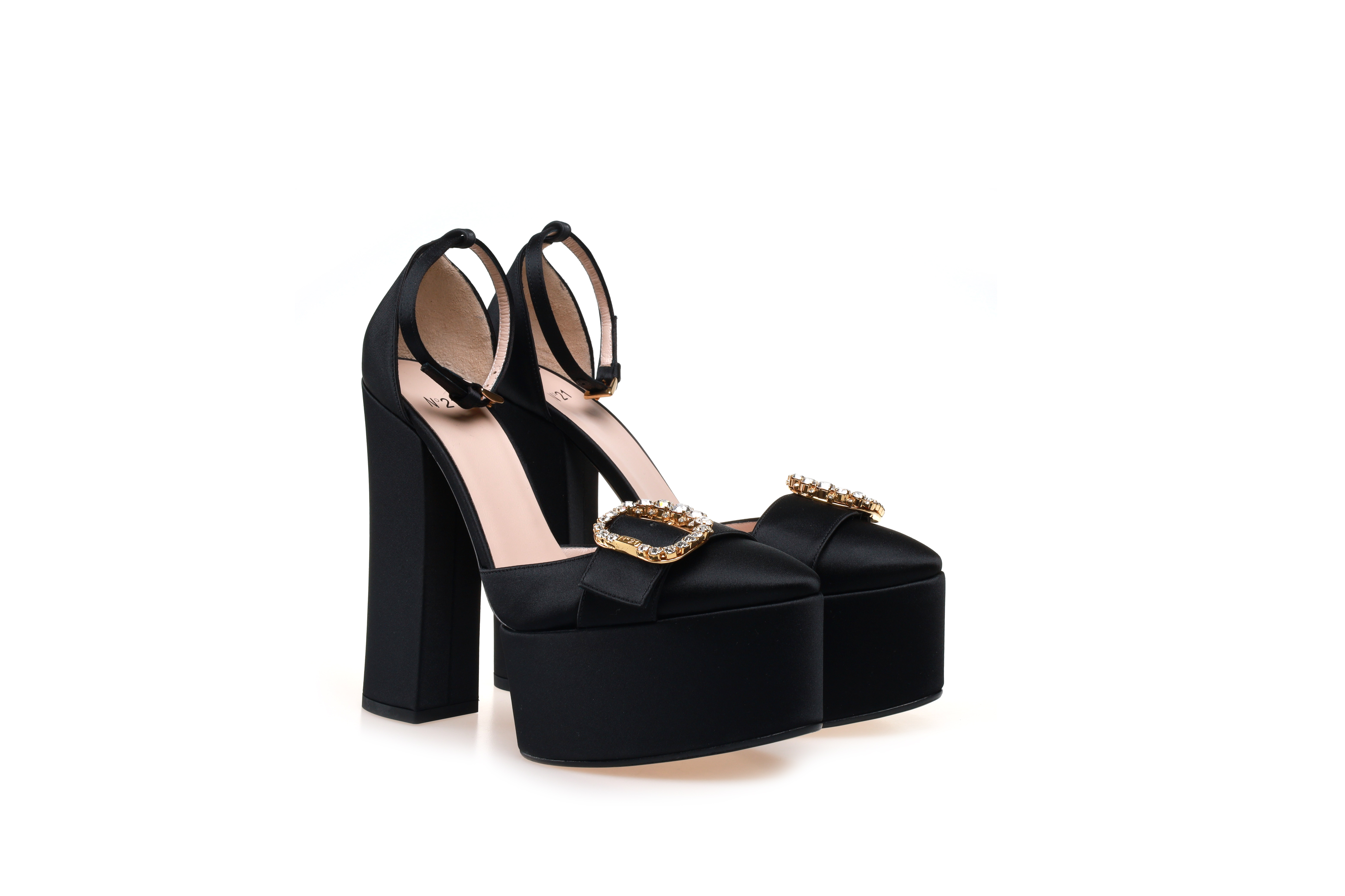 豪麟名鞋奥莱N°21 女鞋皮鞋真丝布N16013P黑色 原价8600元