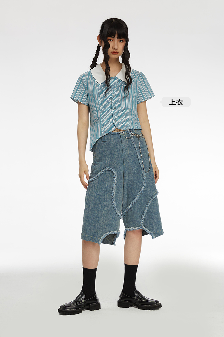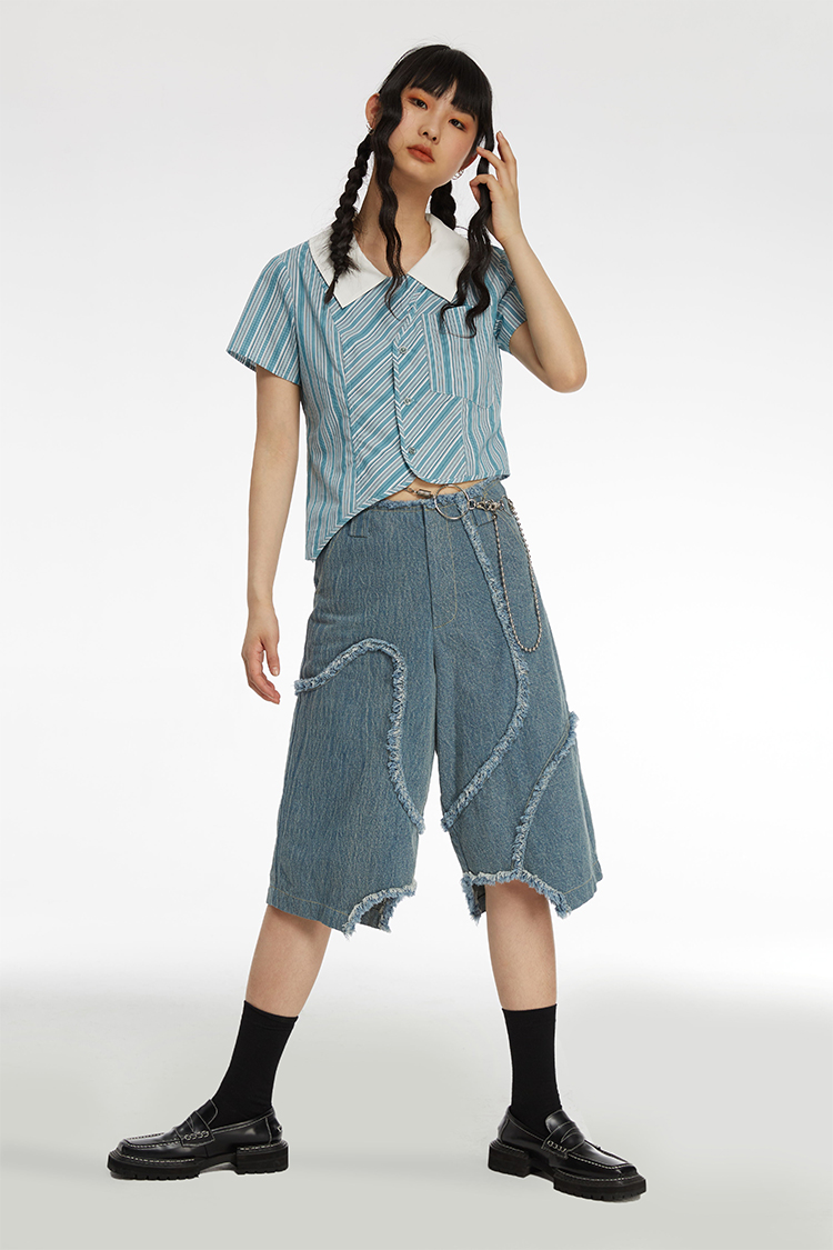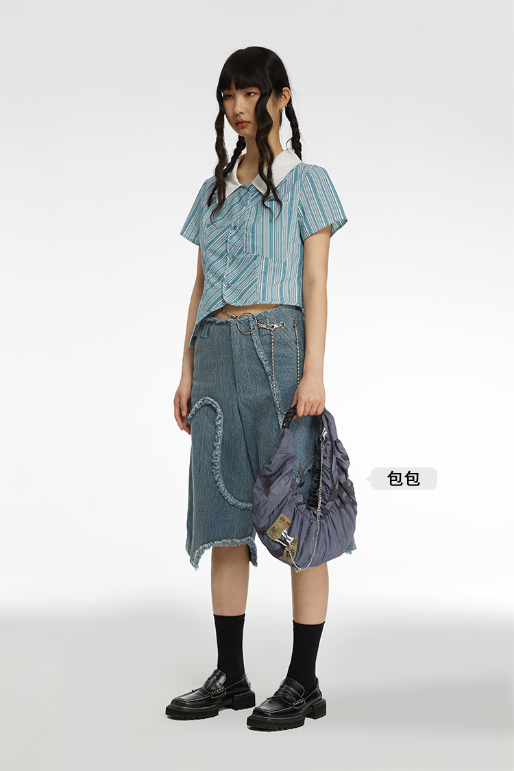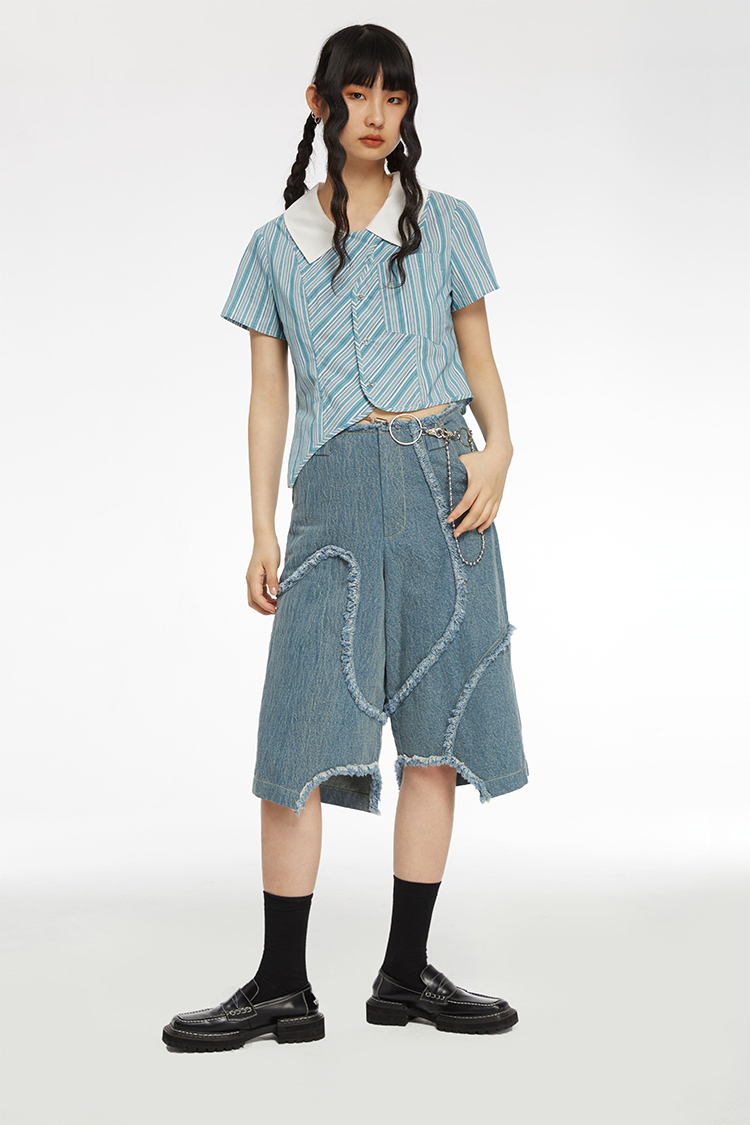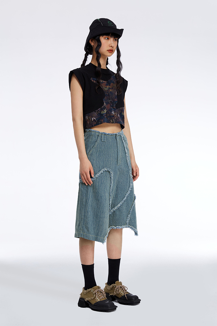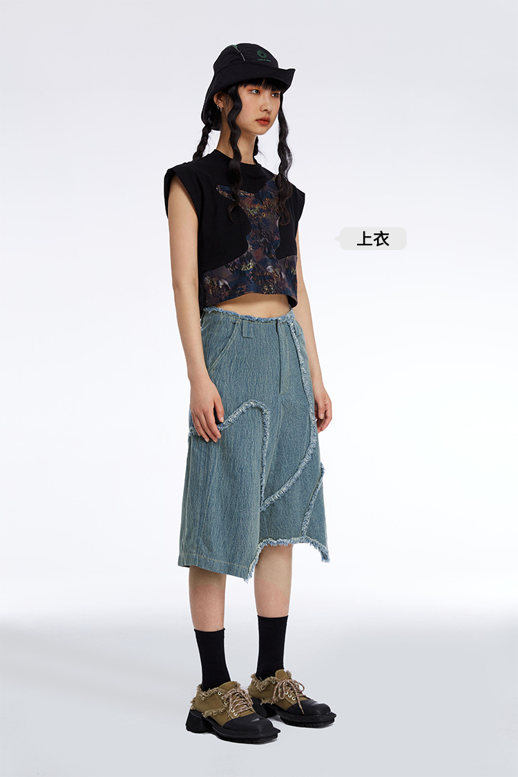 HOLONOMIC 原创不规则毛边分割宽松阔腿设计感小众牛仔五分短裤