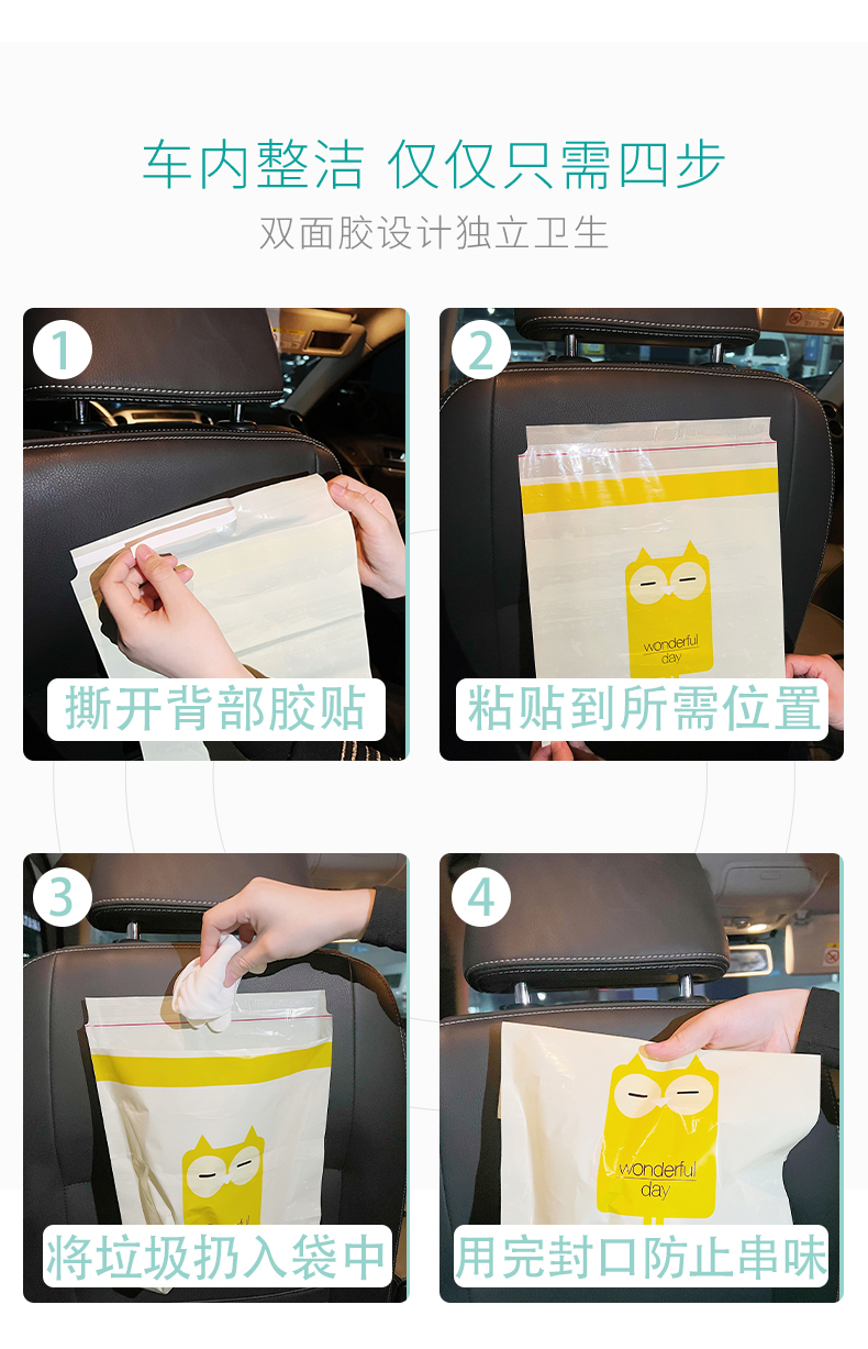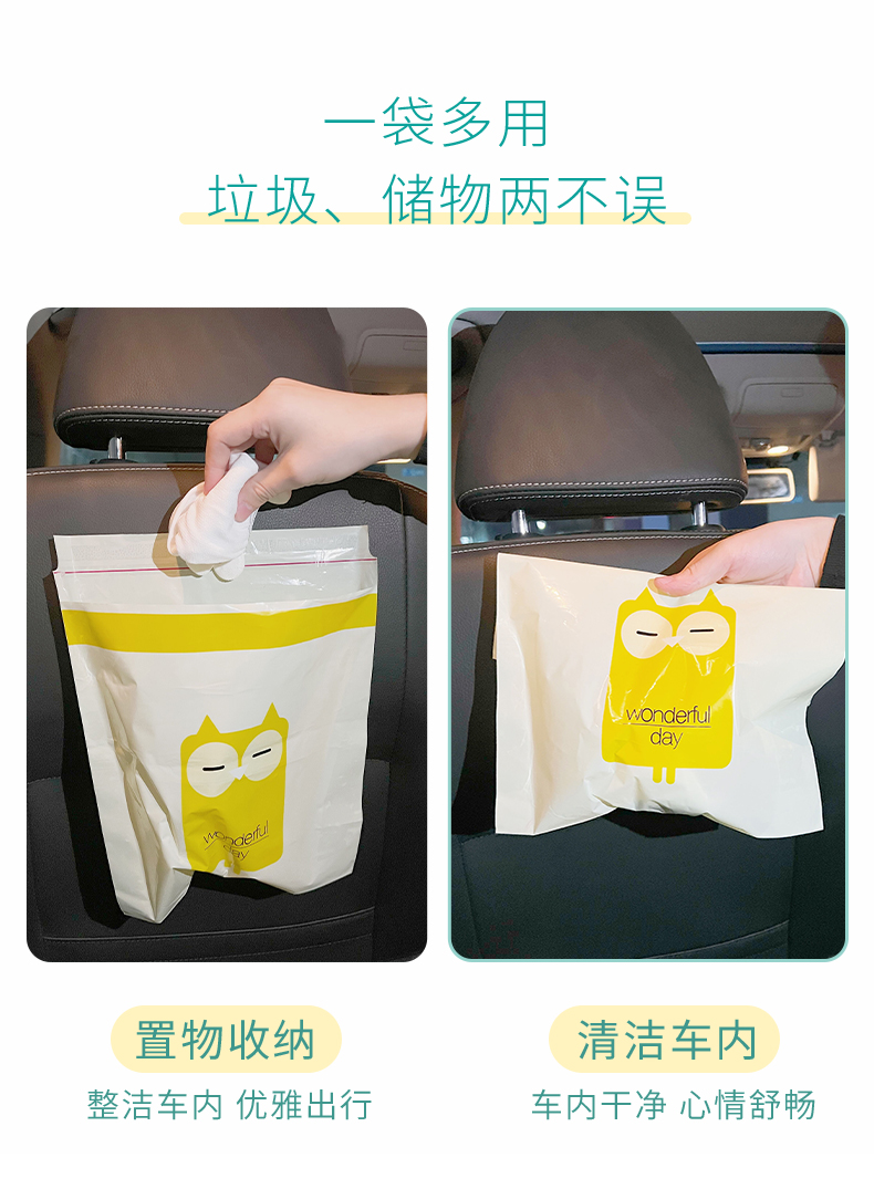 韵舒雅卡通车载垃圾袋15个 可降解材质 环保无污染 一袋多用