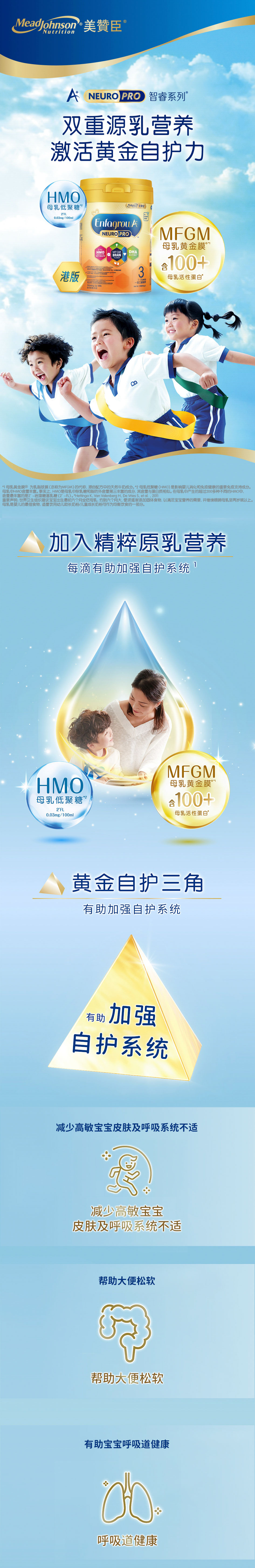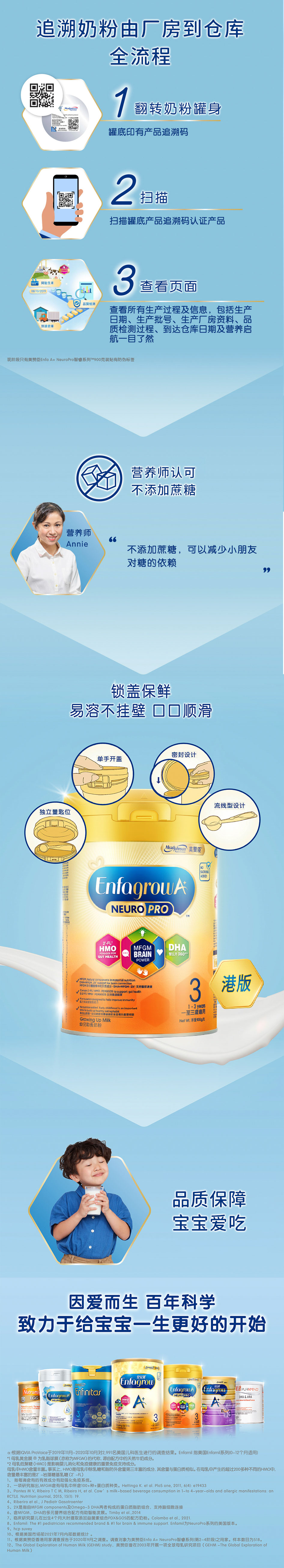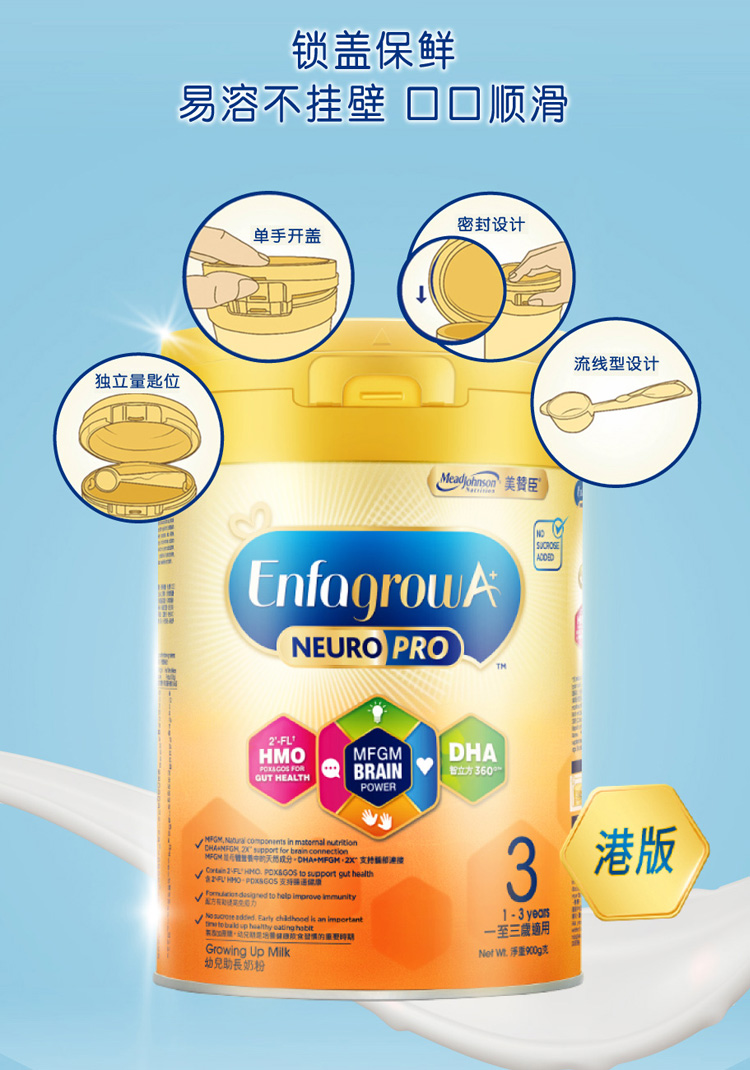 [大罐3段]港版美赞臣NEUROPRO 智睿HMO系列婴幼儿奶粉3段(1-3岁)900g