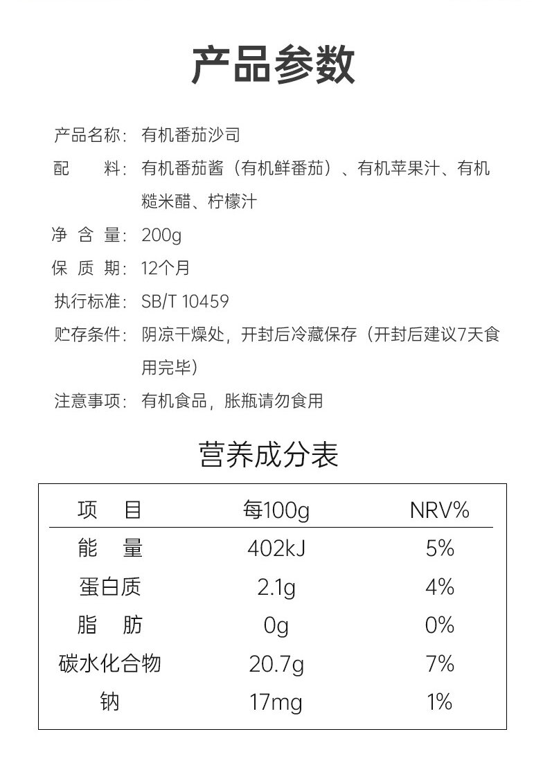 应物有机番茄沙司 商品图4