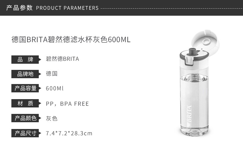 BRITA碧然德 滤水杯600ML+滤芯4个 德国