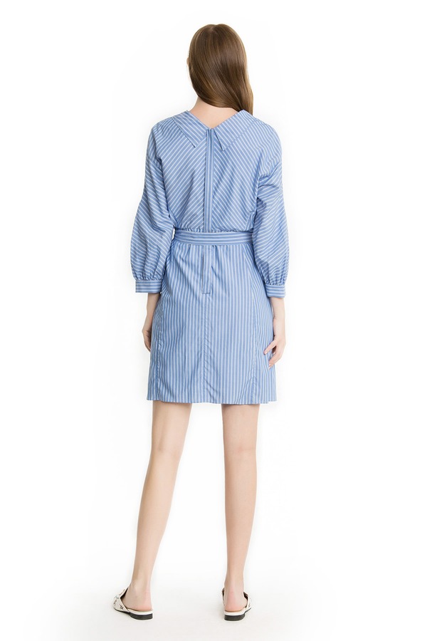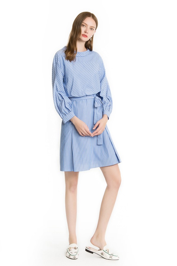 Eifini伊芙丽 蓝白条纹灯笼袖衬衫裙 1440