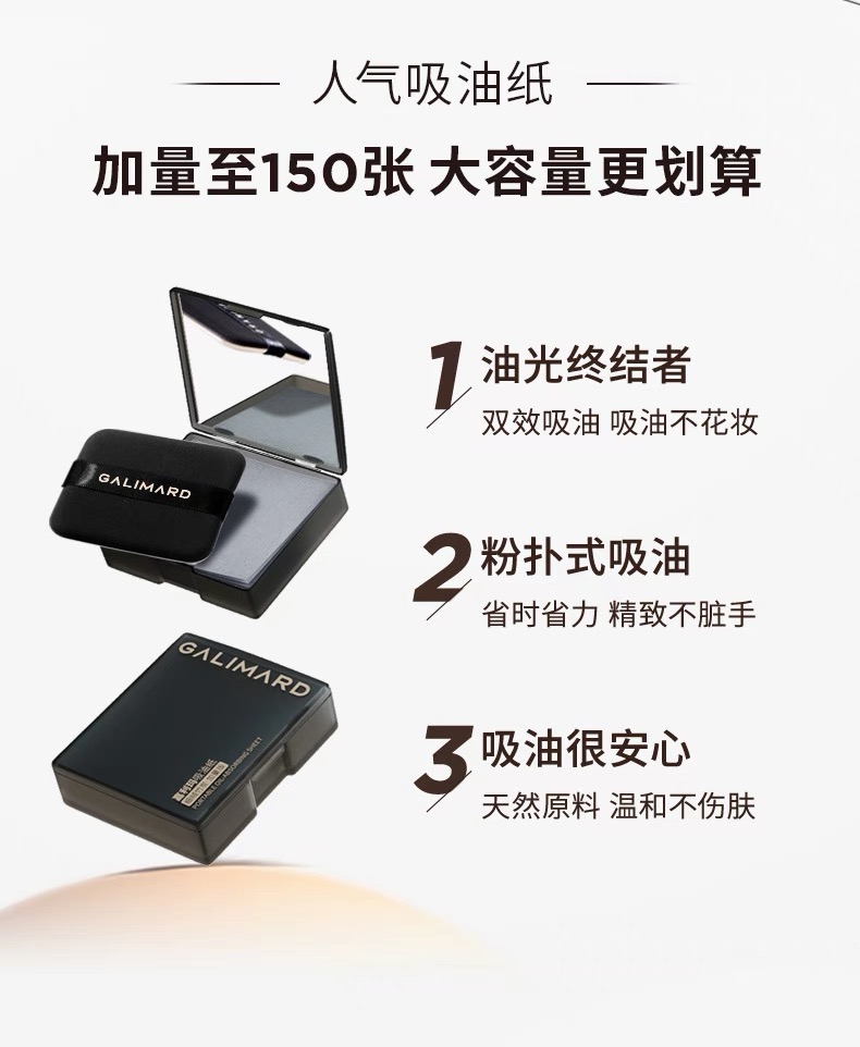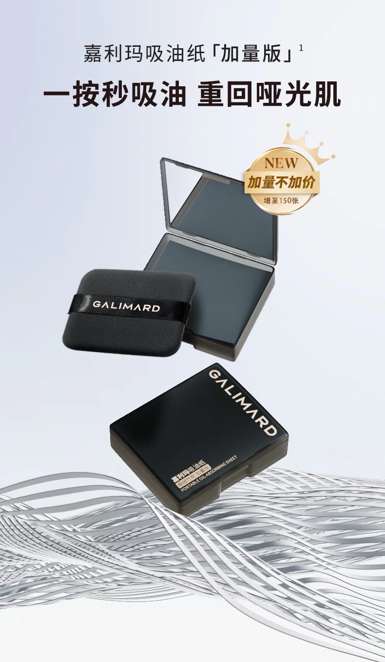[升级加量版] 嘉利玛吸油纸便携式面部控油T区清爽150张自带粉扑补妆镜