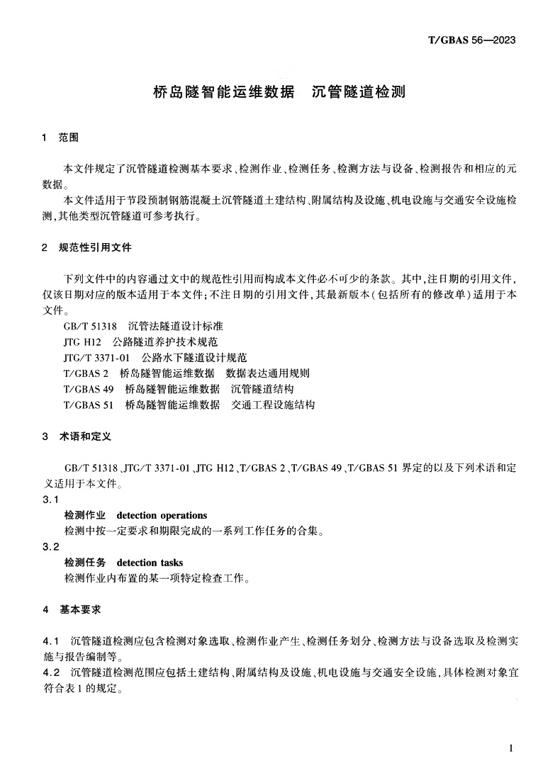 书名:桥岛隧智能运维数据 沉管隧道检测T/GBAS 56—2023