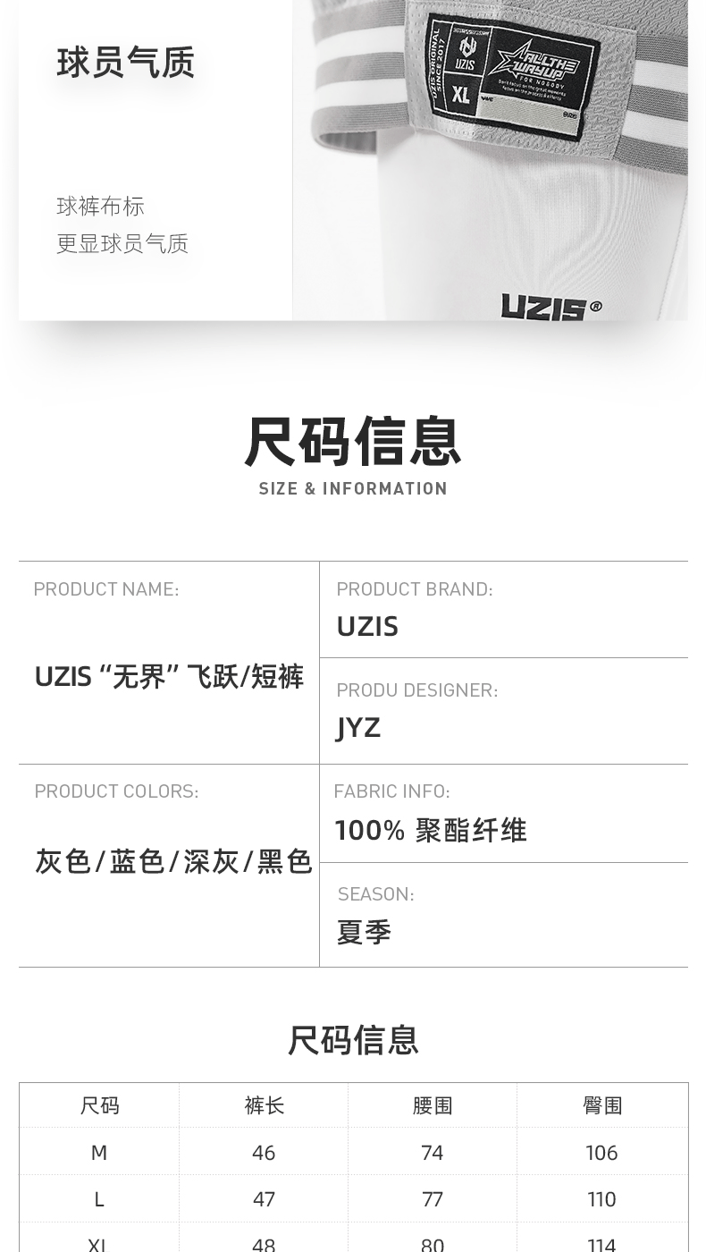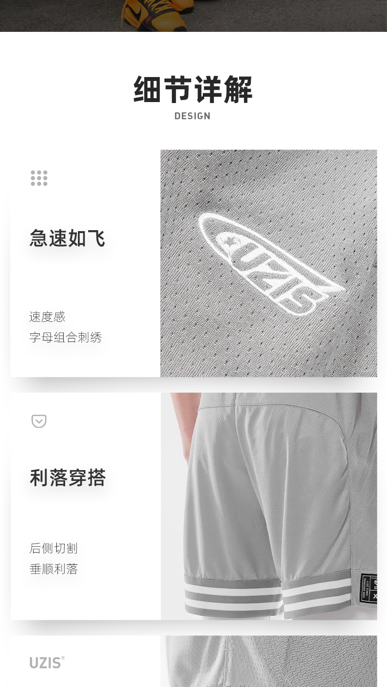 无界 UZIS美式篮球小短裤男夏季网眼潮健身训练不过膝球裤[飞跃]