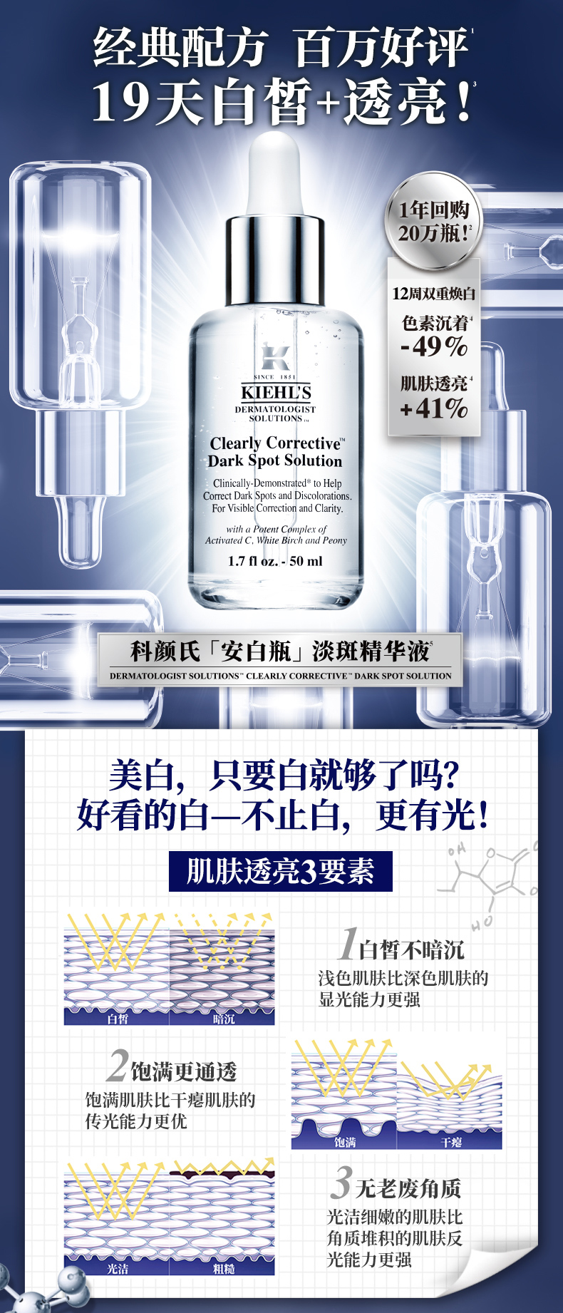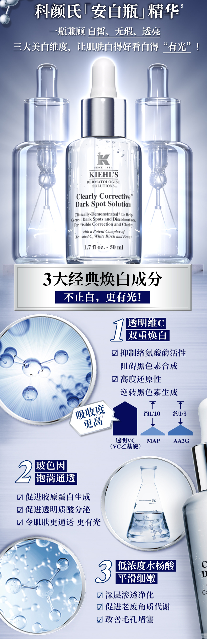 科颜氏淡斑精华液 安白瓶淡化痘印美白提亮肤色 50/100ml/115ml
