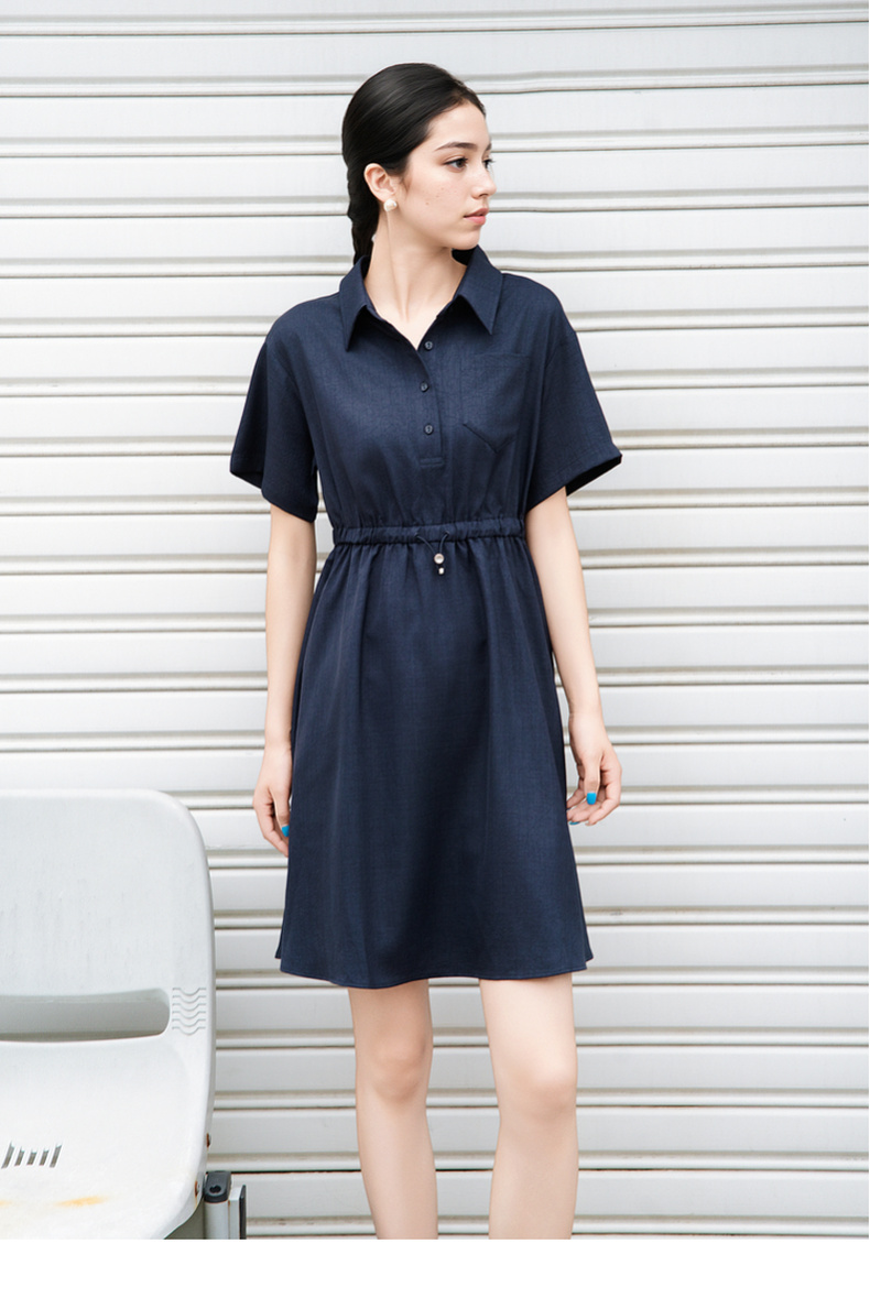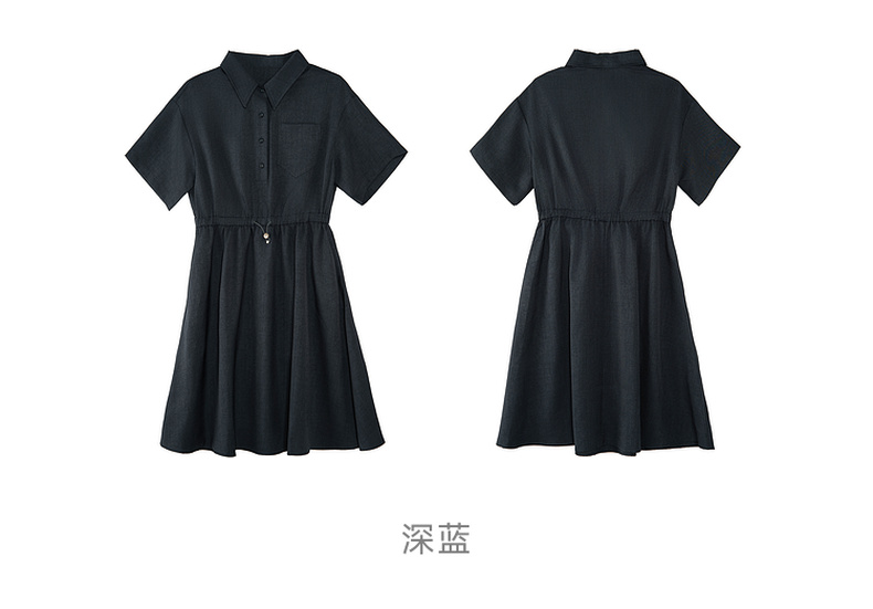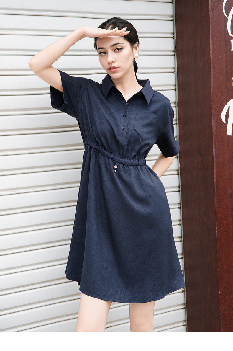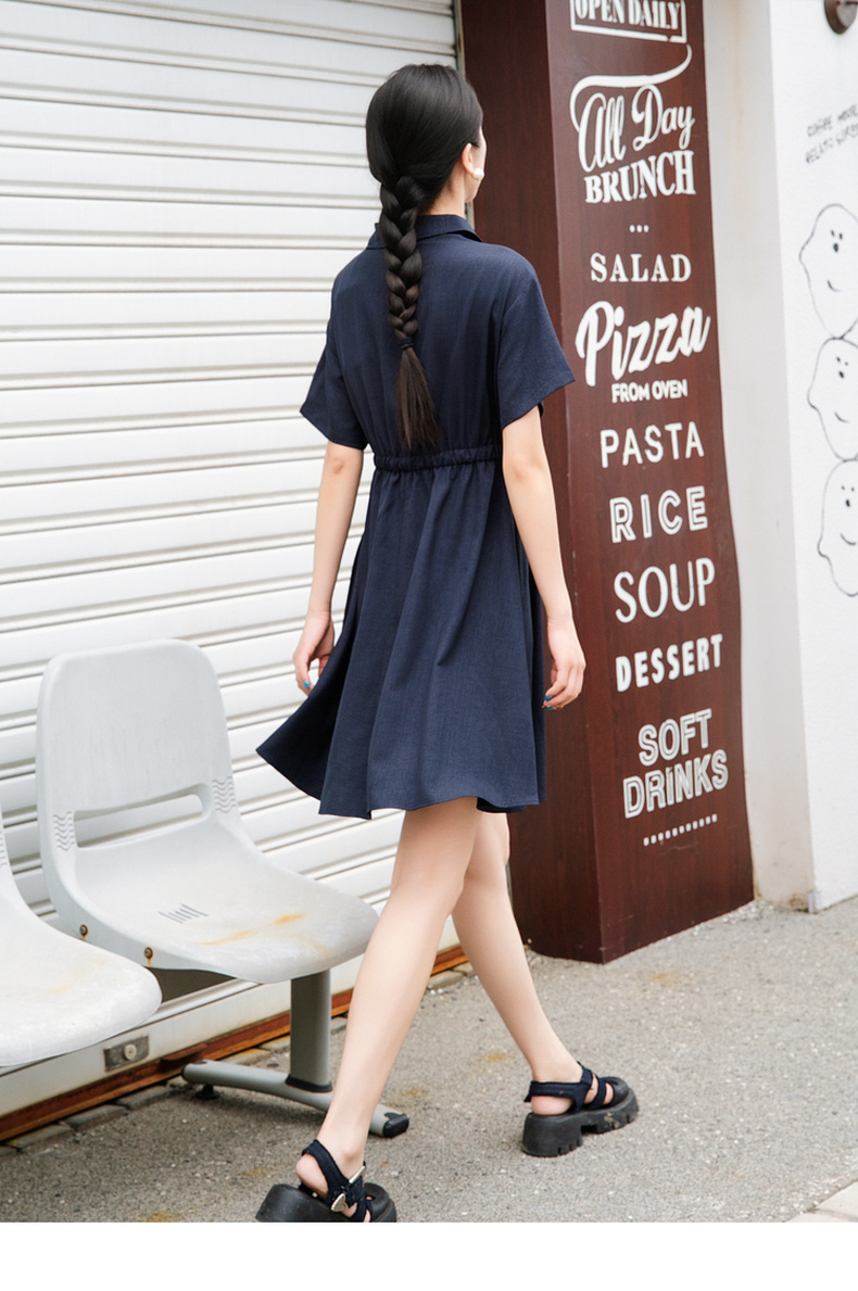 谜底连衣裙短袖2025夏季新款休闲百搭腰部抽绳深蓝短裙257ML7833