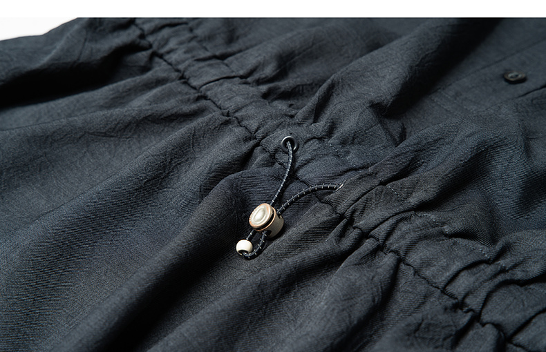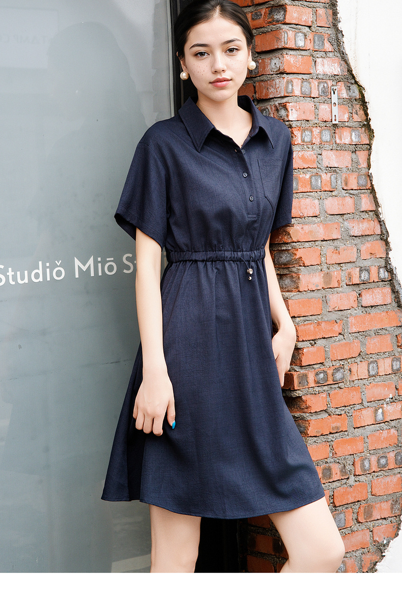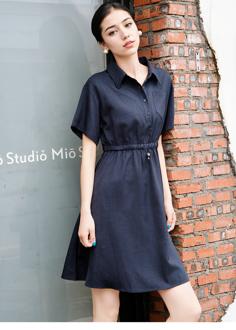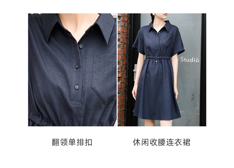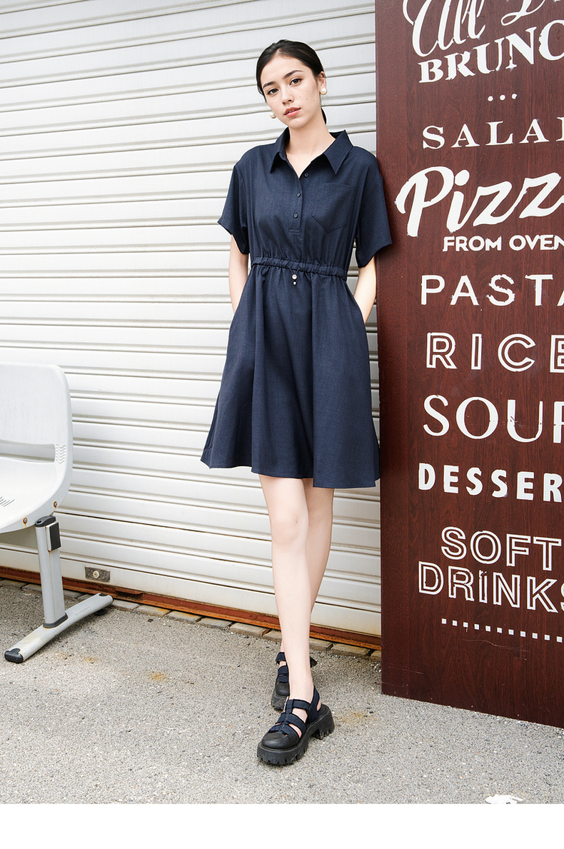 谜底连衣裙短袖2025夏季新款休闲百搭腰部抽绳深蓝短裙257ML7833