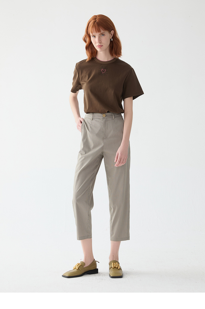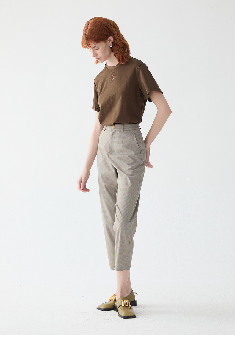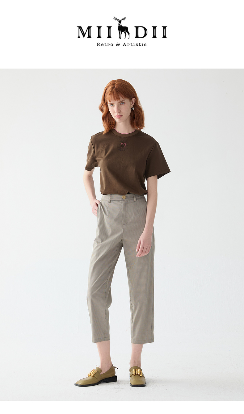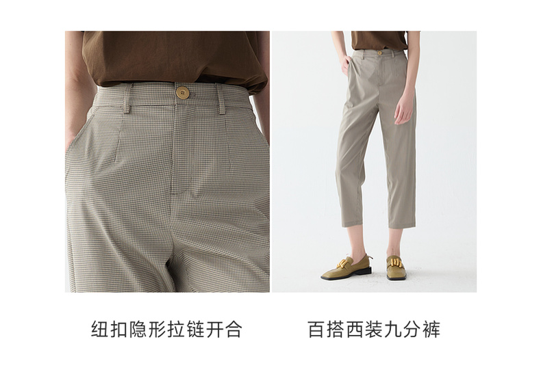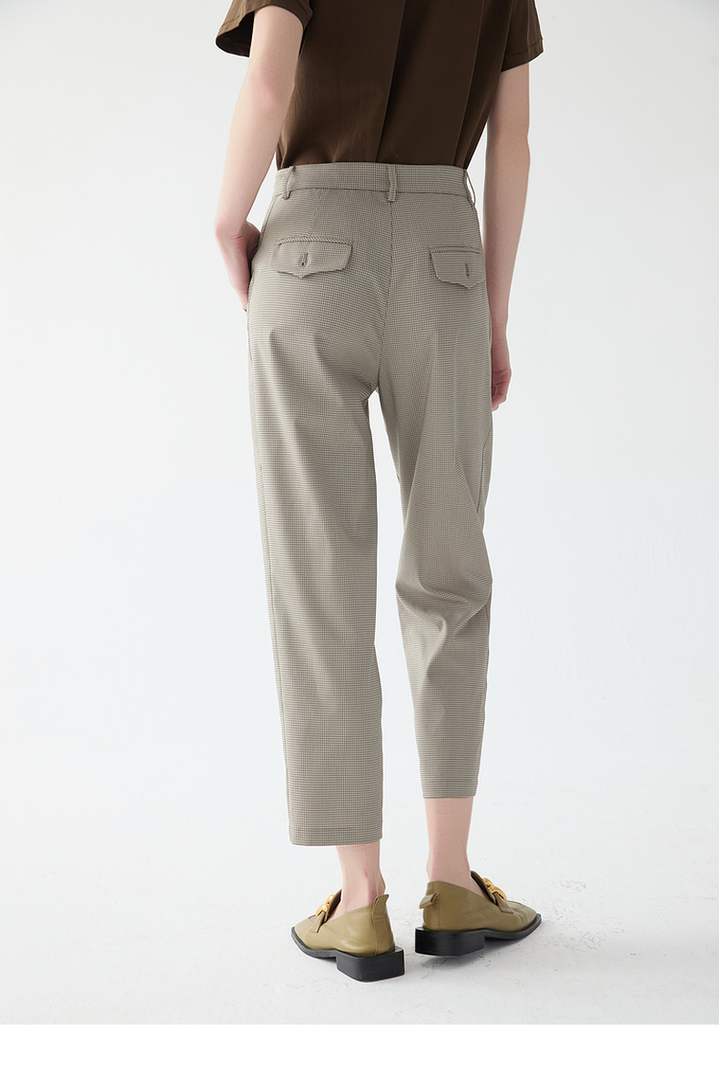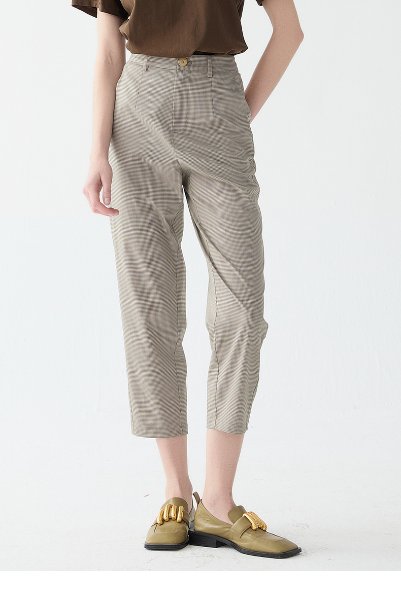 谜底细格纹萝卜裤女2025春款通勤风百搭宽松九分休闲裤255MK3004