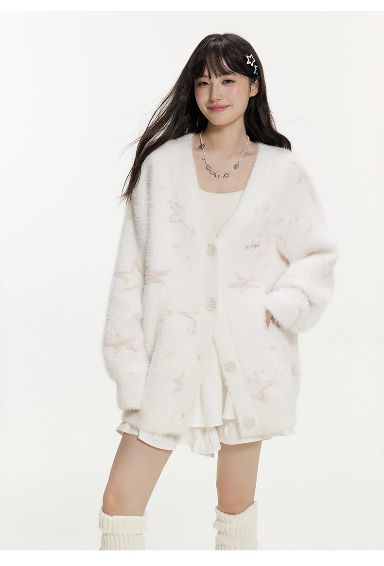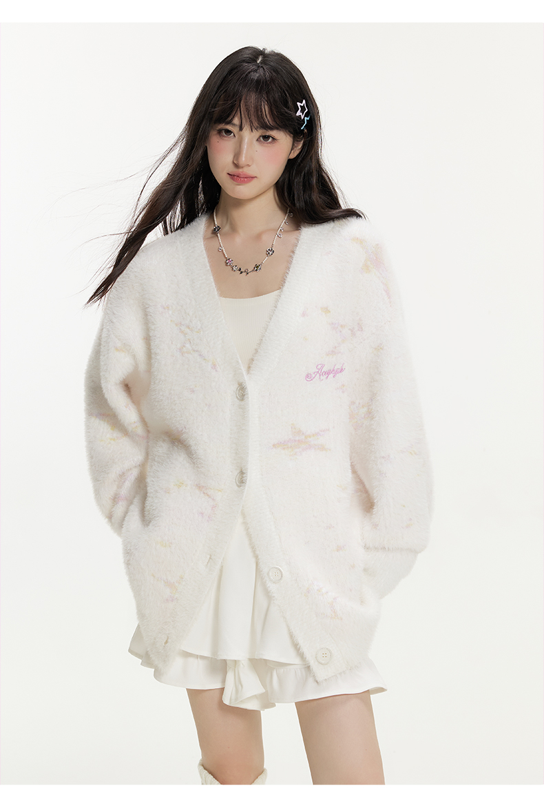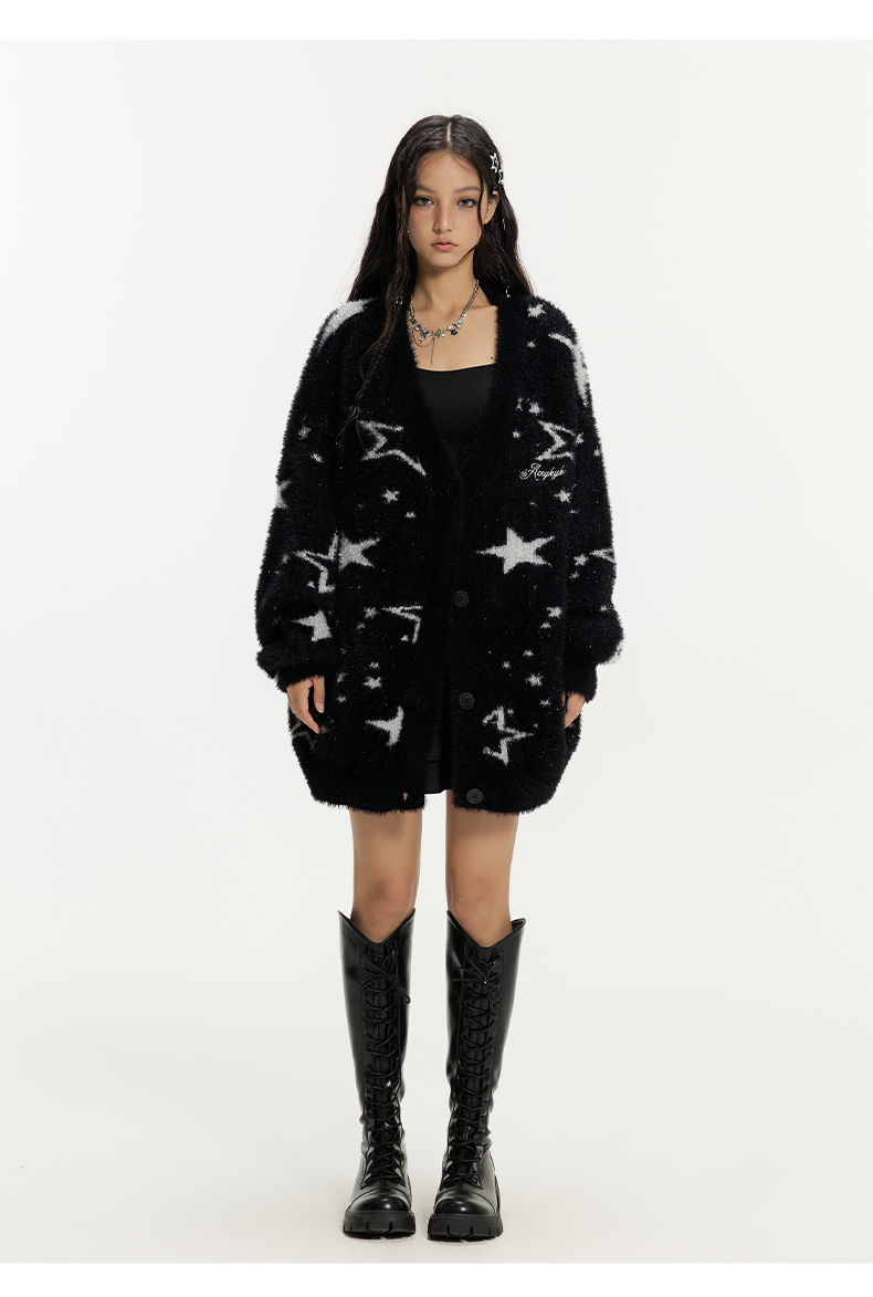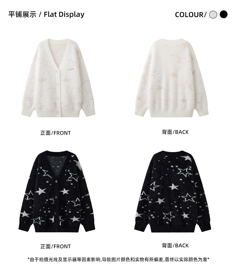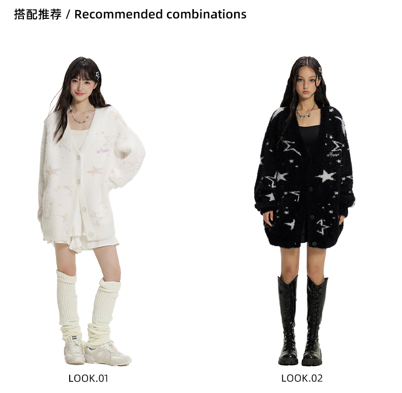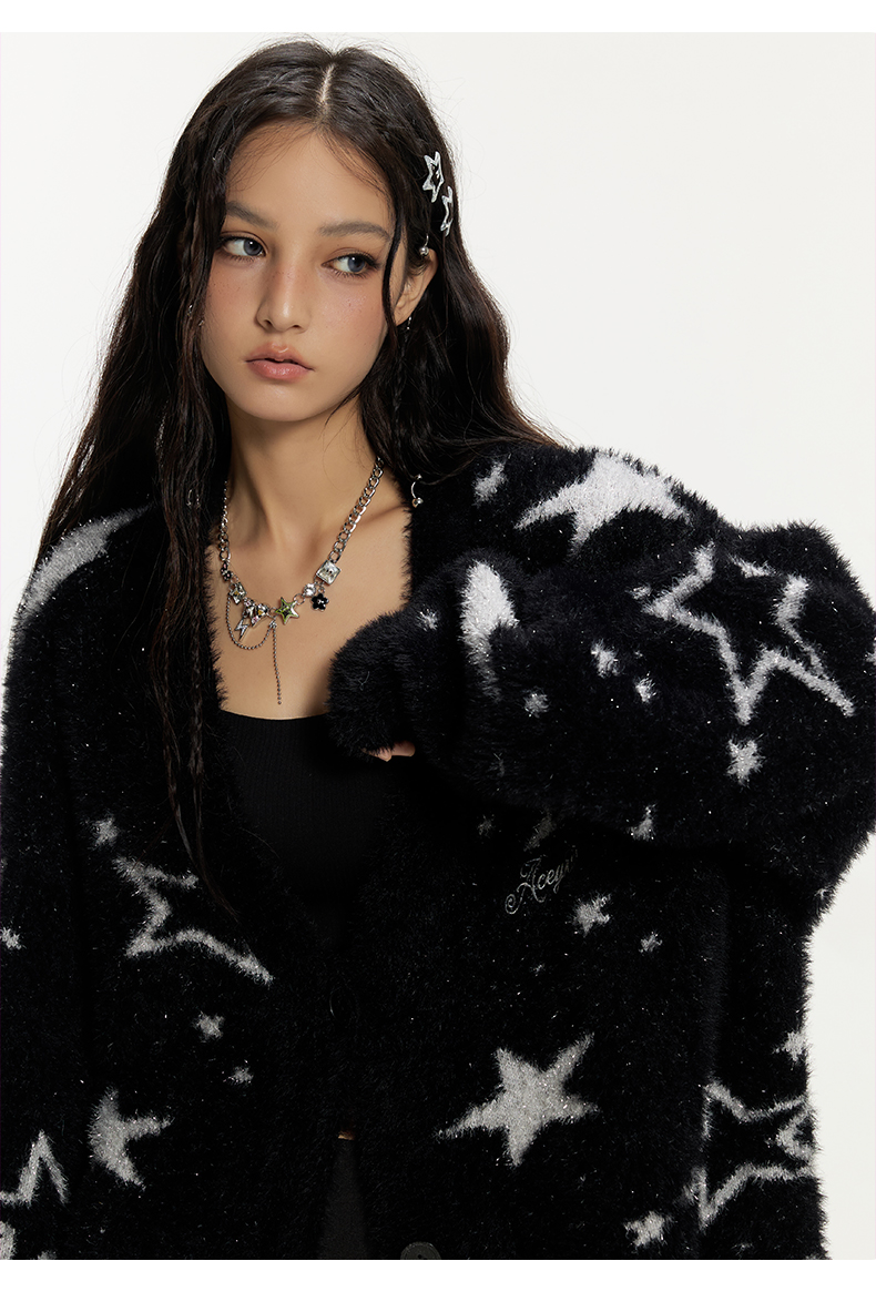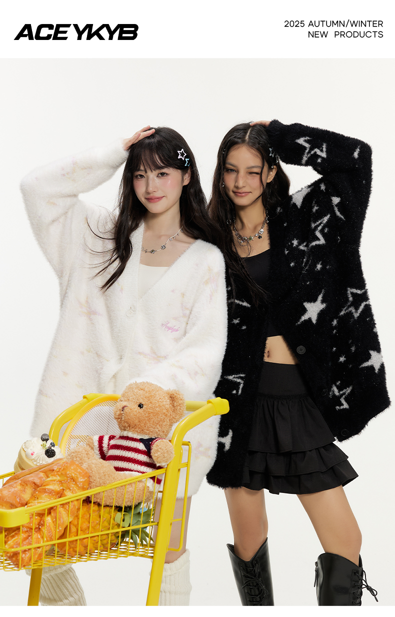 YKYB黄子韬 星星设计小众百搭休闲保暖开衫仿貂毛衣外套女秋冬