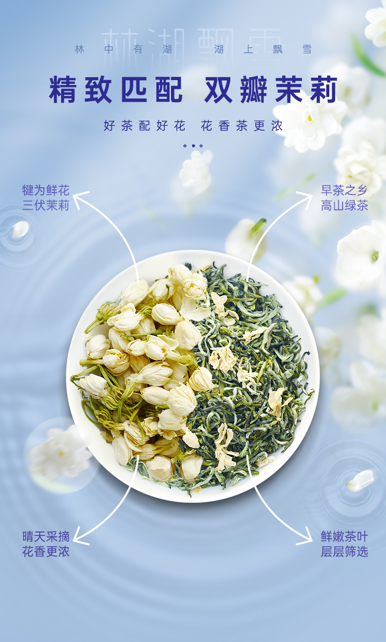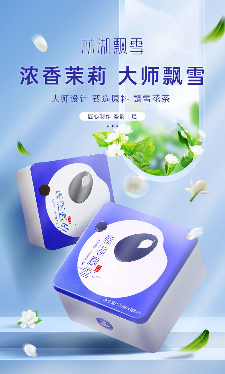 林湖飘雪大师 茉莉花茶特级浓香型散装小包装茶叶100g
