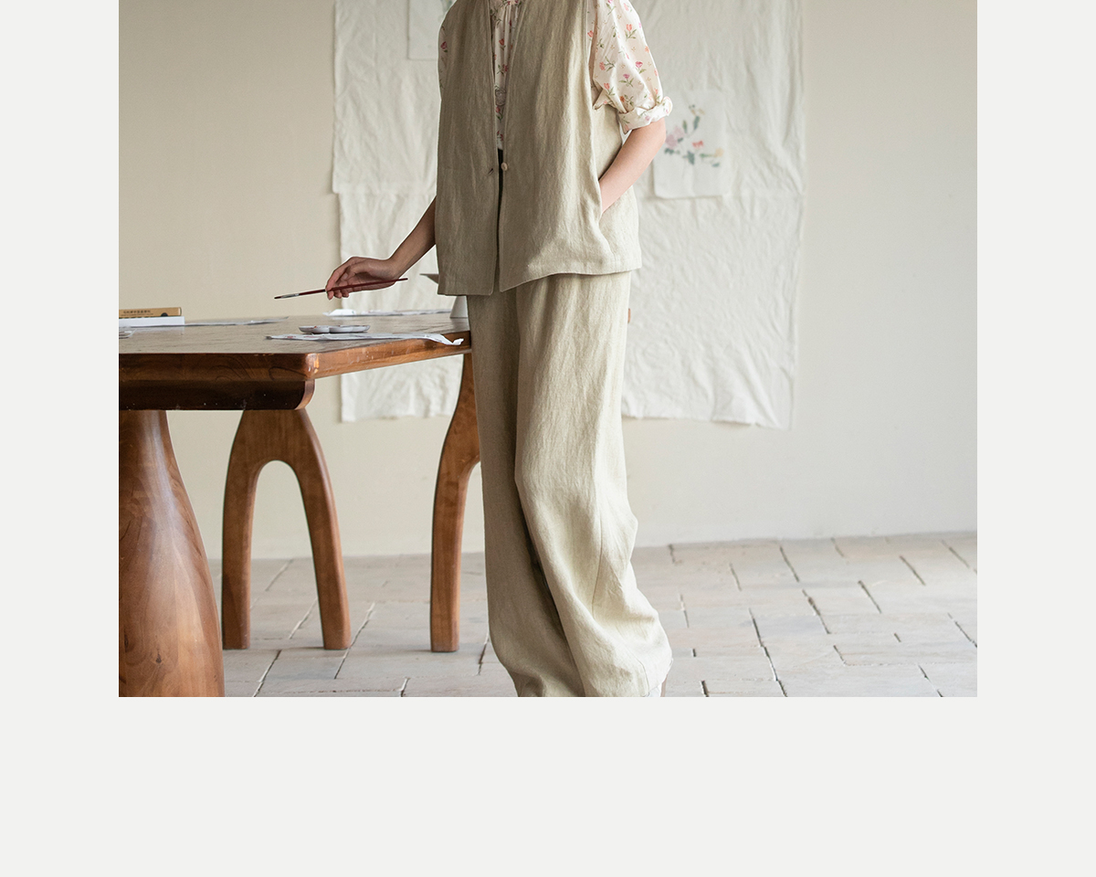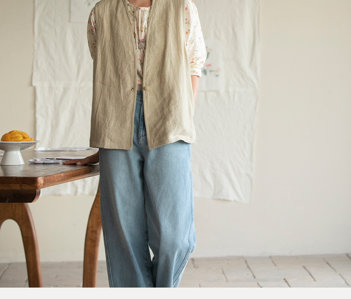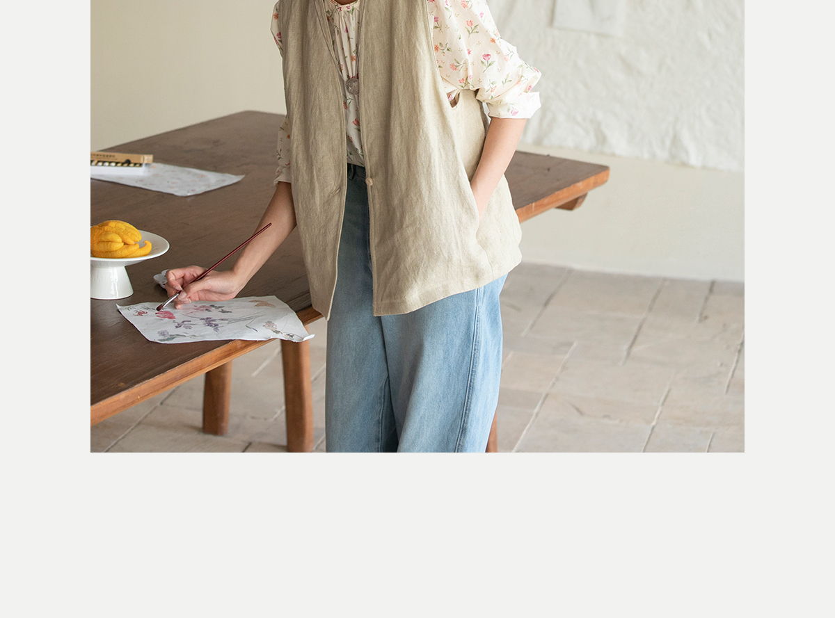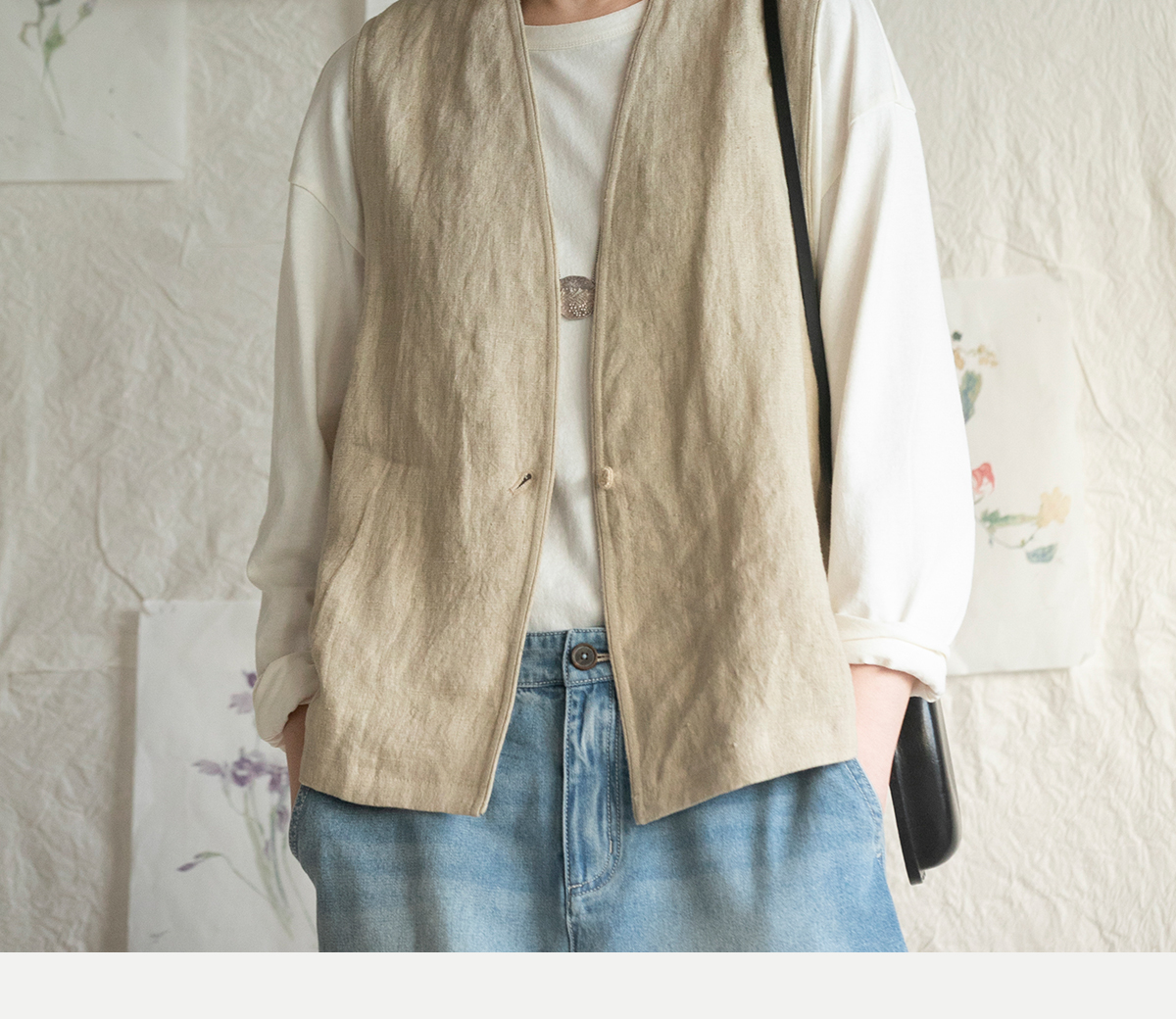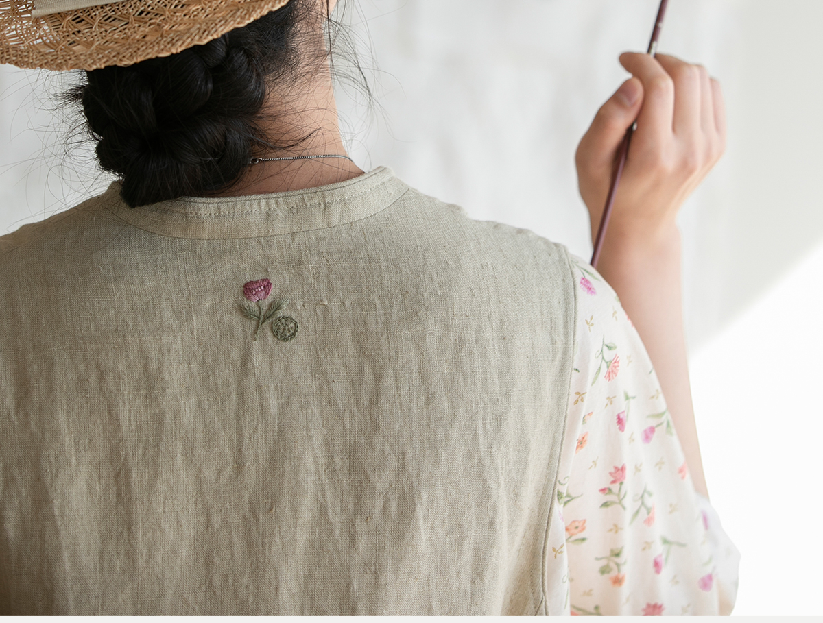 牧衣游原创 手工刺绣汉麻马夹女柔软舒适质朴百搭休闲马甲 归栀
